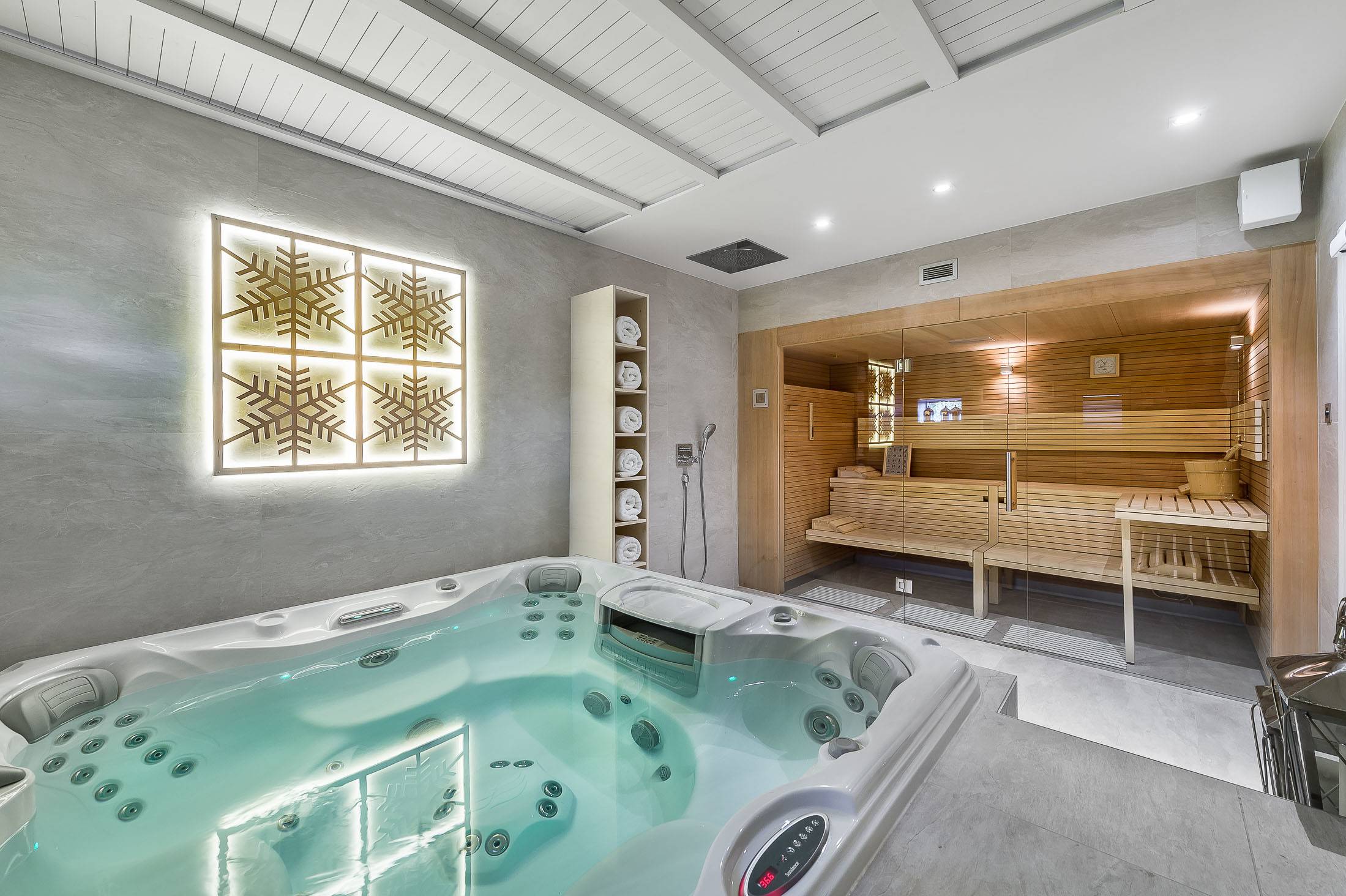 As the chalet is ski-in, ski-out, you’ll never be more than a few minutes from the glorious slopes of Courchevel. After an exciting day, ski into the ski room with boot warmers, or enjoy the wellness area complete with an indoor hot tub. There’s even a wine cellar for enjoying your favorite drop.