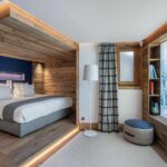 With a living space of 837 sqm, the chalet is dispersed over five levels and comfortably accommodates 11 adults and four children to stay in total comfort. Ideal for holidays with families or friends, the chalet offers six large double bedrooms with all their ensuite bathrooms, as well as a relaxing children’s bedroom with four bunk beds.