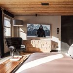 The interior takes hints from traditional Alpine style, but spins it in a modern and stylish way, with contemporary lines and features. Exquisite luxury furnishings and carefully curated artworks add to the overall elegance and opulence of this beautiful property.
