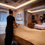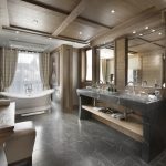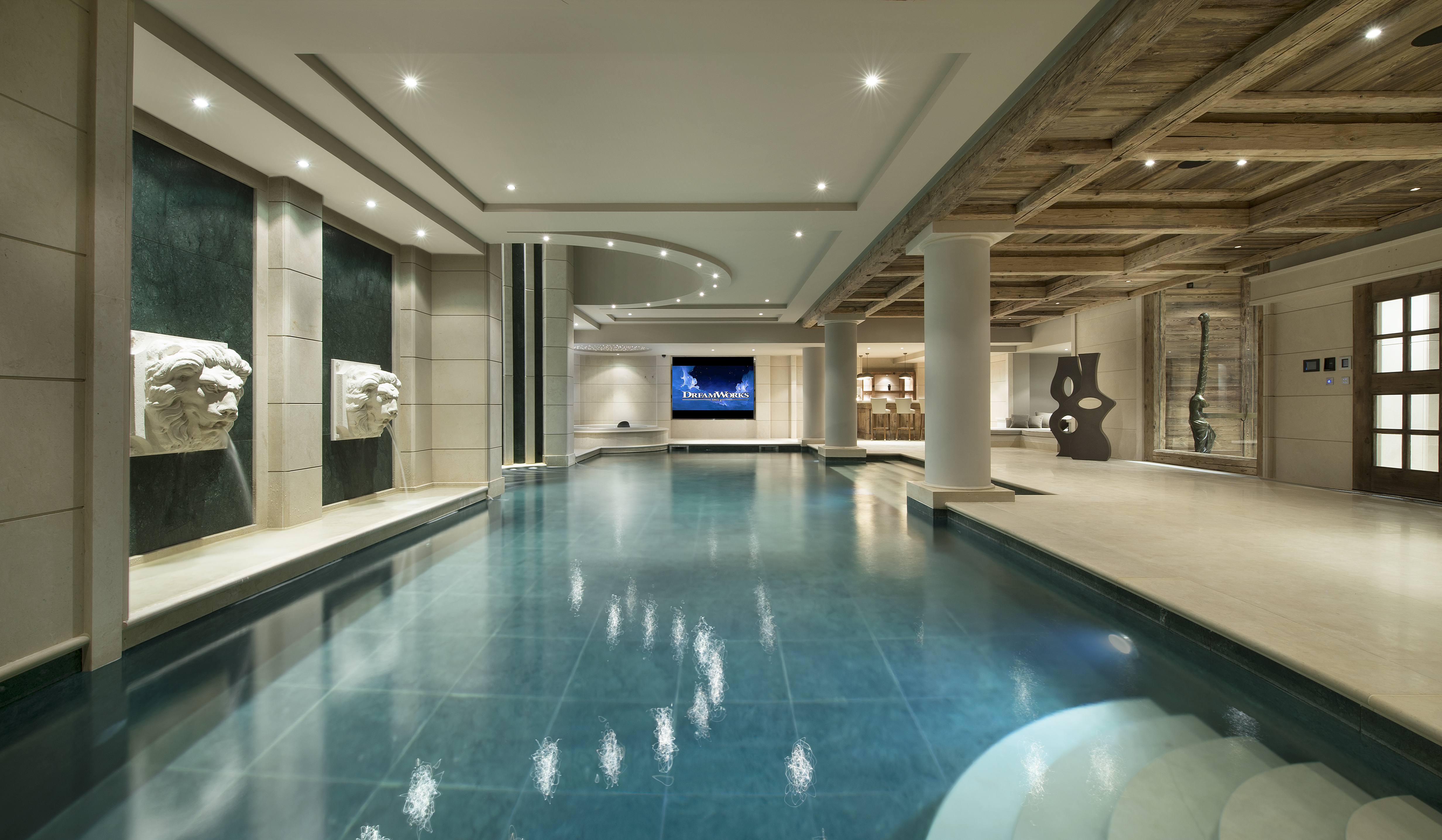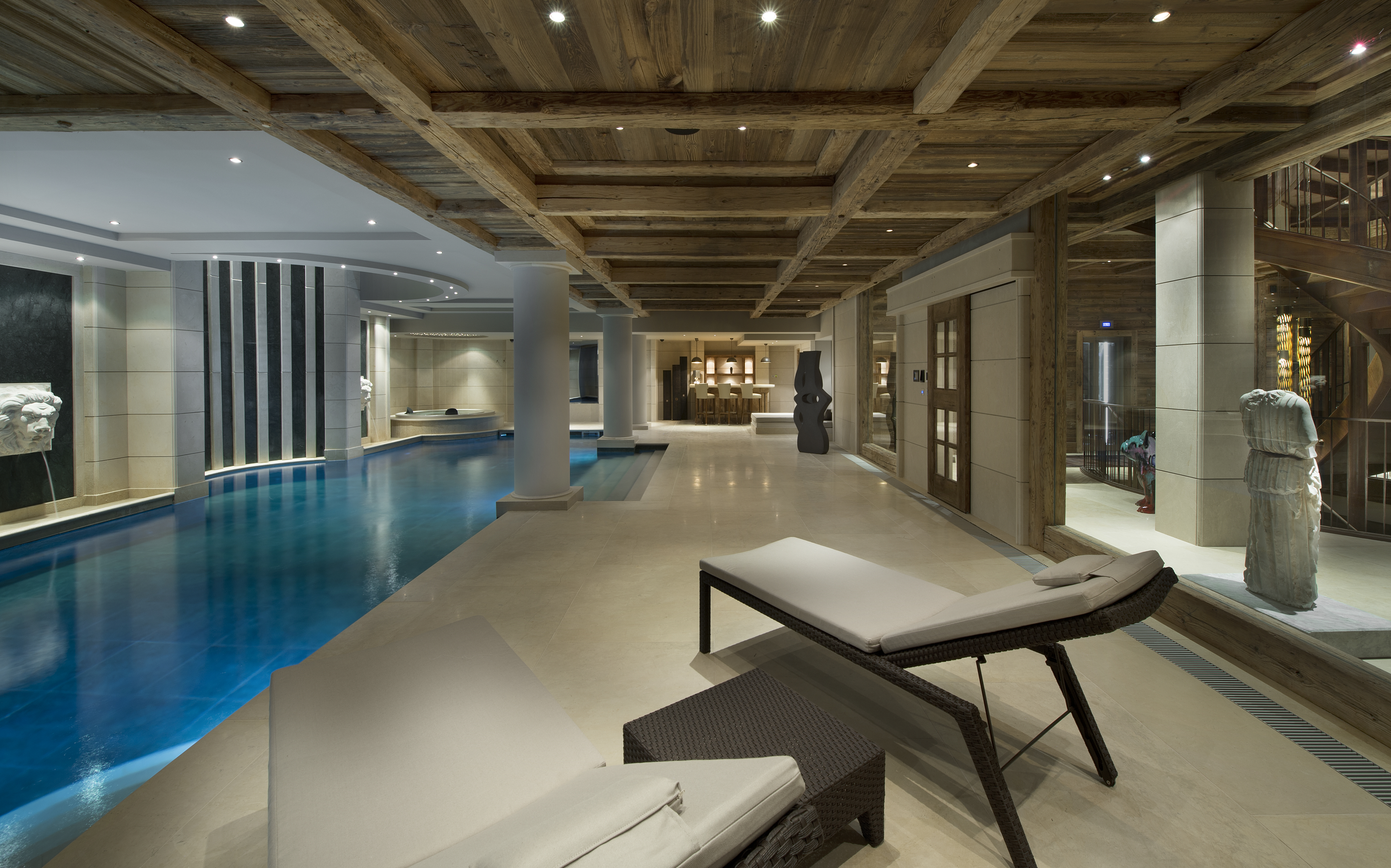 As you’d expect from the most expensive chalet in Courchevel, no expense has been spared in ensuring the ultimate stay. There is an enormous ski-room, dazzling pool for swimming and diving, as well as a Jacuzzi and hammam for resting those tired ski legs. There are massage rooms, a well-equipped gym, a cinema, and a nightclub.