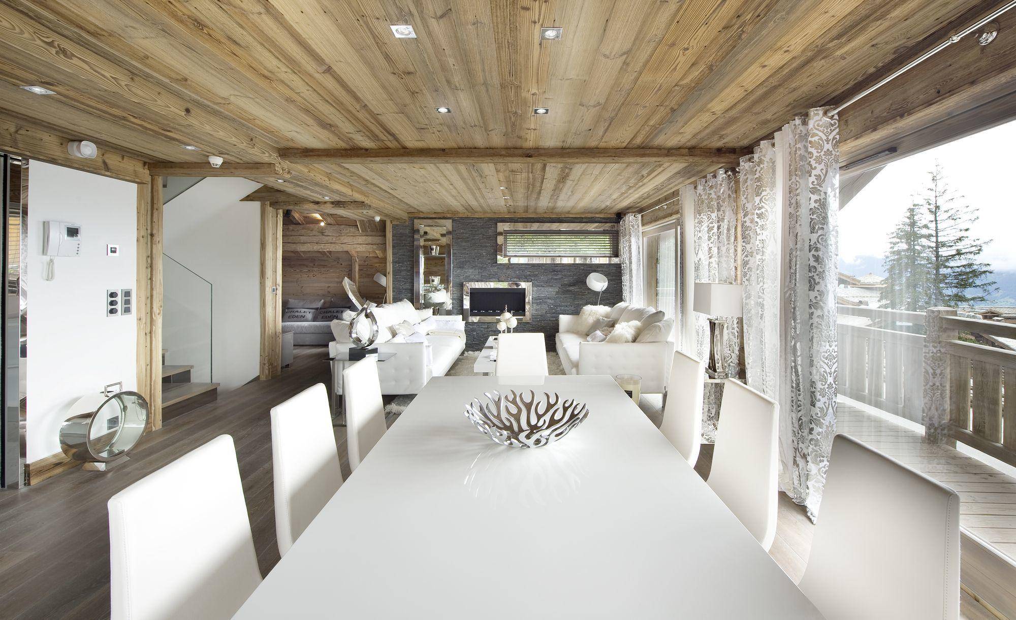 The perfect chalet rental in Courchevel with an indoor swimming pool, a bar, a wellness center, and numerous cozy living spaces are some of the highlights of Chalet Eden.