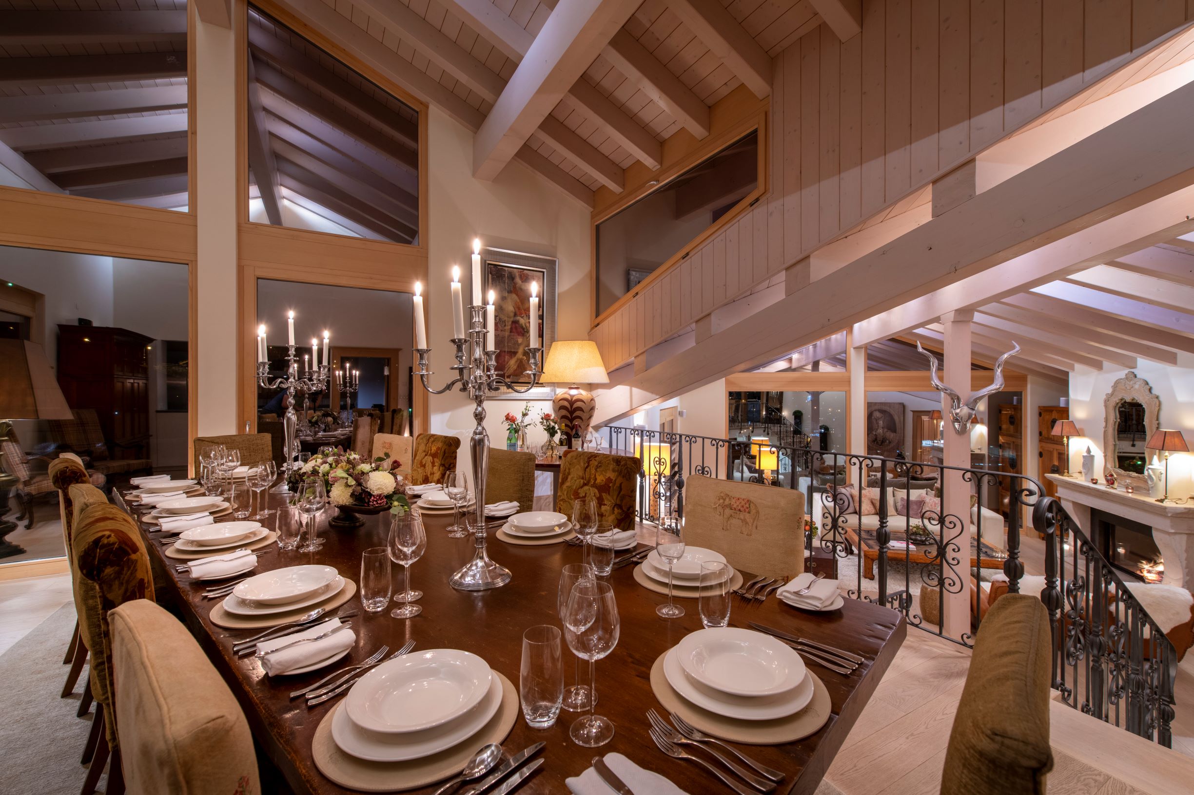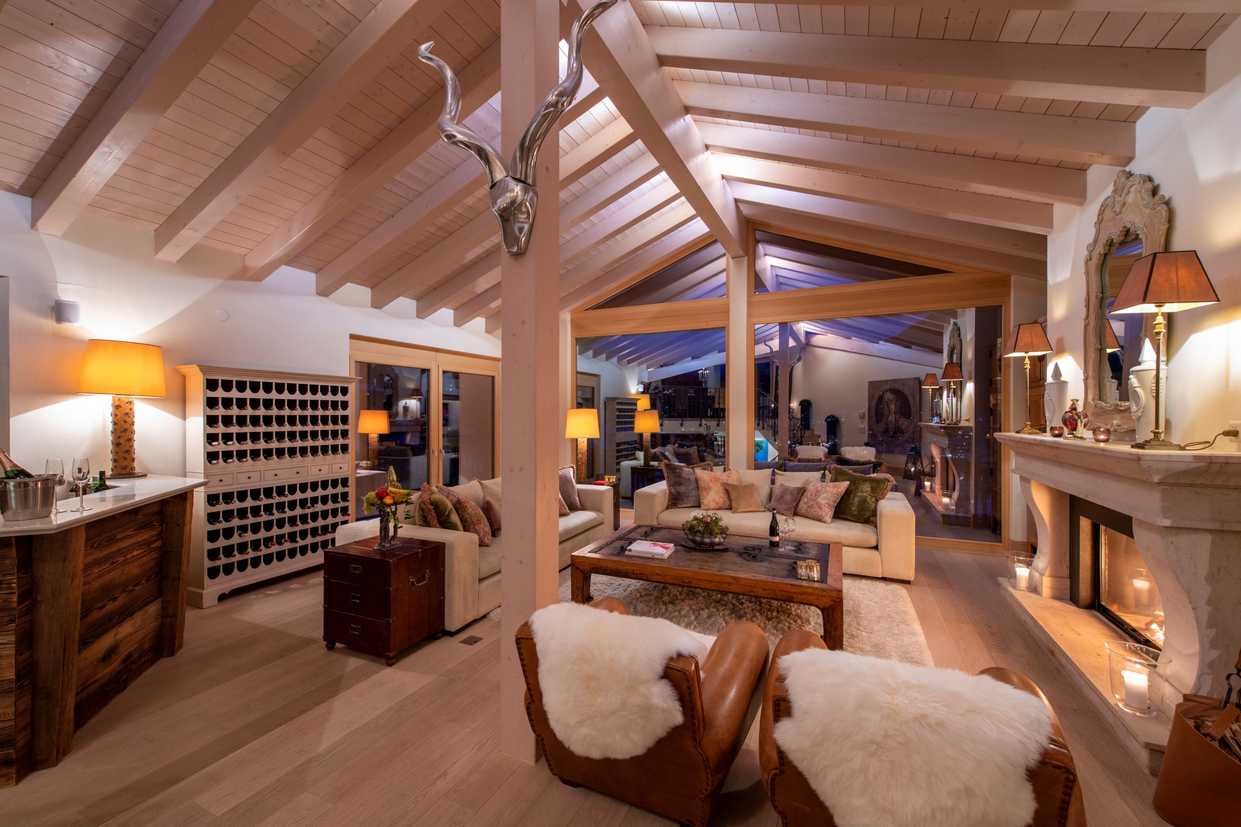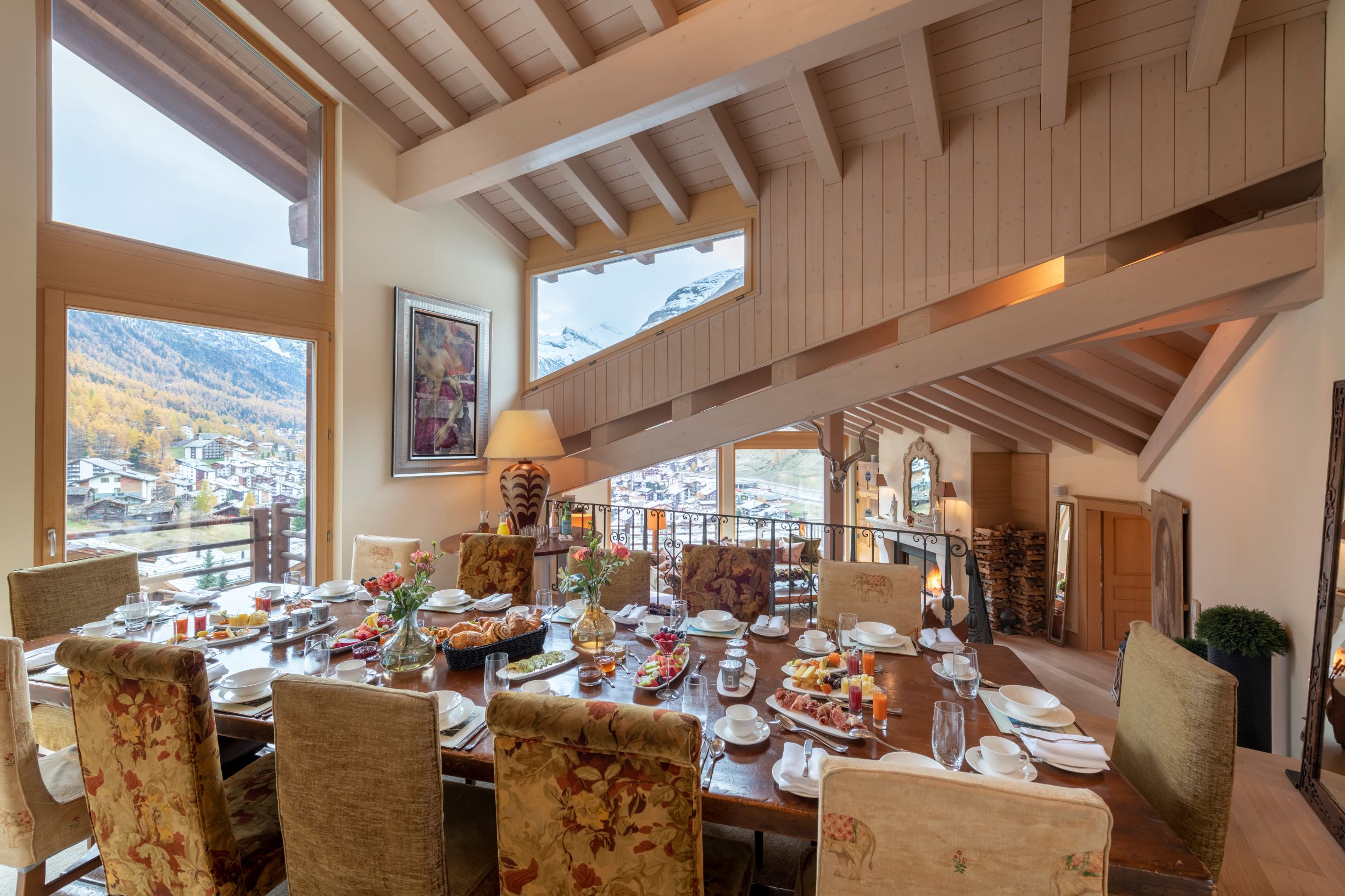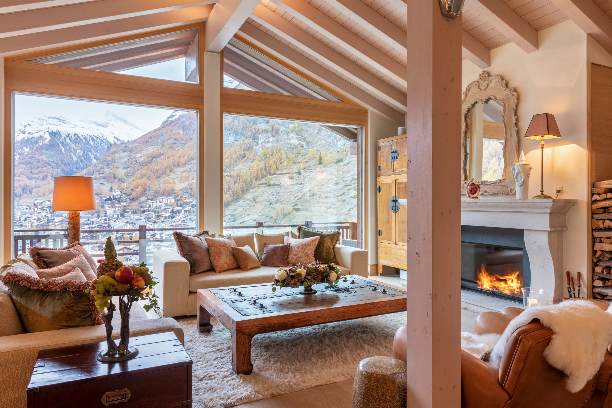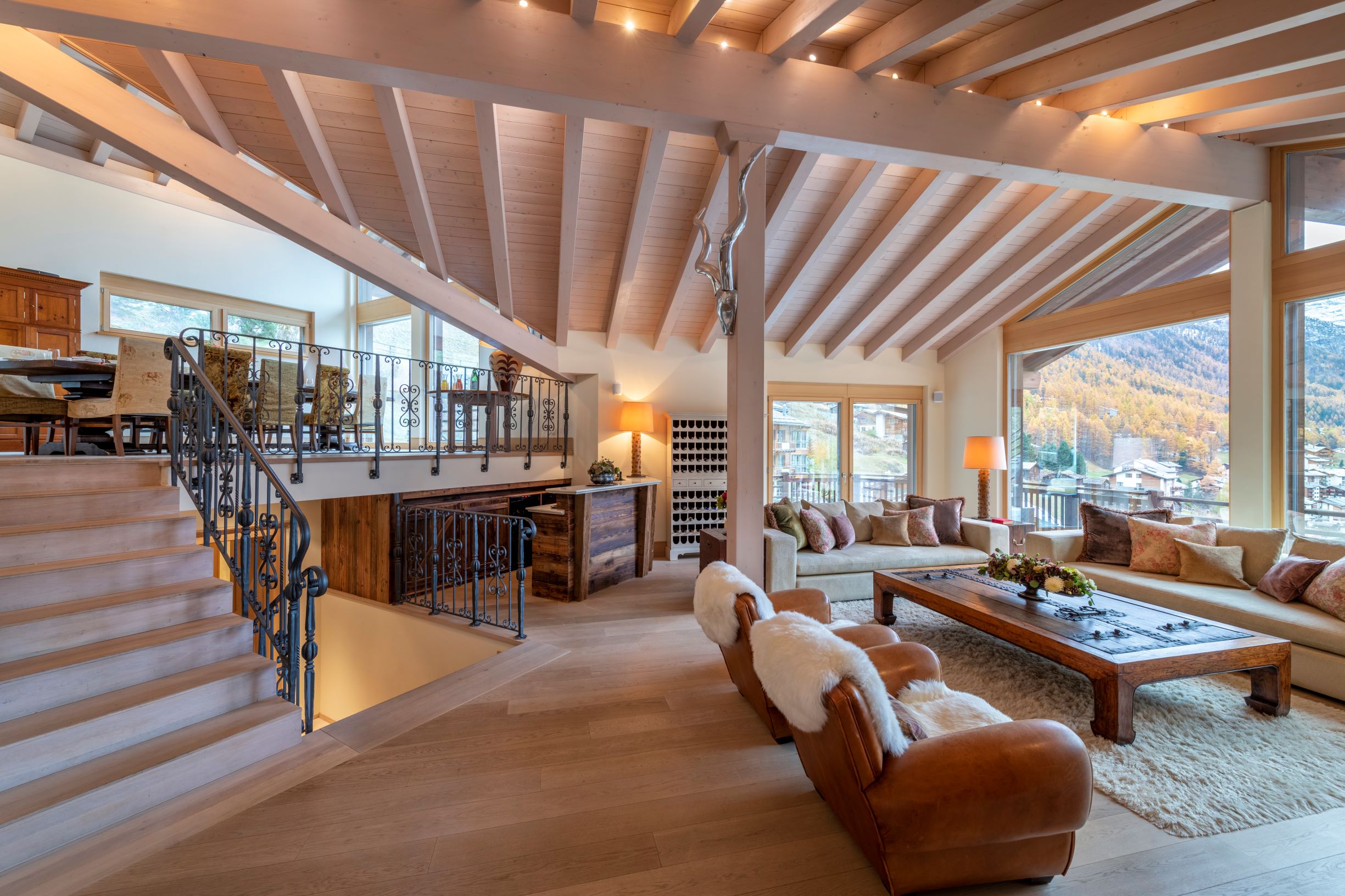 Highlights include sky-high ceilings and floor-to-ceiling windows which offer an enchanting view out over the village and the surrounding mountains. These shared living rooms are particularly beautiful and offer the chance to enjoy quality time together.