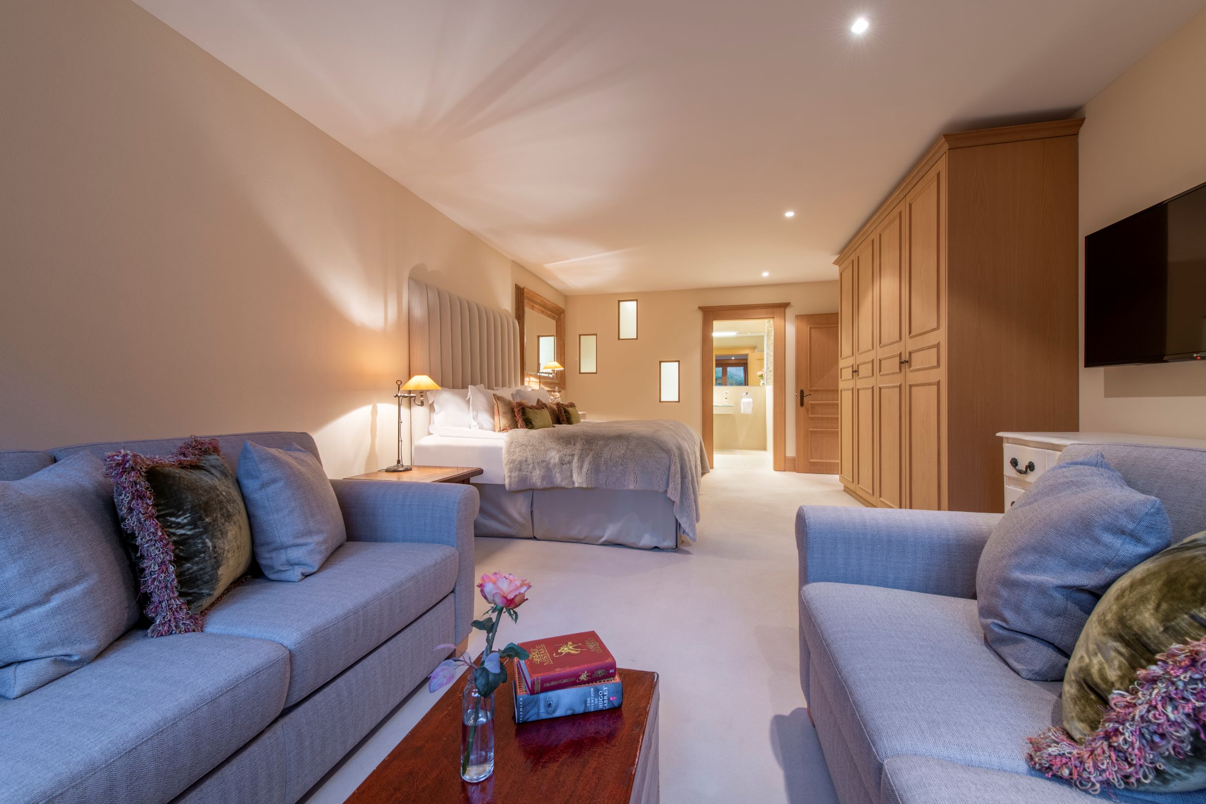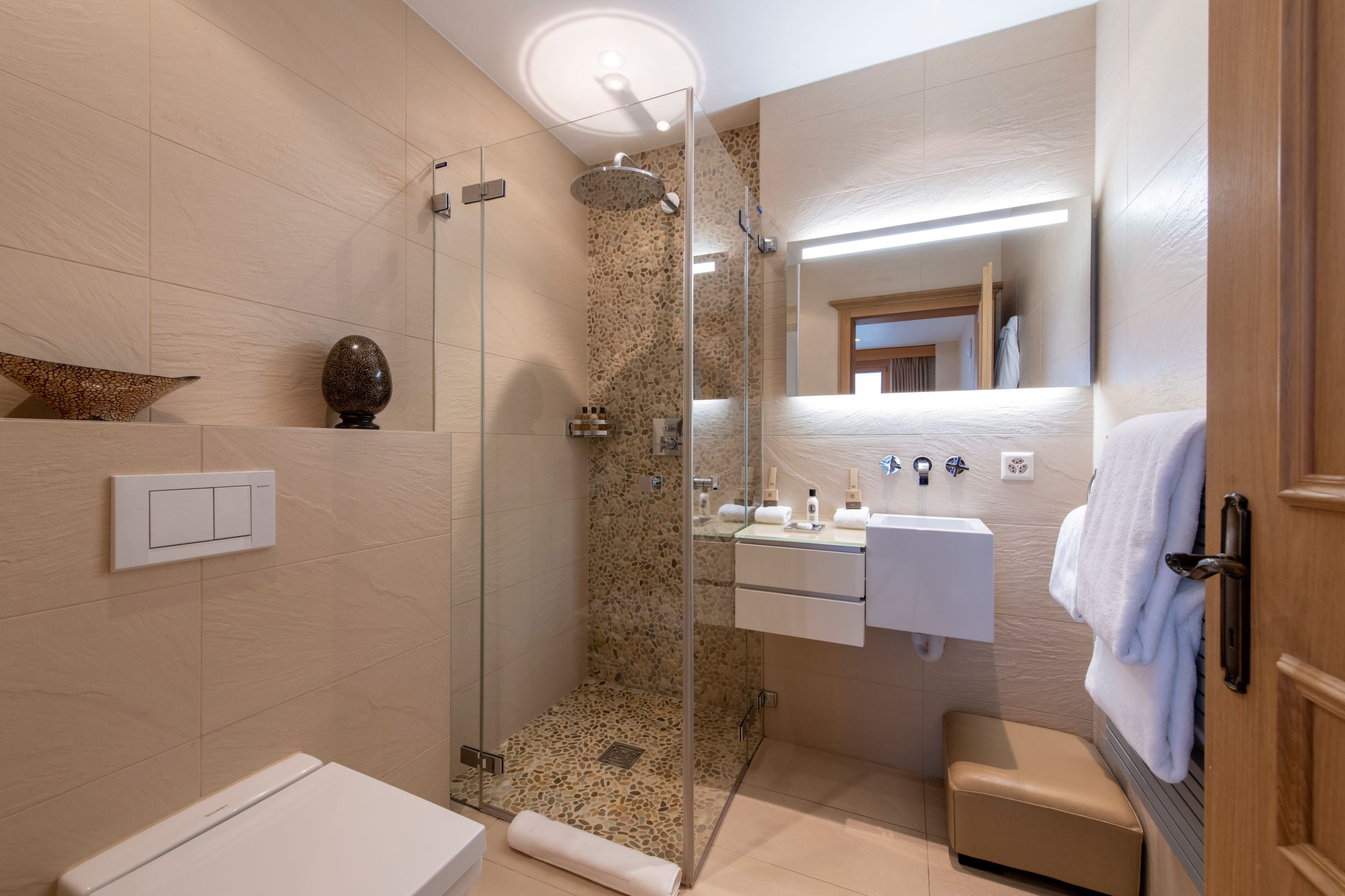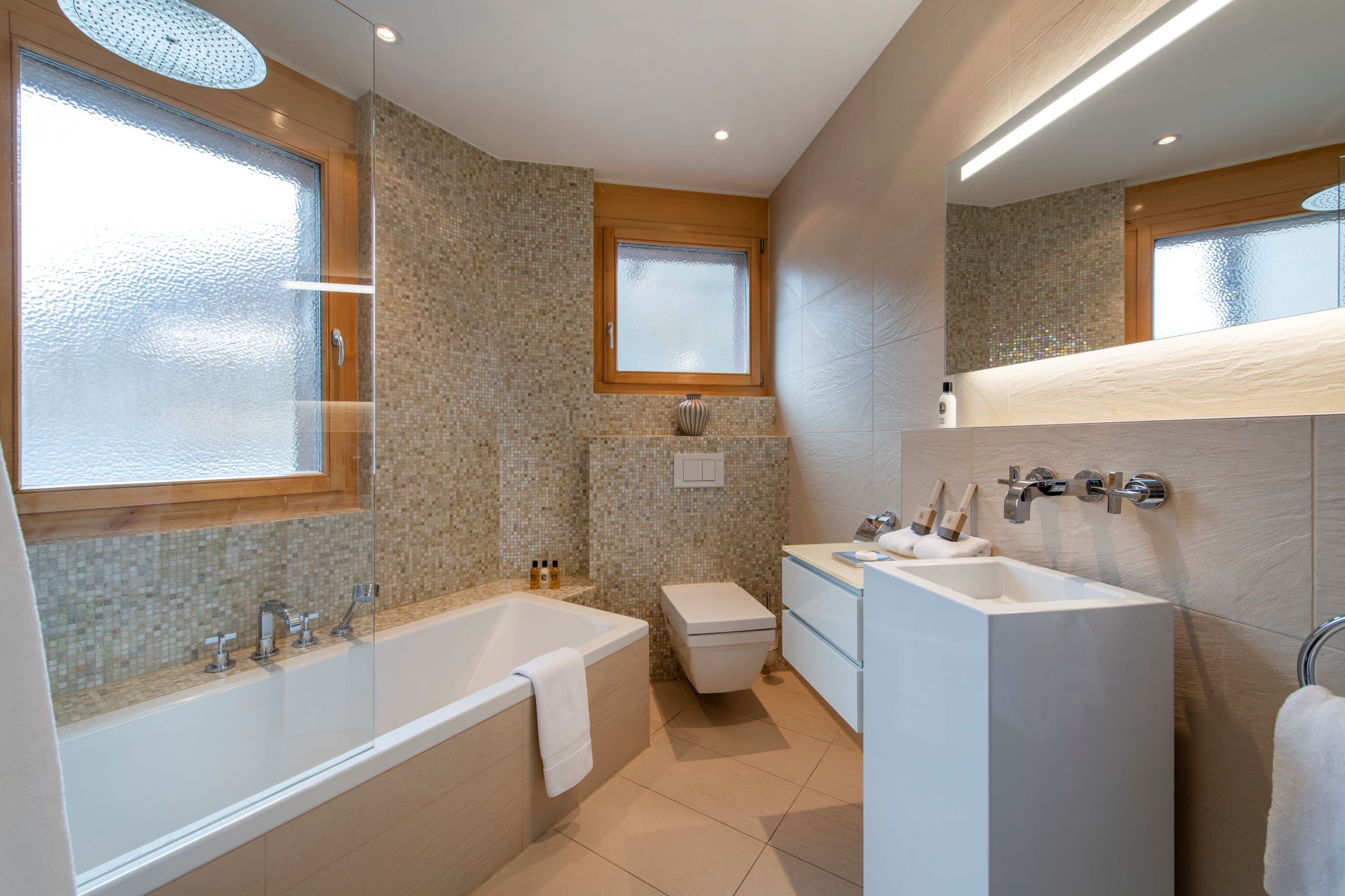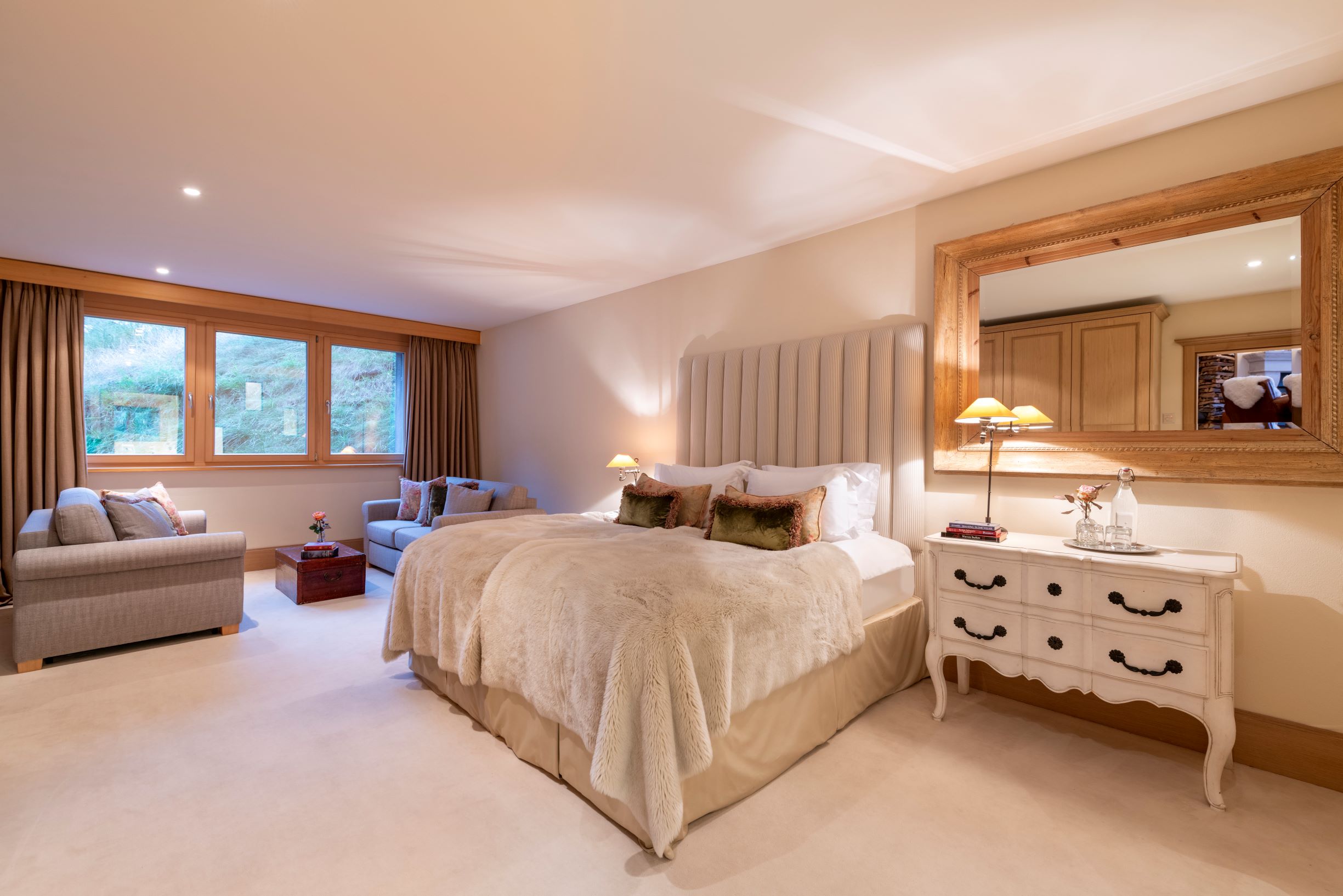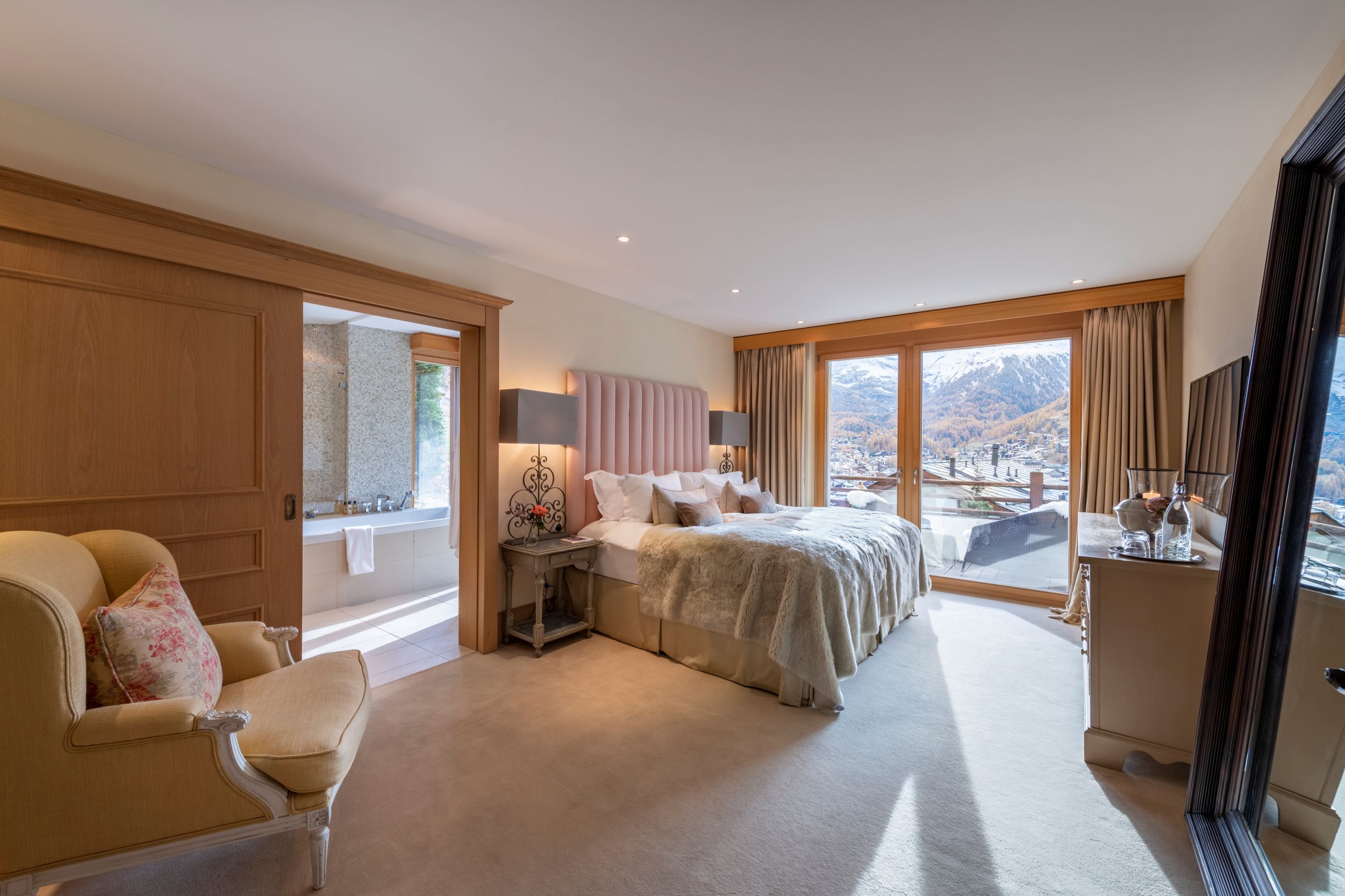 Highlights include sky-high ceilings and floor-to-ceiling windows which offer an enchanting view out over the village and the surrounding mountains. These shared living rooms are particularly beautiful and offer the chance to enjoy quality time together.