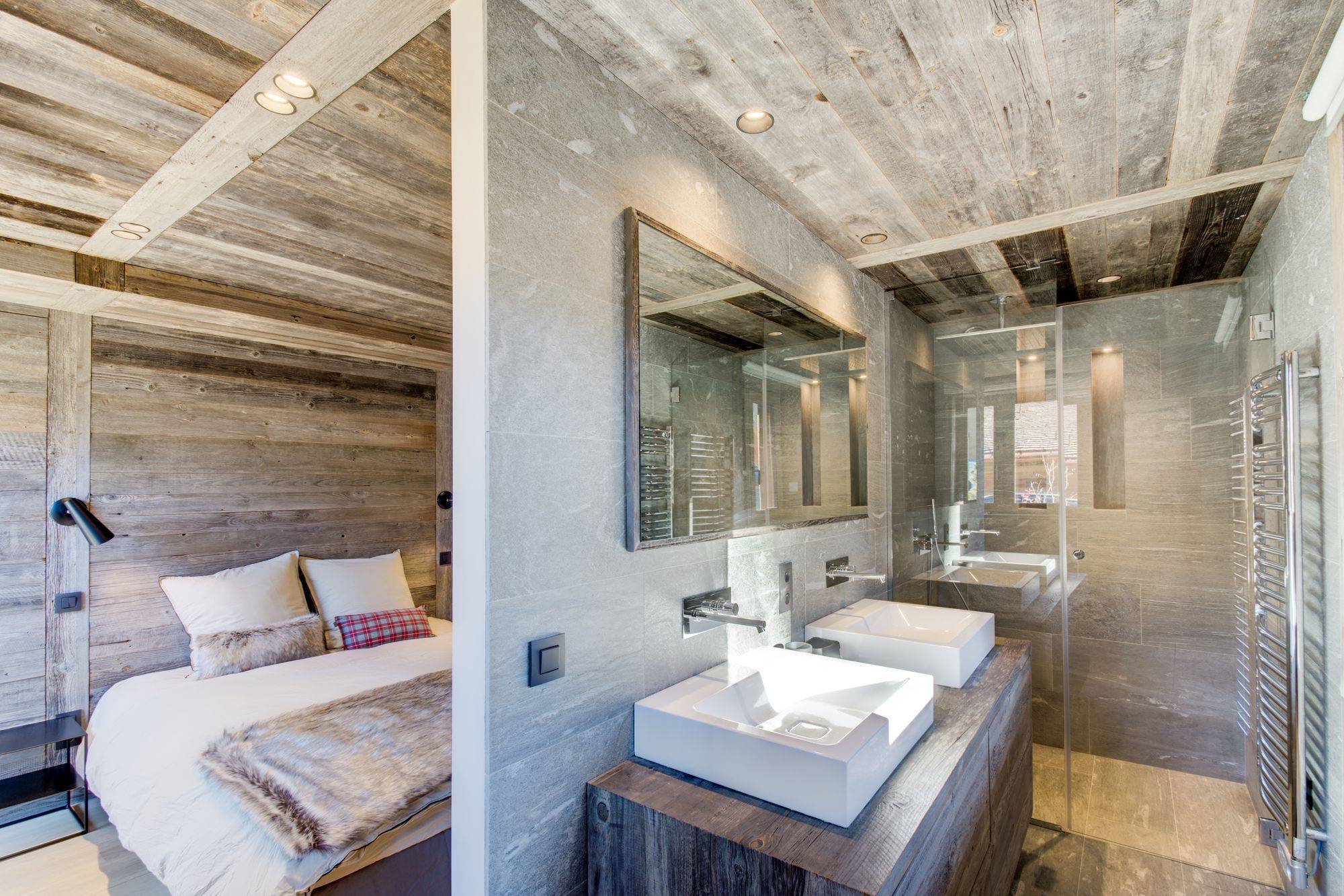 Although it is a modern build, the craftsman has borrowed heavily from traditional architecture and the result is a property that oozes charm and charisma. With an emphasis on natural textures and neutral colors, Chalet Gwen is an oasis of calm.