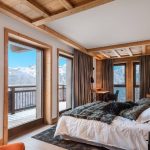 Stepping inside the chalet, it is impossible not to notice the enormous floor-to-ceiling windows. This allows light to stream into the property, while also offering absolutely sumptuous views of the surrounding mountain locale. The surrounding decor of this gorgeous property in Courchevel is tasteful and appealing, adding further warmth to the beautiful chalet.