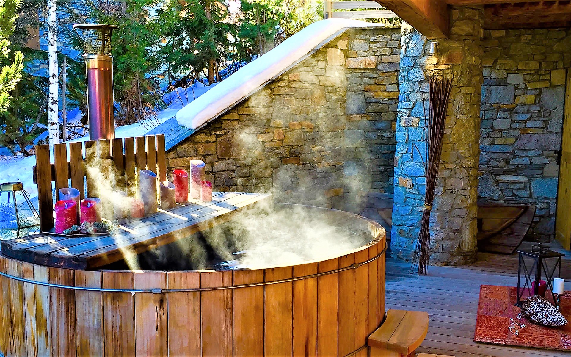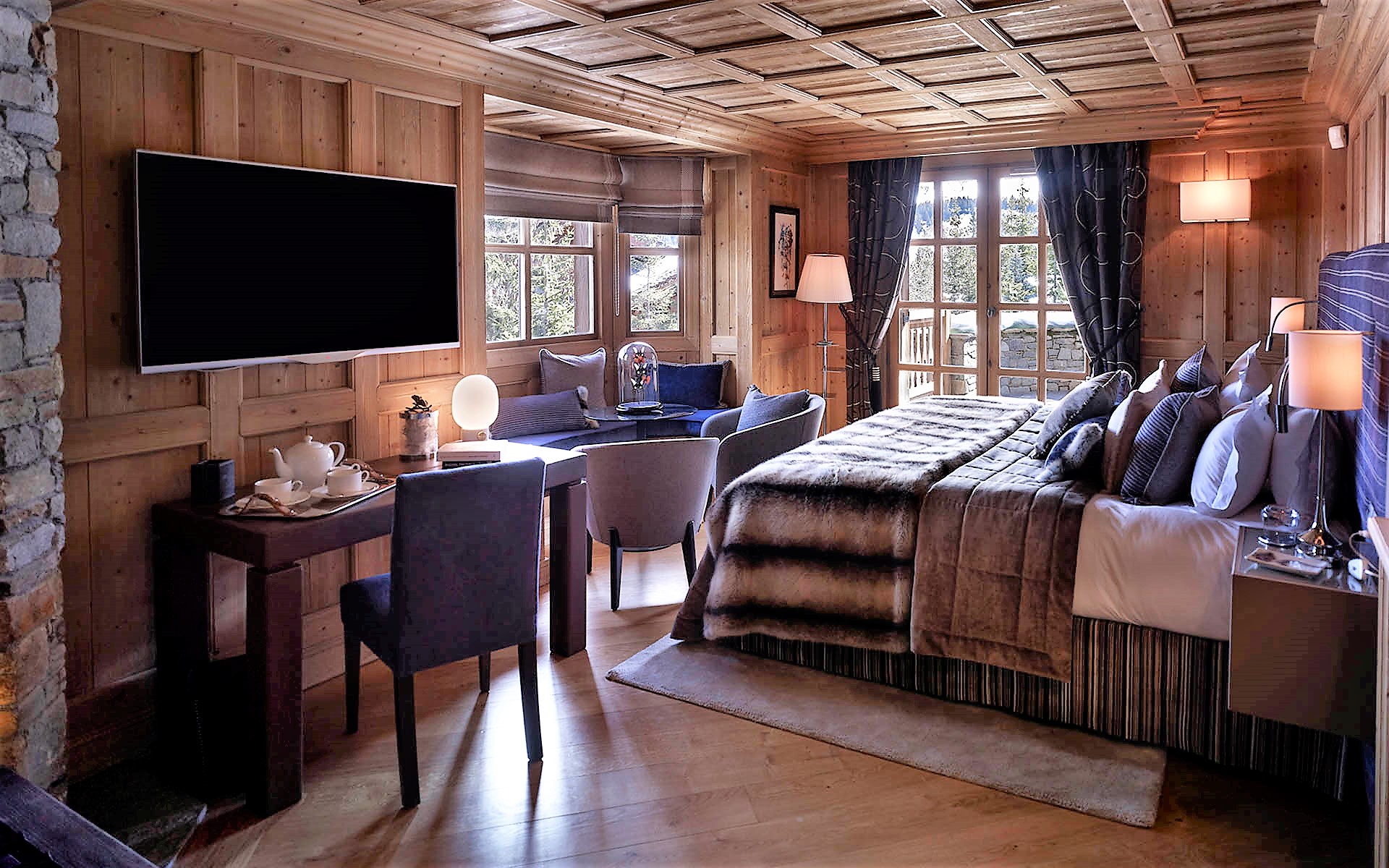 Luxurious features of the property include a hot tub, massage room, sauna, cinema, and gym. There’s also a total of five beautiful bedrooms, which are each exceptionally well-appointed. If you are able to draw yourself away from this beautiful luxury chalet, then you will find the center of Courchevel 1850 nearby, with its fabulous eating, drinking, and shopping.