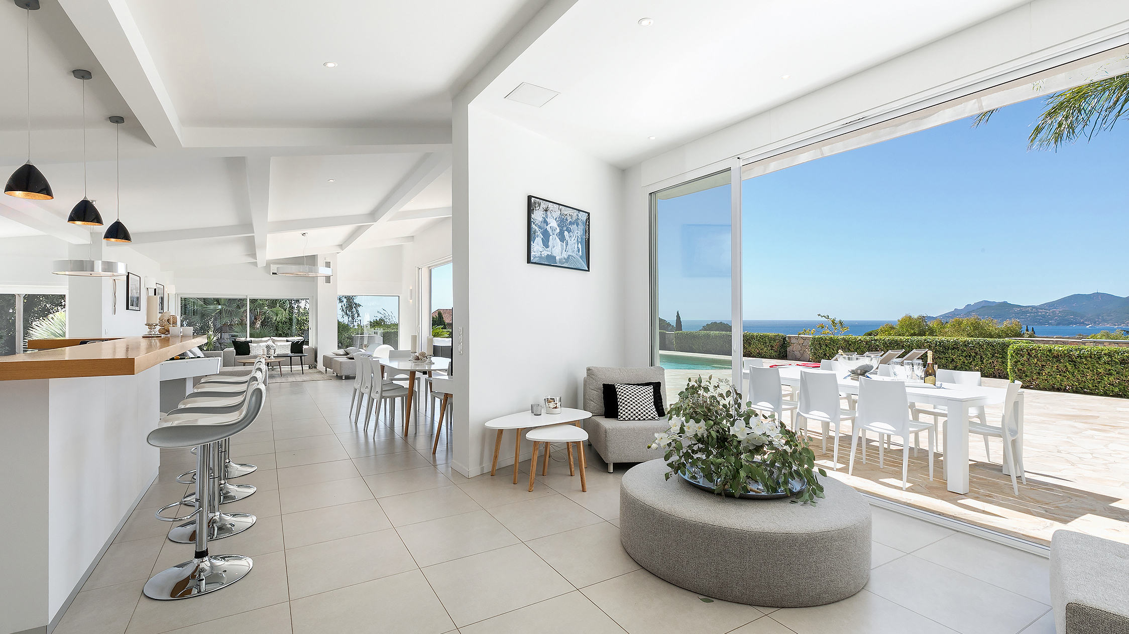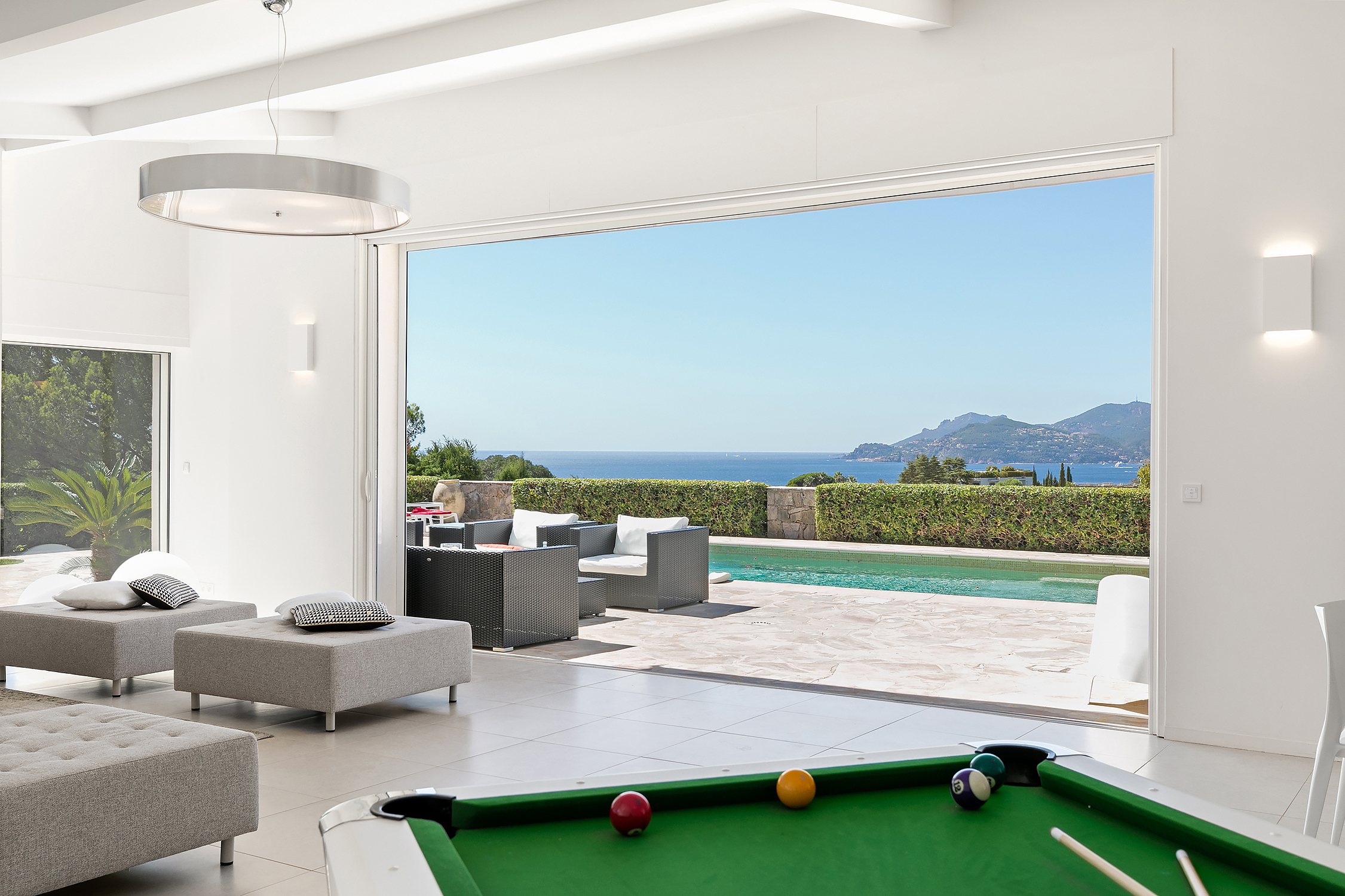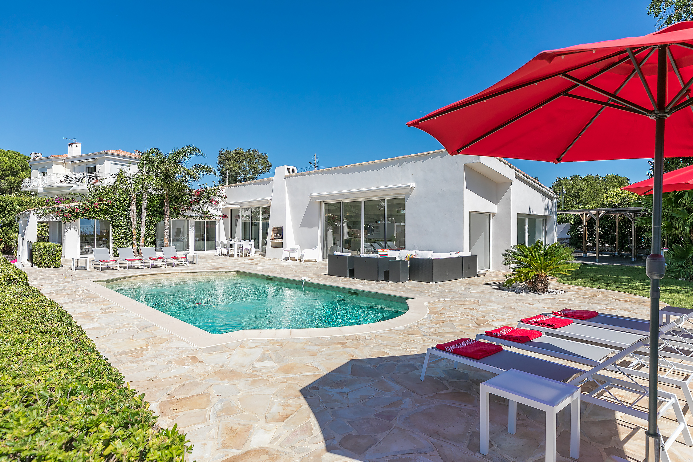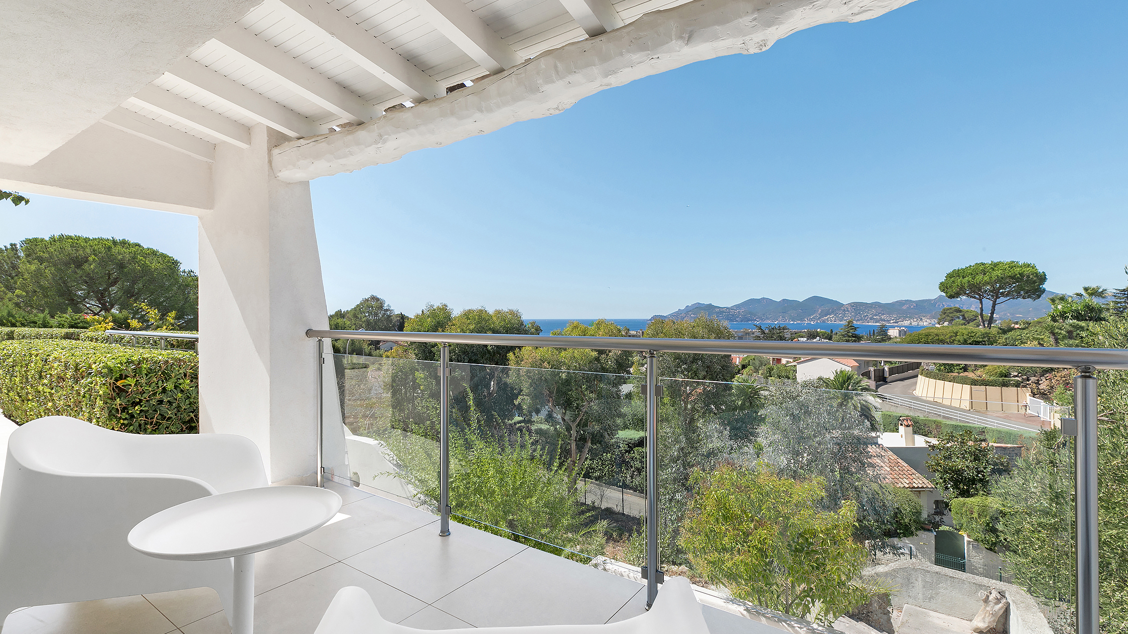 The villa has magnificent views over the Mediterranean and the Esterel mountains. The property is a haven of peace and tranquility for guests looking for a relaxing break in the sunshine of the Côte d’Azur. At the same time, it is perfectly placed to discover the golden beaches and vibrant nightlife of the glittering resort of Cannes, just 10 minutes down the coast.