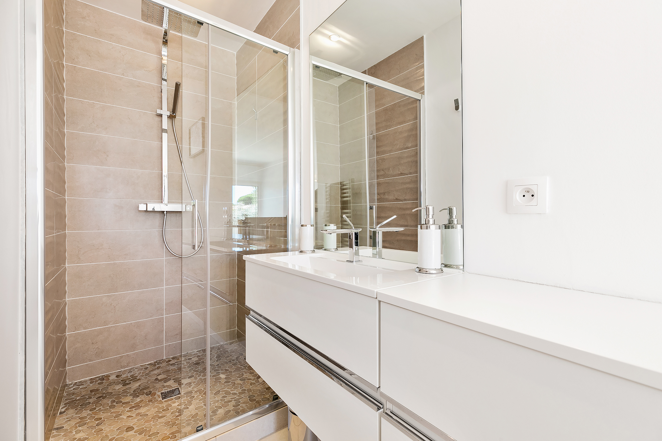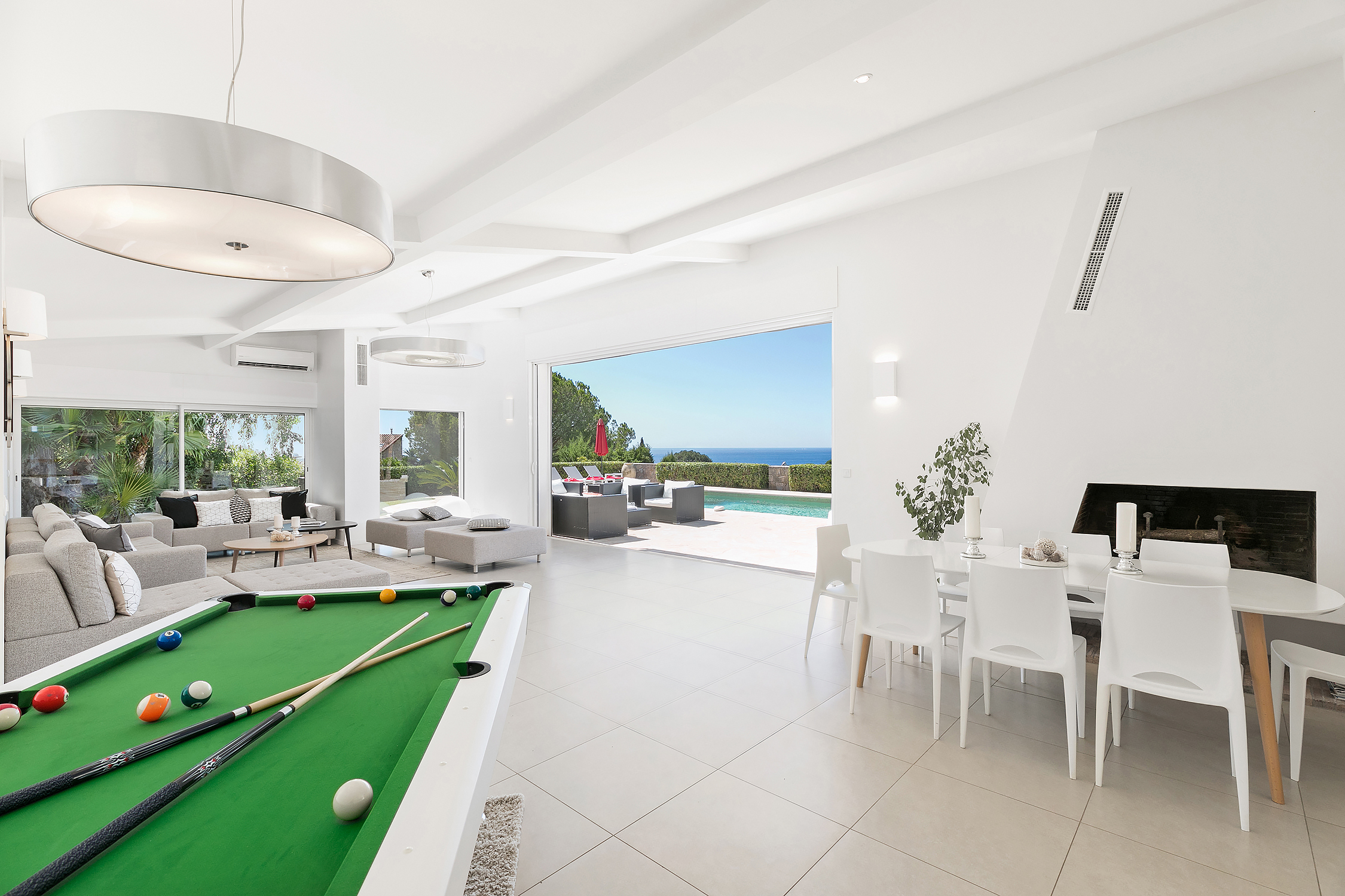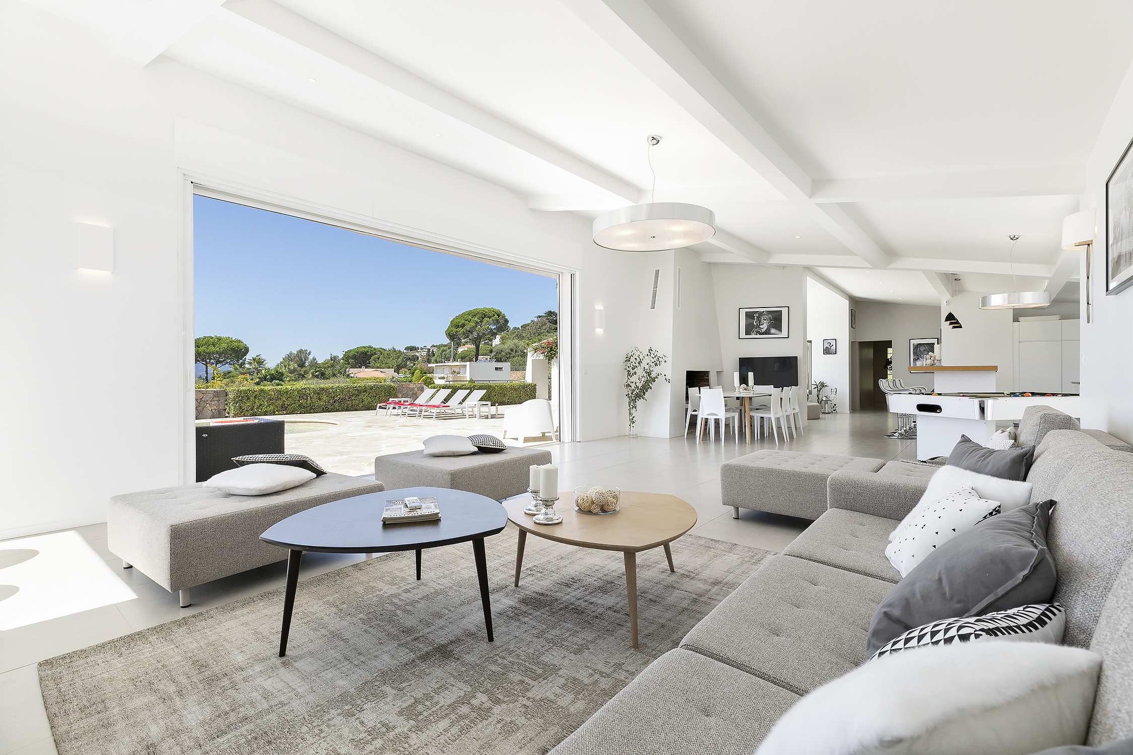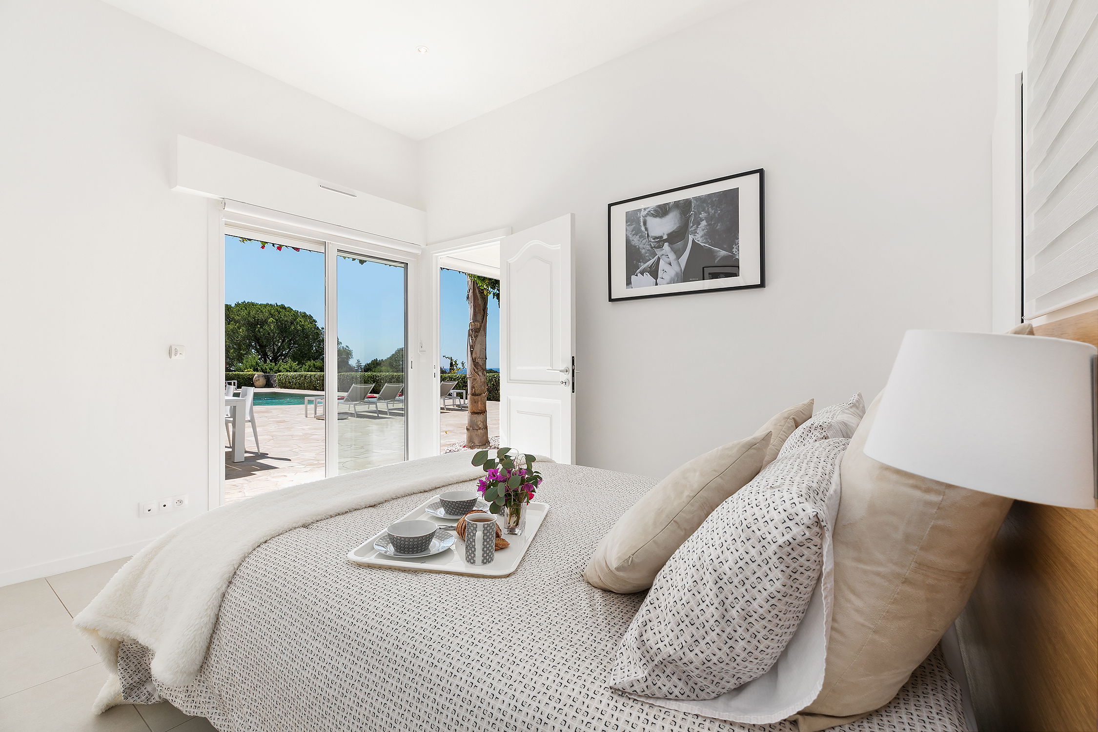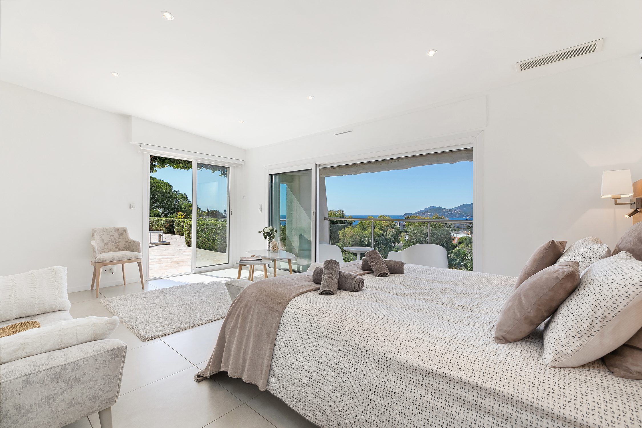 The villa has magnificent views over the Mediterranean and the Esterel mountains. The property is a haven of peace and tranquility for guests looking for a relaxing break in the sunshine of the Côte d’Azur. At the same time, it is perfectly placed to discover the golden beaches and vibrant nightlife of the glittering resort of Cannes, just 10 minutes down the coast.