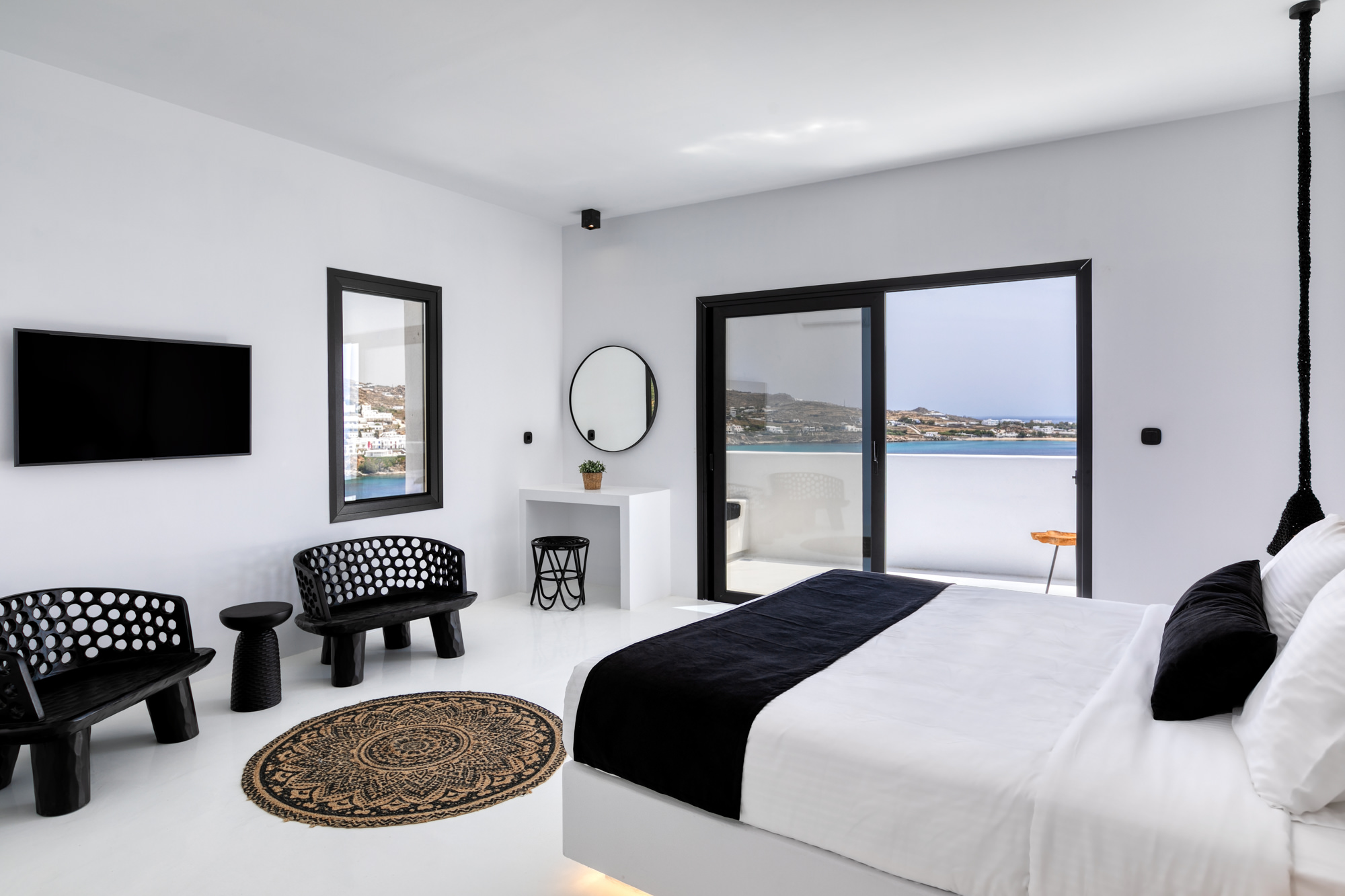 In addition to that and those who prefer to walk, a private path leads our guests to a spectacular beach in just 3 minutes. As you step inside, the property offers five ensuite bedrooms hosting up to eleven guests in richness and comfort. The open plan living offers a relaxed and neutral palette, paired with exquisite artwork and elegant features.
