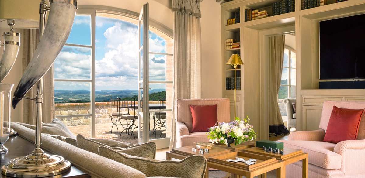 Romantic charm abounds at glorious Villa Asia, an absolutely exquisite luxury villa set amongst the rolling hills of Tuscany. The property is located near the historic area of Borgo. Villa Asia boasts a plethora of luxurious features in addition to ample traditional charm. Therefore, there’s no better way to discover the world-renowned beauty of Tuscany. Here, you’ll enjoy all of the luxe features of the finest five-star hotel, paired with all the charm of a 17th-century farmhouse.