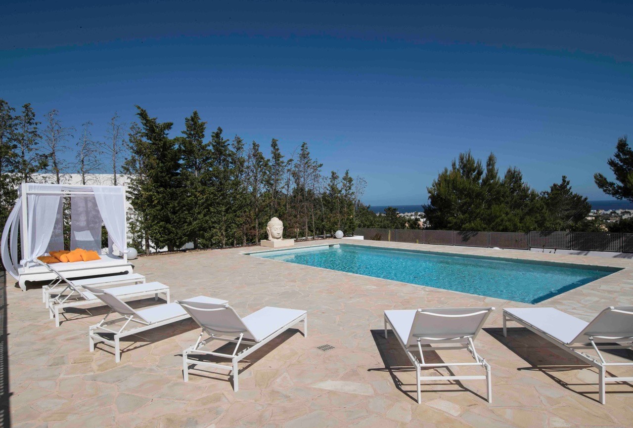 Of course, Ibiza is all about enjoying time outside, and you are sure to be impressed by what’s on offer beyond the doors at Villa Bianca. A dazzling swimming pool invites you to take a dip while enjoying sumptuous views.