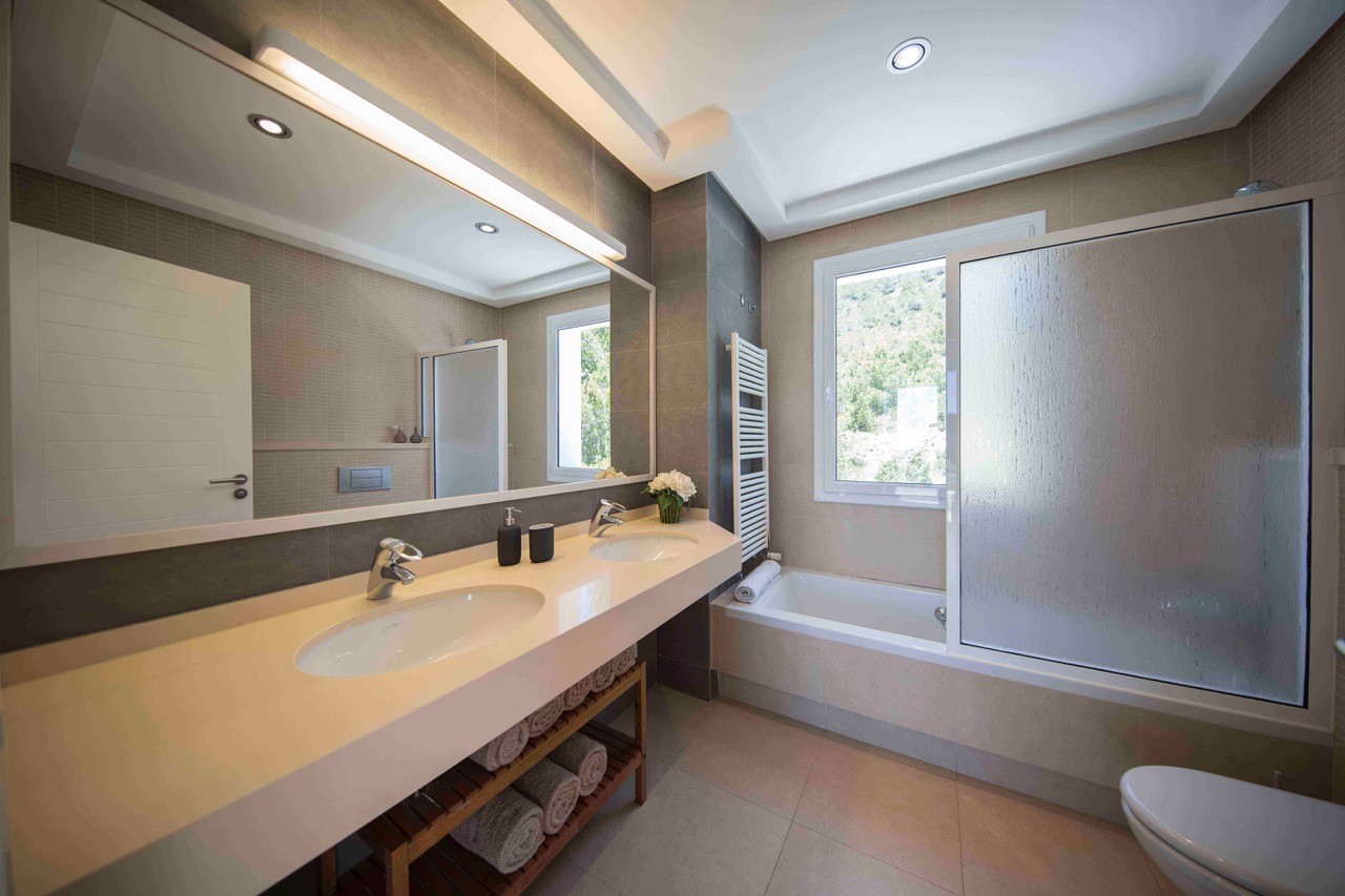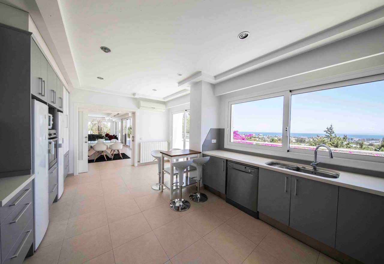 Stepping inside the villa, it is modern and carefully curated to be stylish yet inviting. Large floor-to-ceiling windows invite the sea views in and also bathe the property in natural light. Six beautiful bedrooms allow up to twelve guests to sleep comfortably.