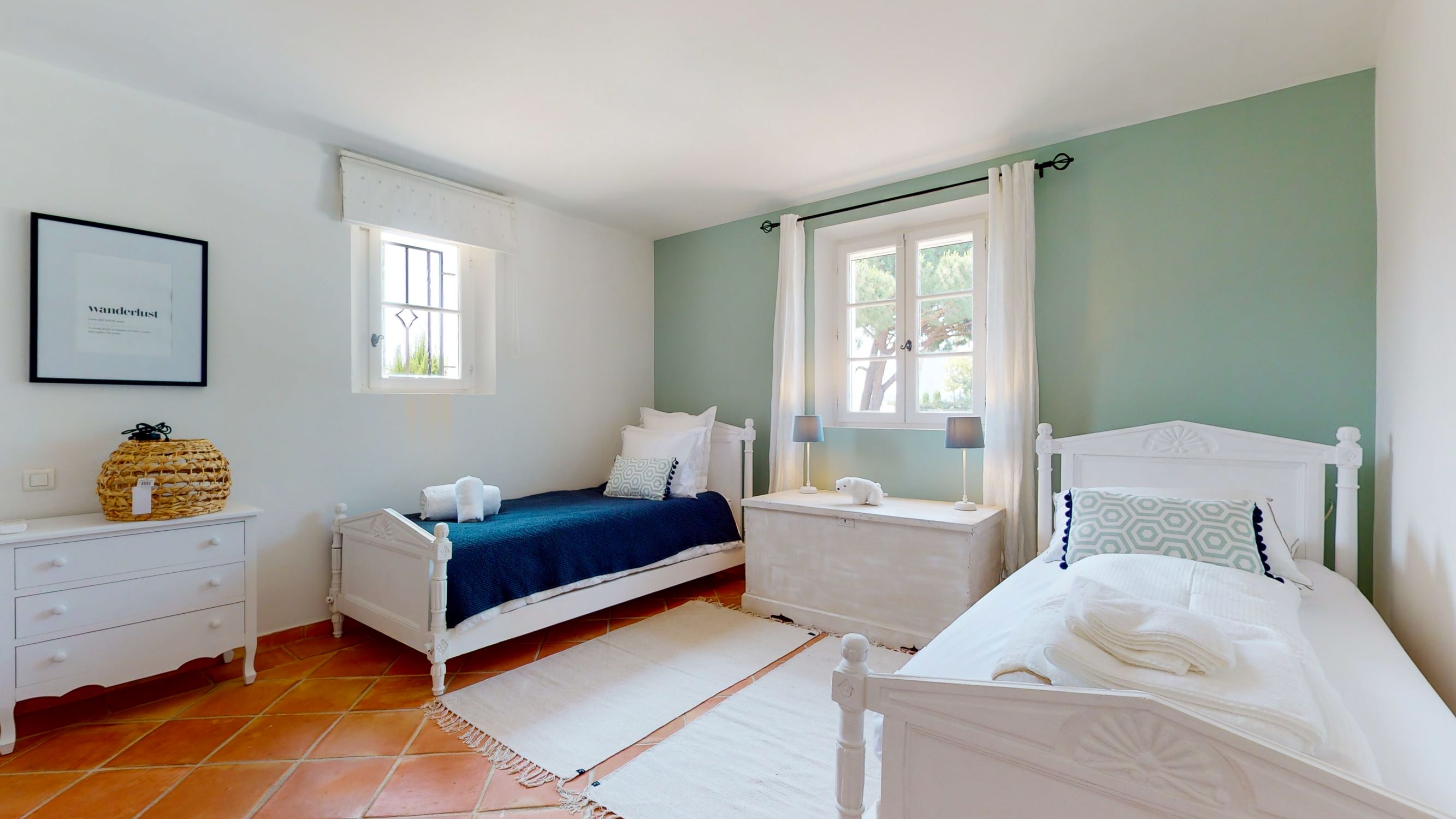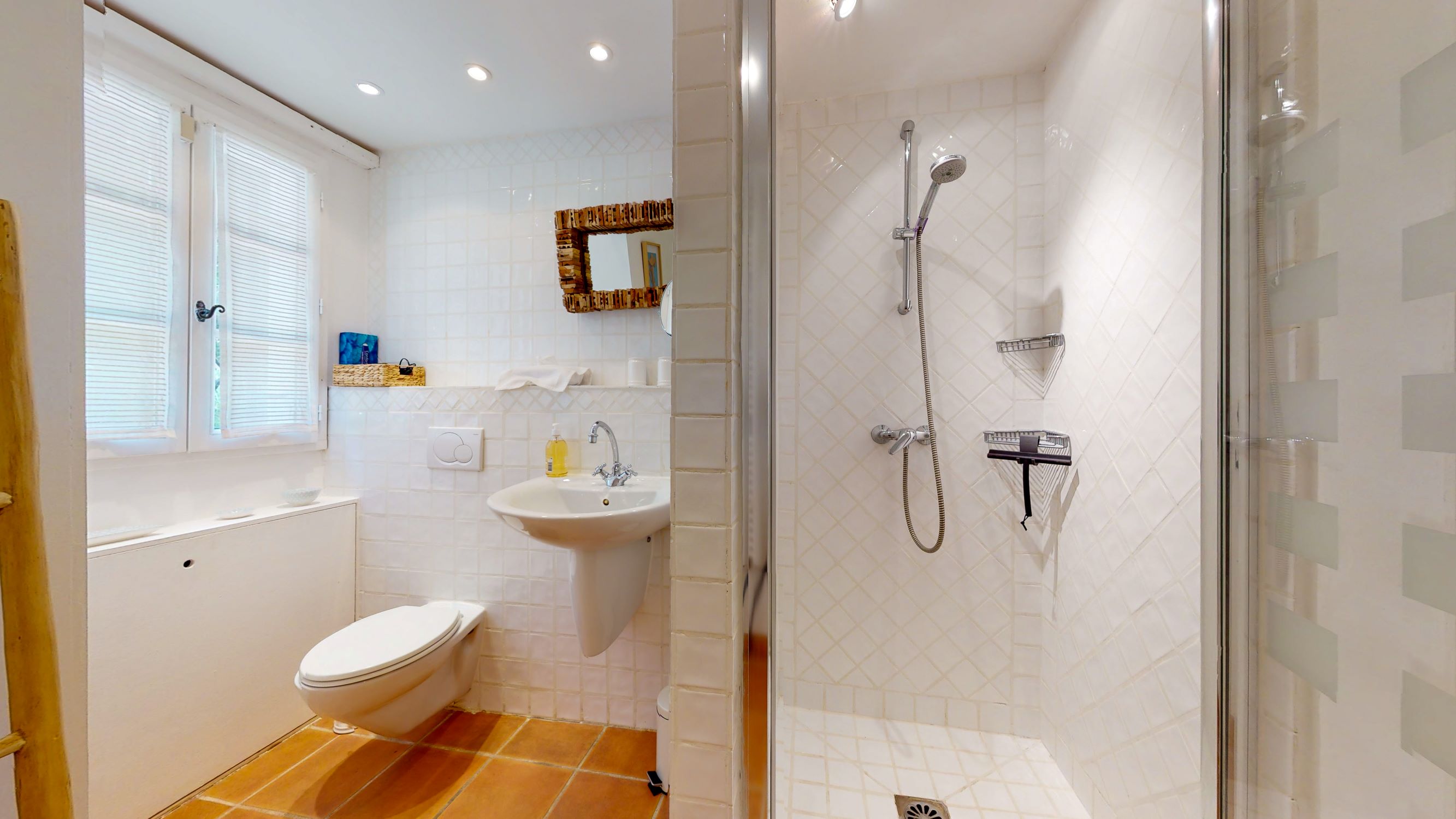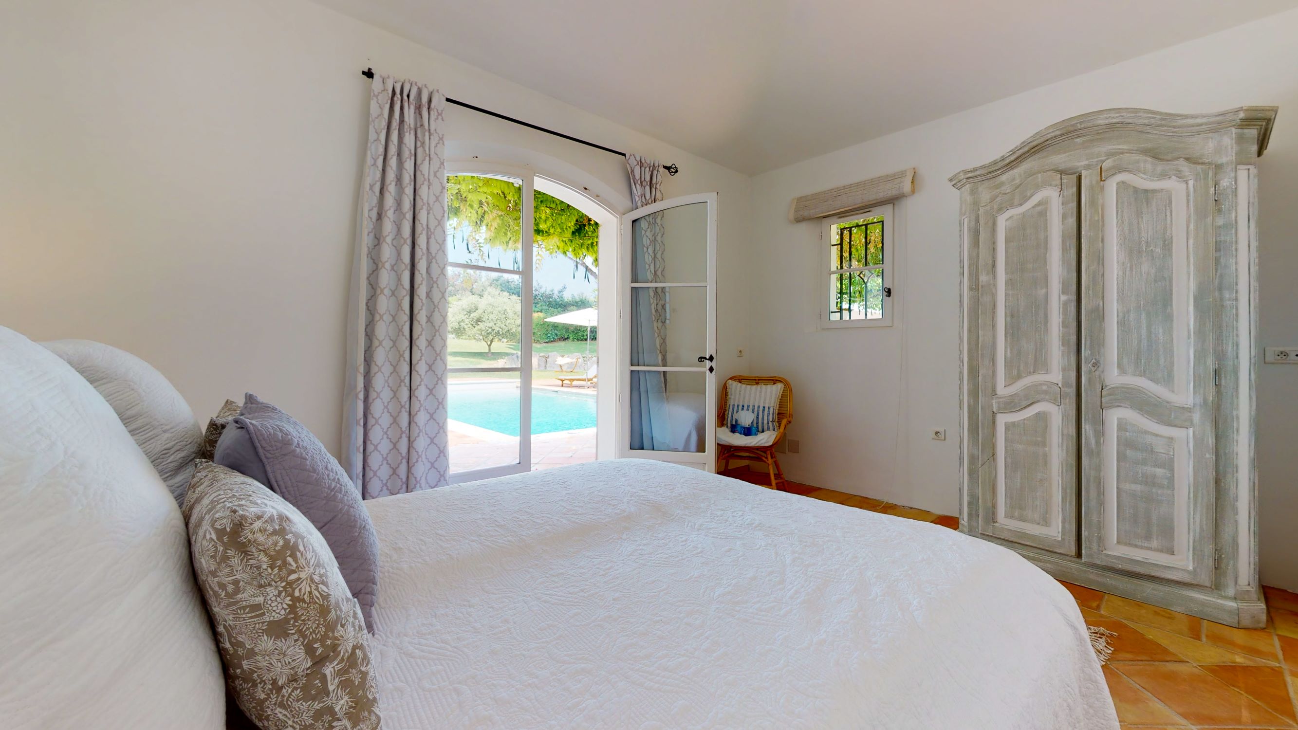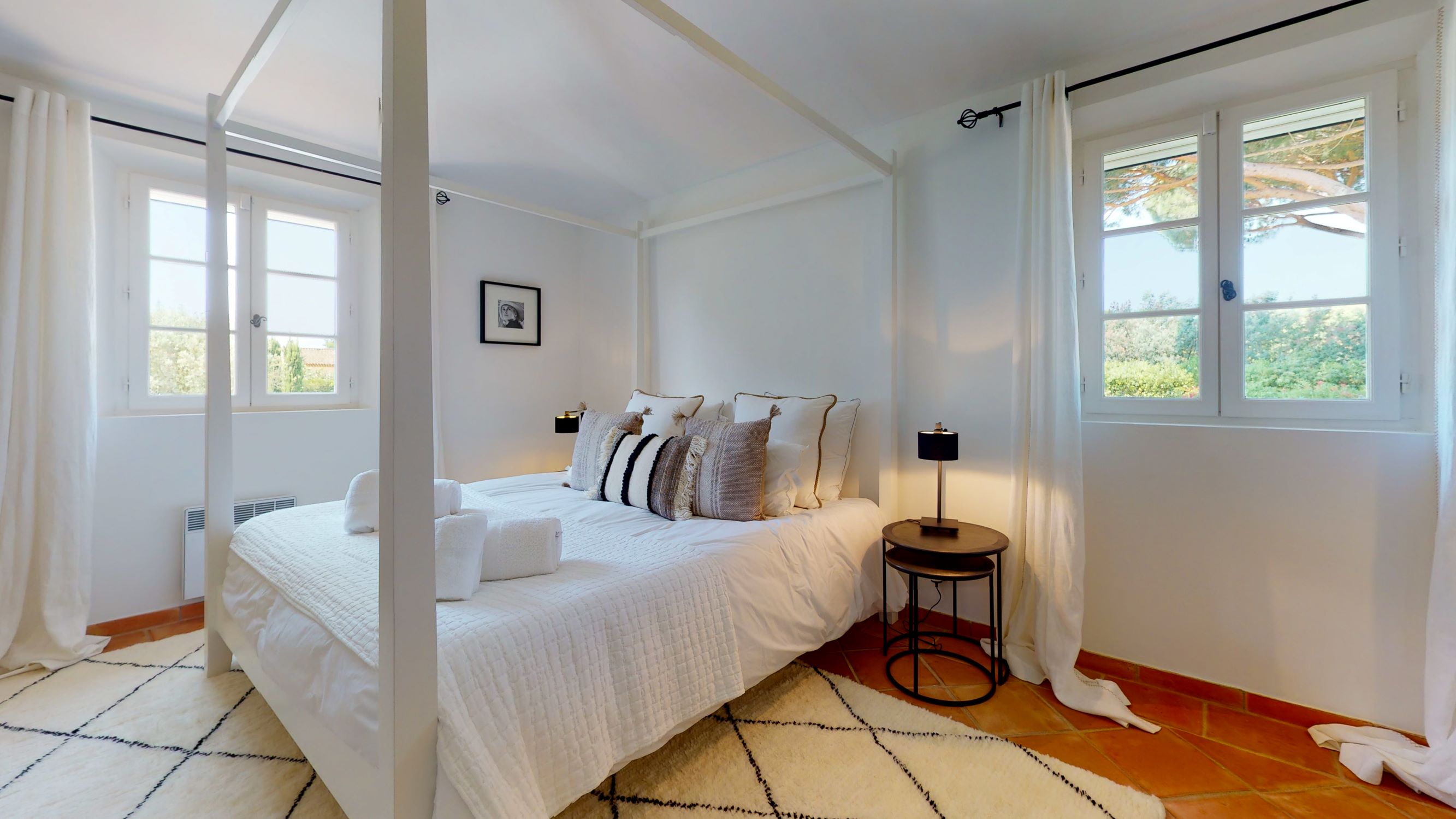 The first floor gathers a sumptuous Master bedroom suite with a king-size bed, an ensuite bathroom. There is another guest bedroom with an ensuite shower room, and a small bedroom converted into a study.