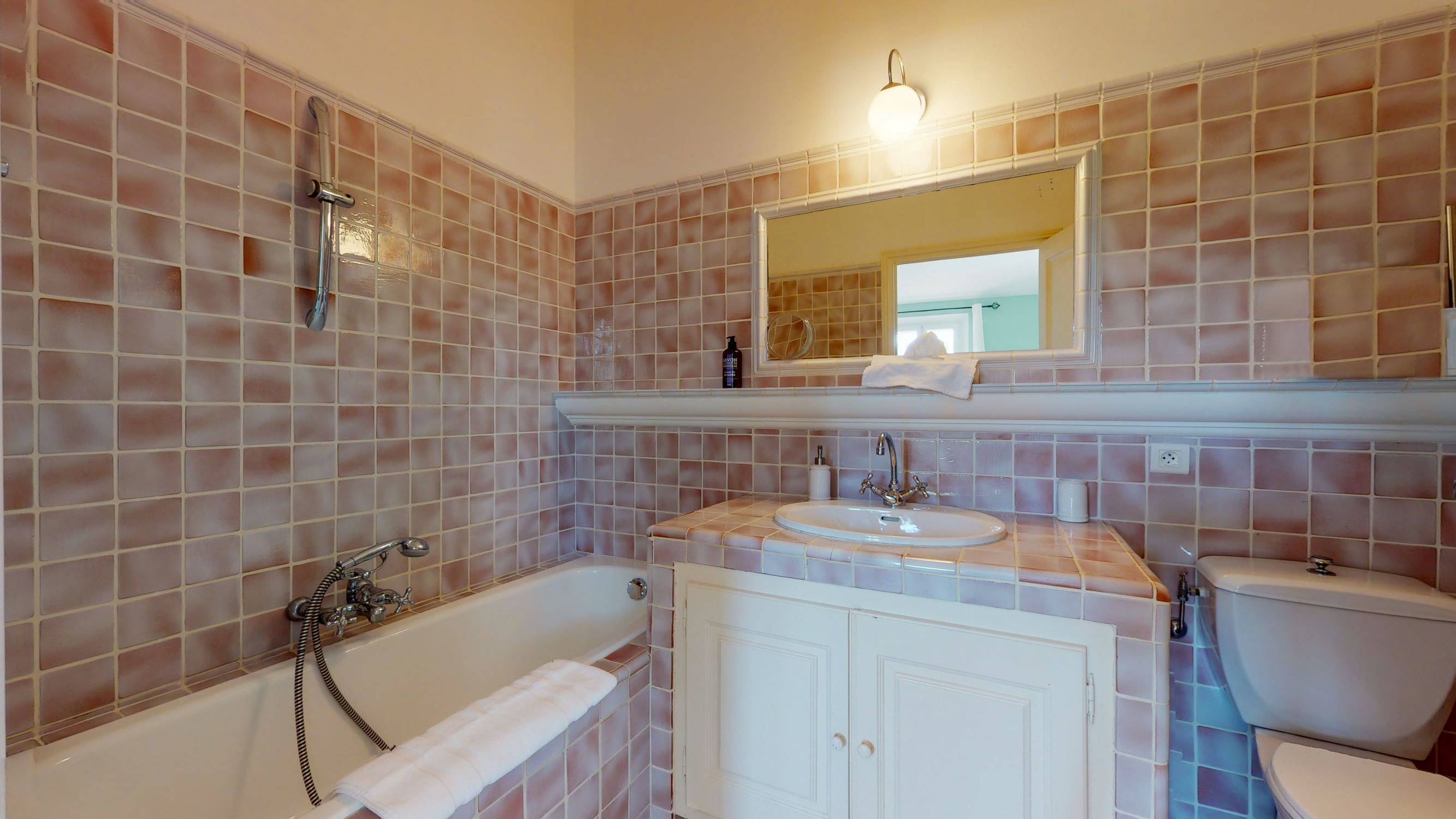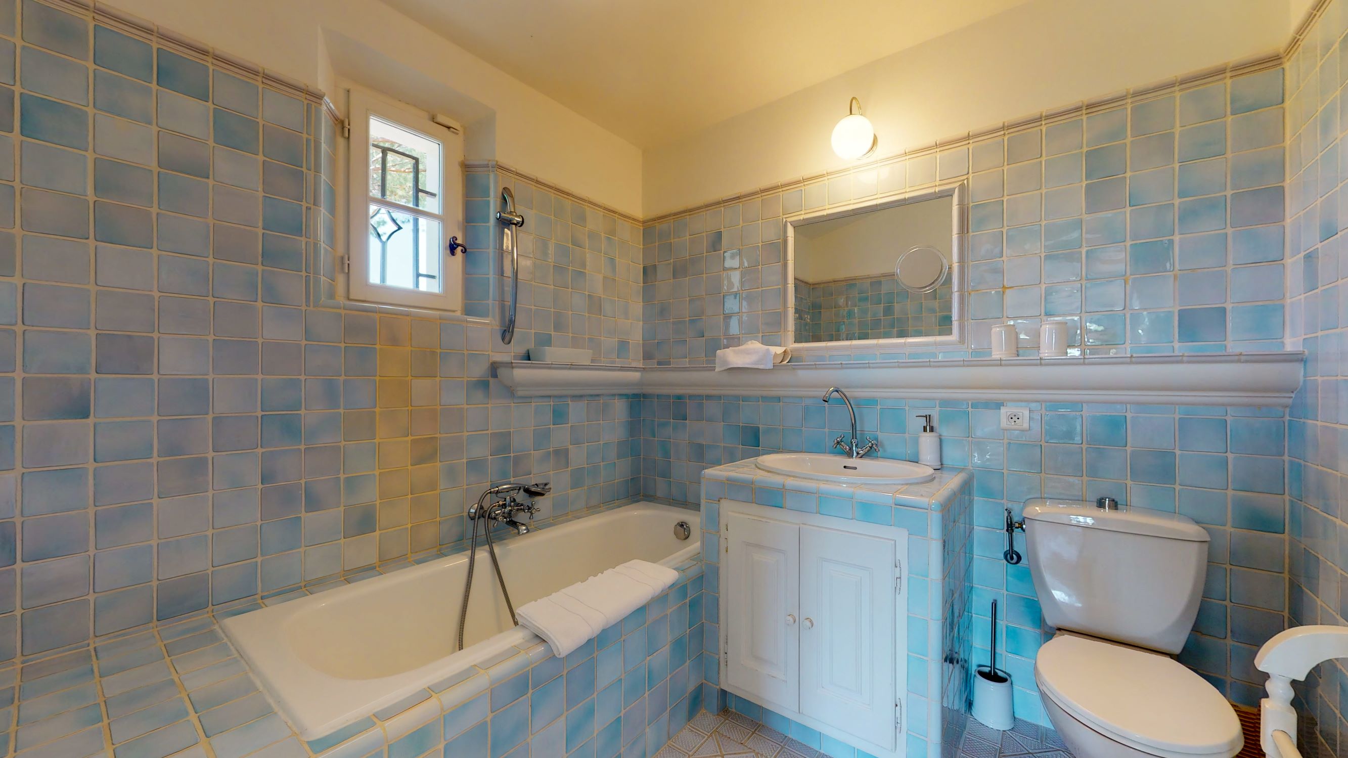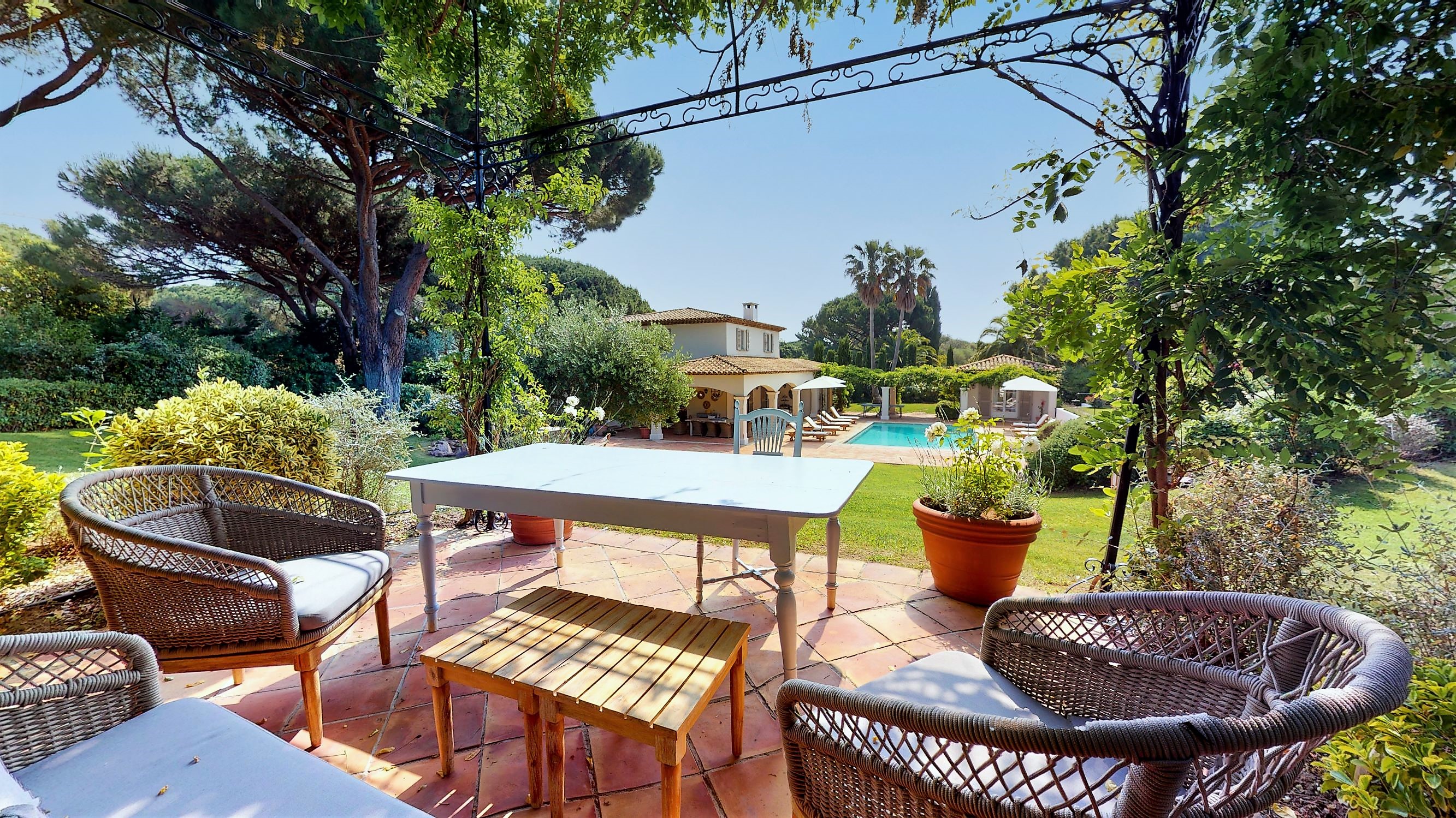 The splendid villa peacefully nestled on a dead-end street, immerse its guests in tranquility and privacy. There are five beautiful, air-conditioned bedroom suites, including a large master suite, with its independent bathroom and dressing room and an private guest house with a guest bedroom.