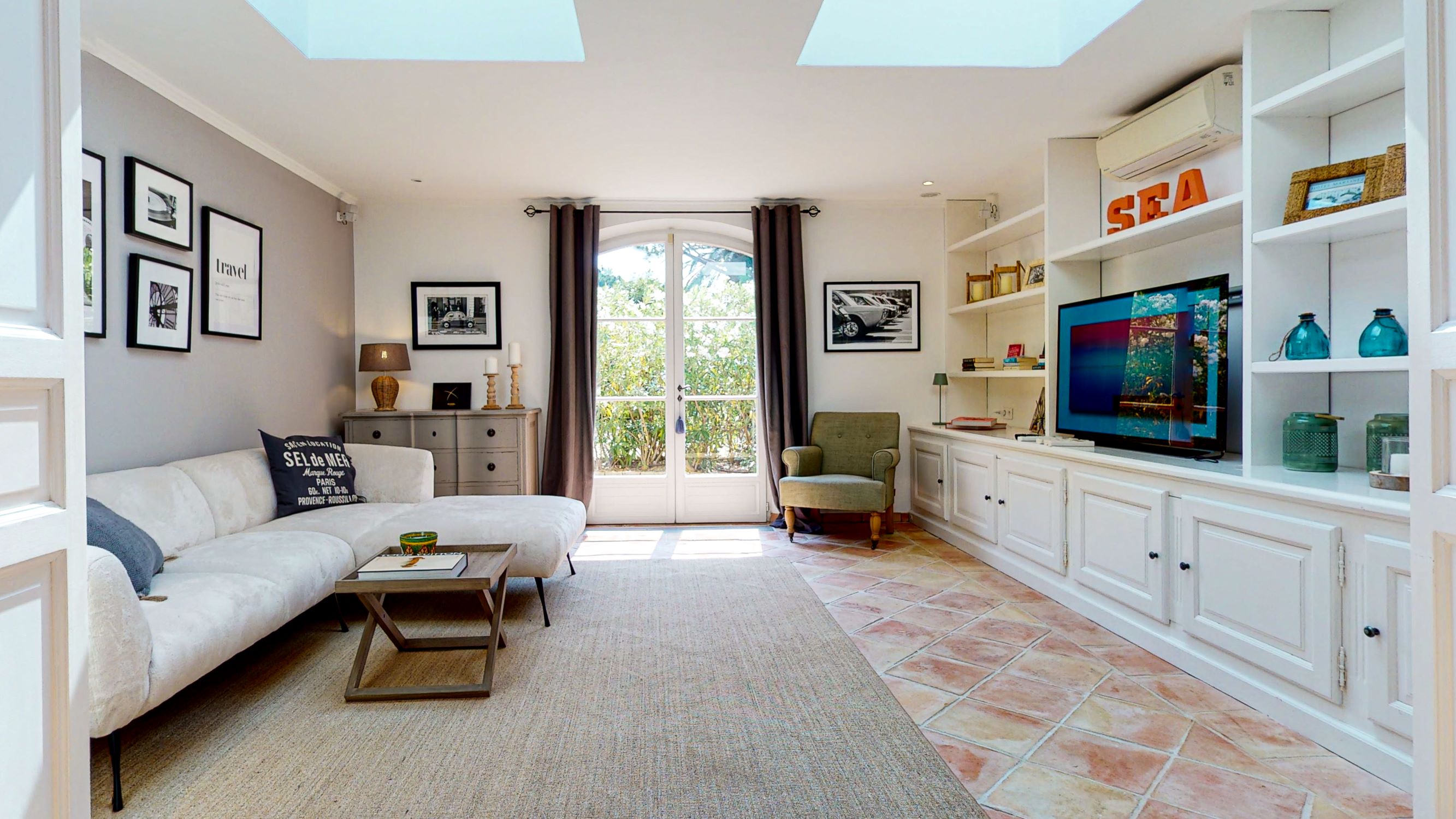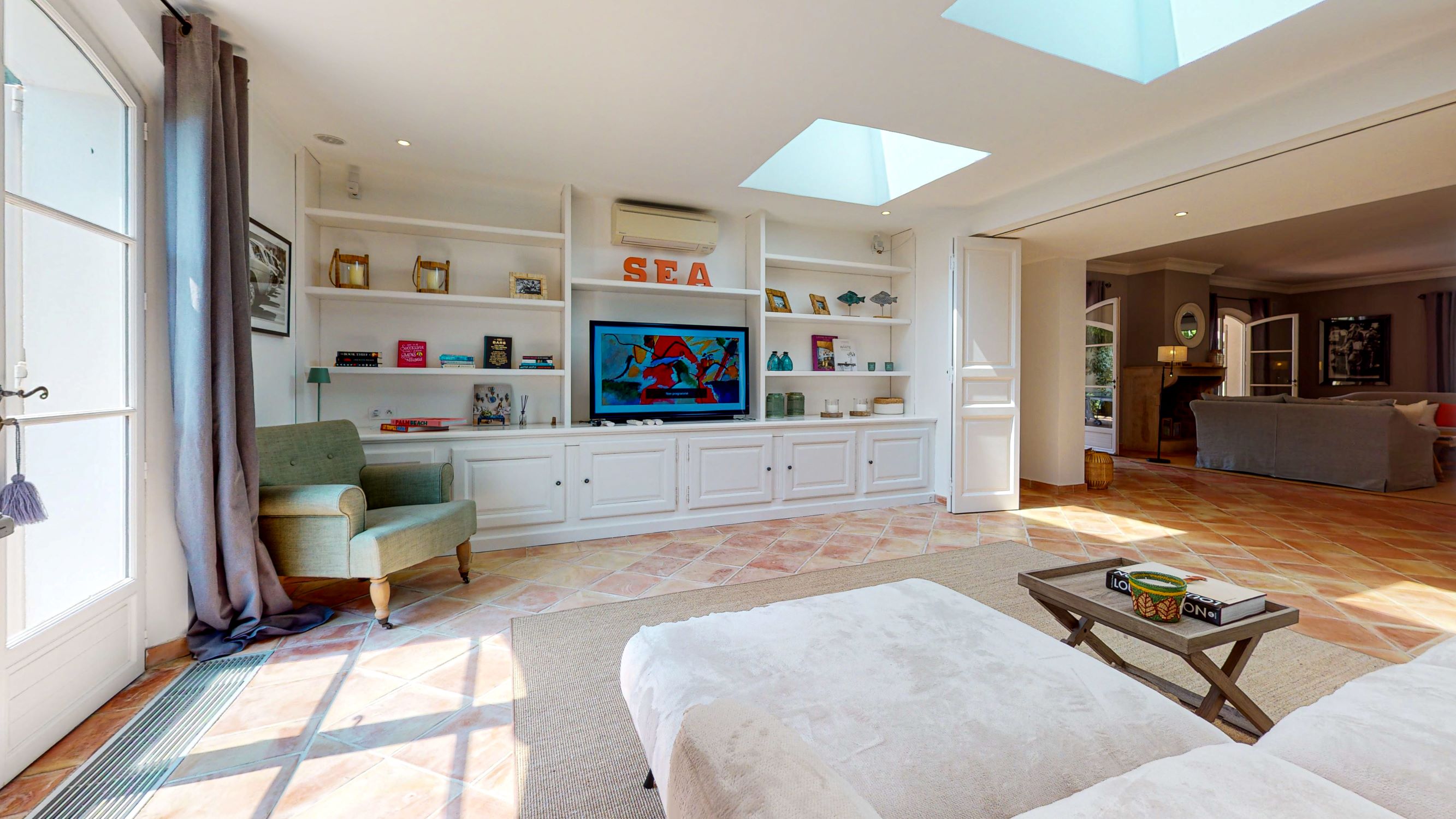 On the ground floor, the foyer leads to the powder room and an expansive double living room, including a TV lounge. The space opens onto a tiled terrace composed of an outdoor living and dining area. The fully equipped kitchen with direct access to the alfresco dining area and the summer kitchen is the perfect setting for delicious culinary evening. There are two guest bedrooms on this level each with private bathrooms.