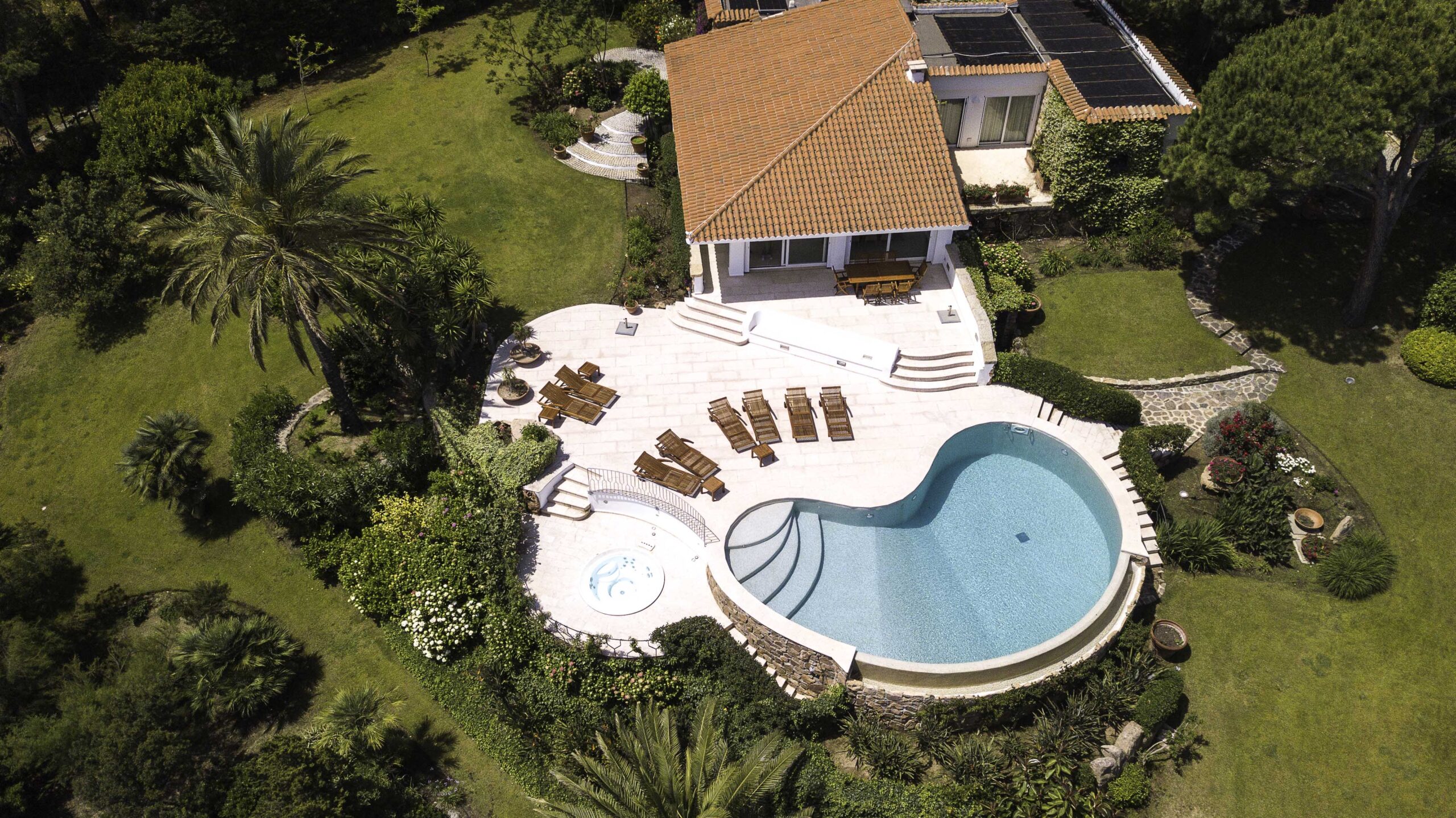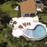 The manicured grounds offer an abundance of luxury features, including a swimming pool, Jacuzzi, alfresco dining area, and a pizza oven. There’s also a sparkling swimming pool flanked by sun lounges. From the sumptuous backyard, there’s direct access to a small and charming beach, while even more beaches are just a short drive away.