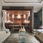 This luxurious villa in Cap d’Antibes boasts a contemporary design and stunning panoramic views of the sea, the Alps, and the lighthouse. Spread over 330 square meters and surrounded by a beautifully landscaped garden of 1800 square meters, this villa is the epitome of comfort and opulence. Upon arrival, guests are greeted by a magnificent contemporary stone fountain facing a glass wall, creating a magical and bright atmosphere.