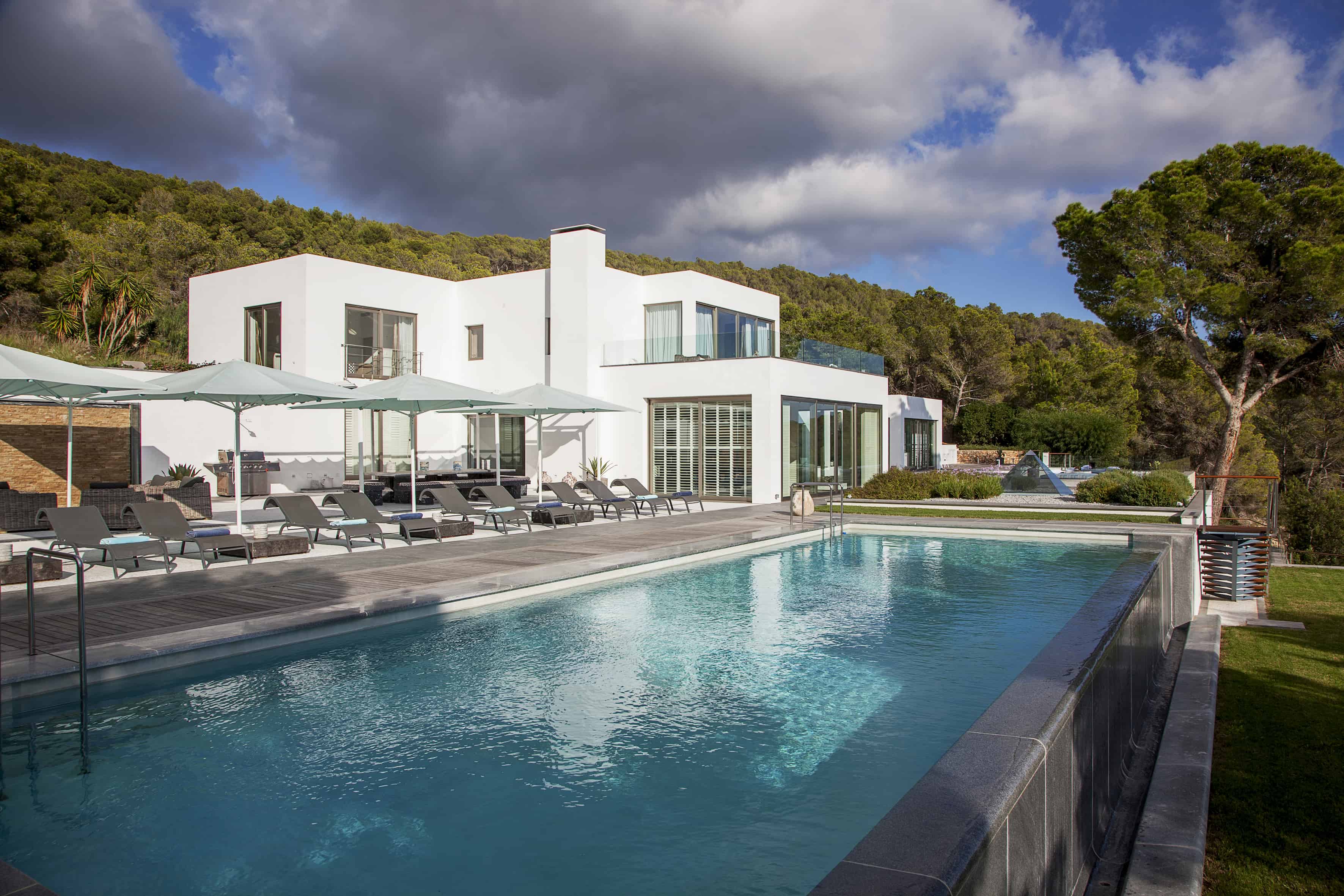 If you are dreaming of a luxurious and tranquil escape, look no further than beautiful Villa Catelyn. Boasting an enviable location between Ibiza Town and San Jose, this villa has one of the island’s most exclusive addresses.