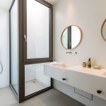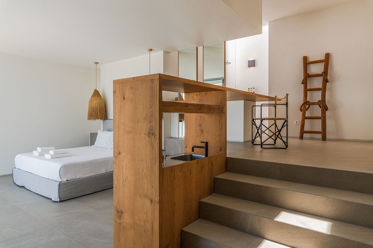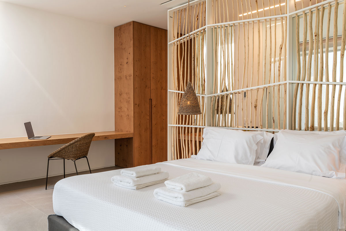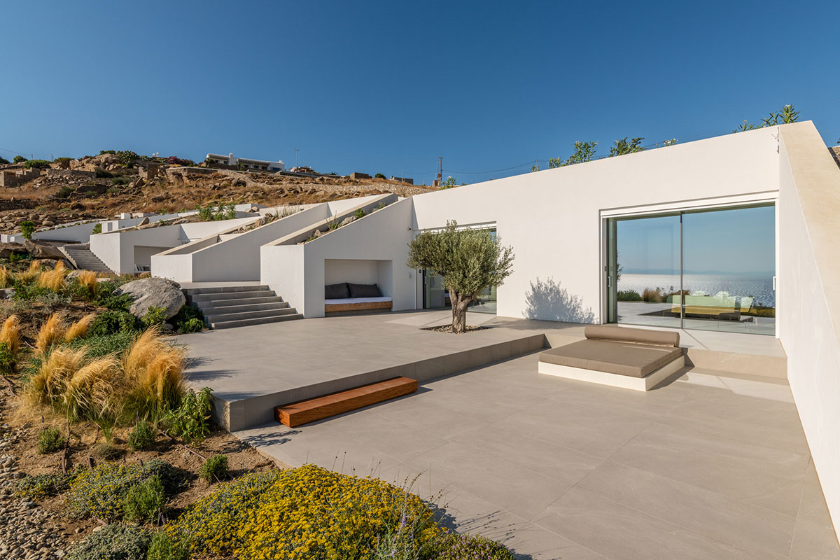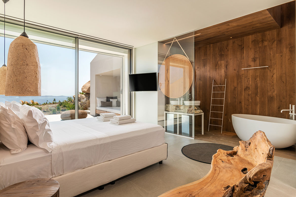 The interior is a peaceful sanctuary, with soft neutral colors and natural textures throughout. Another highlight of the design is the floor-to-ceiling windows that offer sumptuous views over the sea.