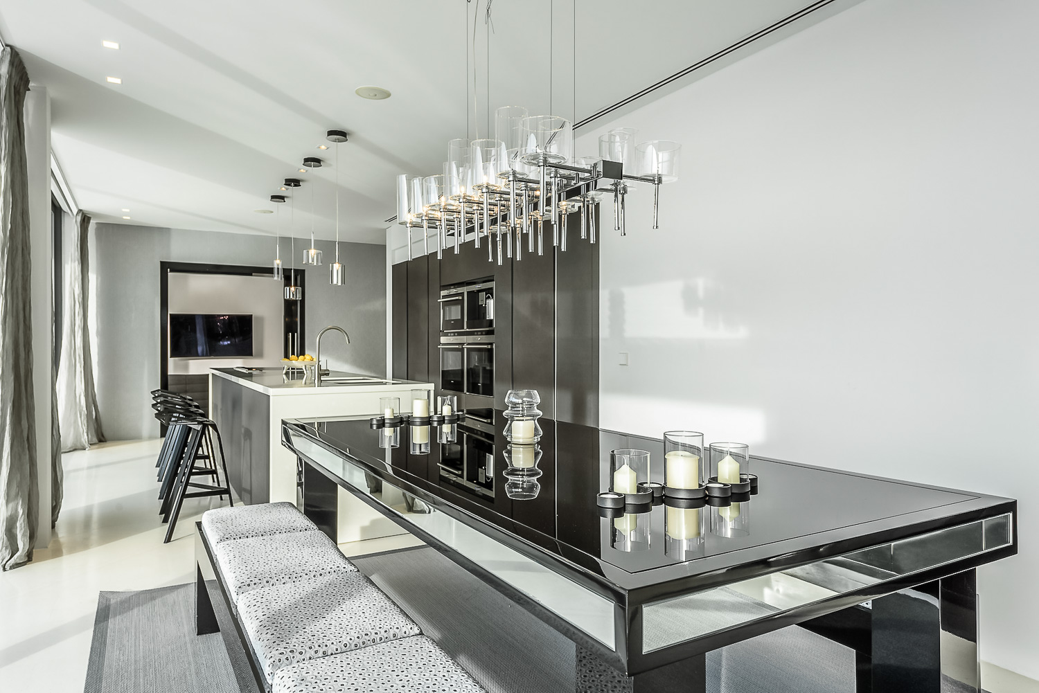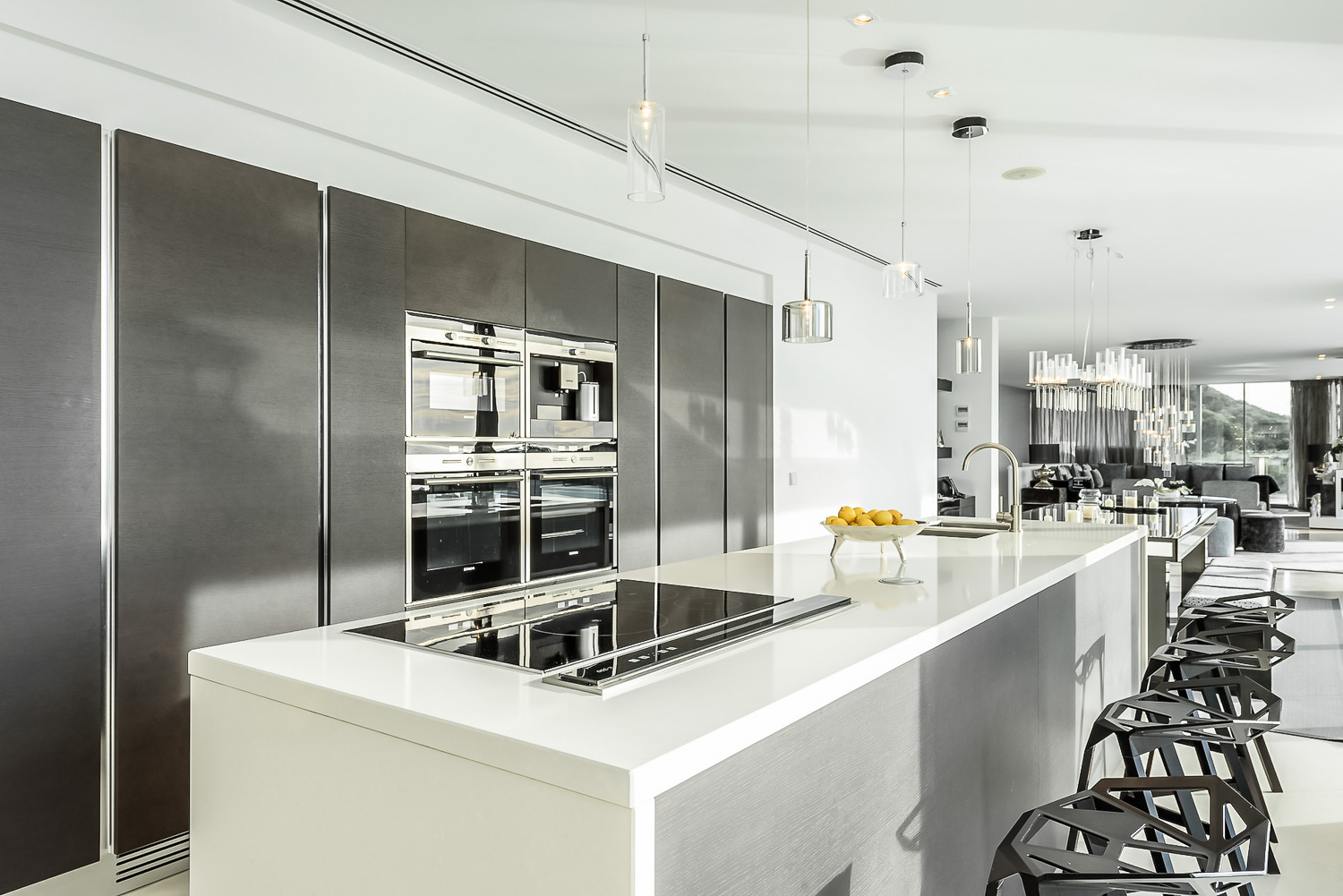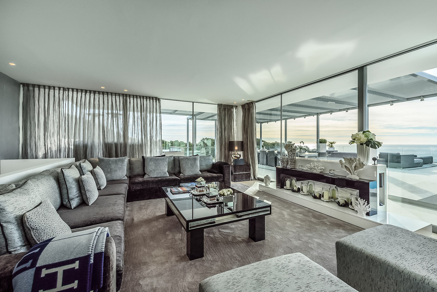 Inside, the luxurious and grand character and decor are impressive. For instance, the acclaimed interior designer Bruno Erpicum created an exceptionally stylish space. Floor-to-ceiling windows ensure that the home is light, and takes full advantage of the stunning views. Within the luxury villa, you will find numerous shared spaces for relaxing and entertaining. Some highlights include the expansive lounge room, dining room, and playroom. There is also a fully equipped kitchen. On the lower level, you will find a gym, pool table room and cinema room for your enjoyment.
