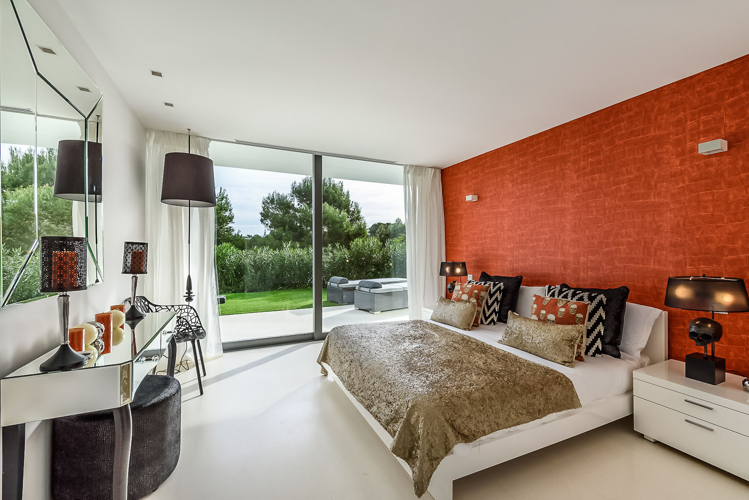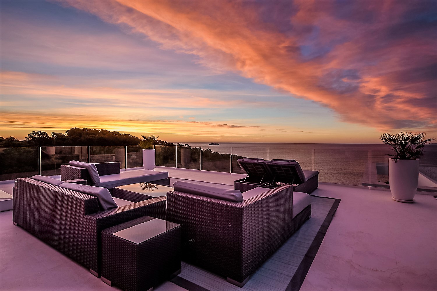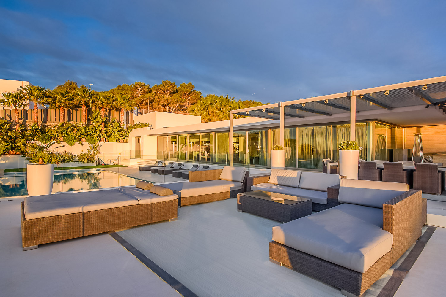 Villa Flora is a stunning luxury villa in Ibiza. This exquisite property is a contemporary masterpiece. It is sleek and sophisticated and blends beautifully with the character of its surroundings. Nestled amongst mature palm trees, there is a sense of privacy and seclusion.
