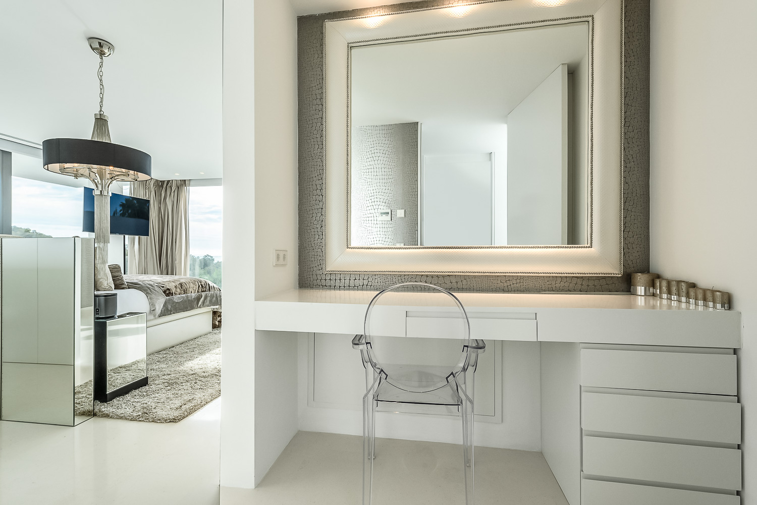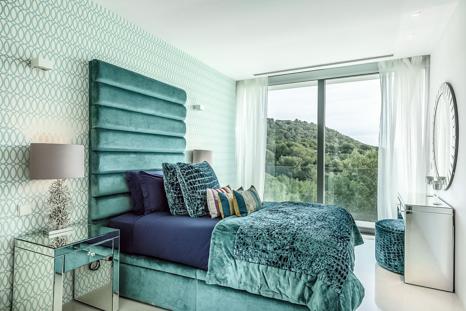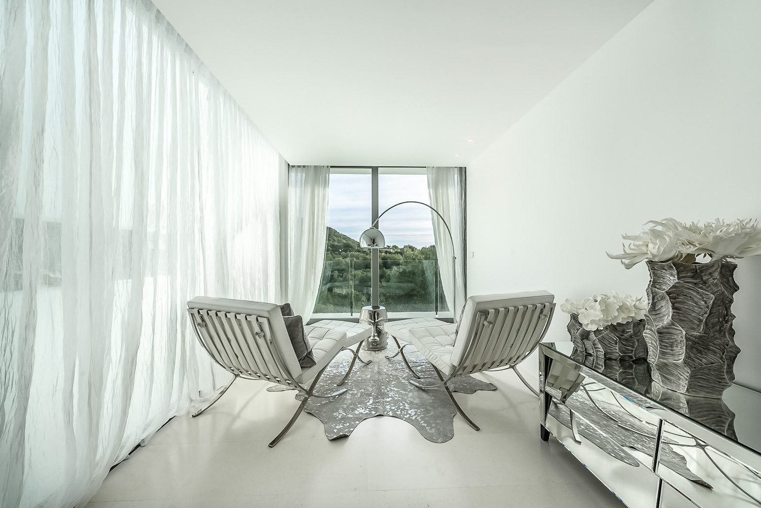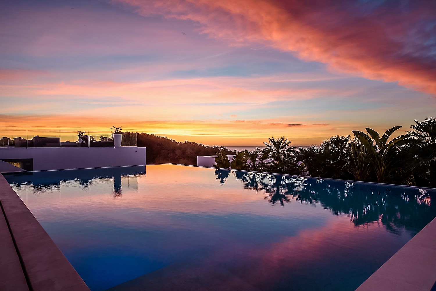 Villa Flora is a stunning luxury villa in Ibiza. This exquisite property is a contemporary masterpiece. It is sleek and sophisticated and blends beautifully with the character of its surroundings. Nestled amongst mature palm trees, there is a sense of privacy and seclusion.