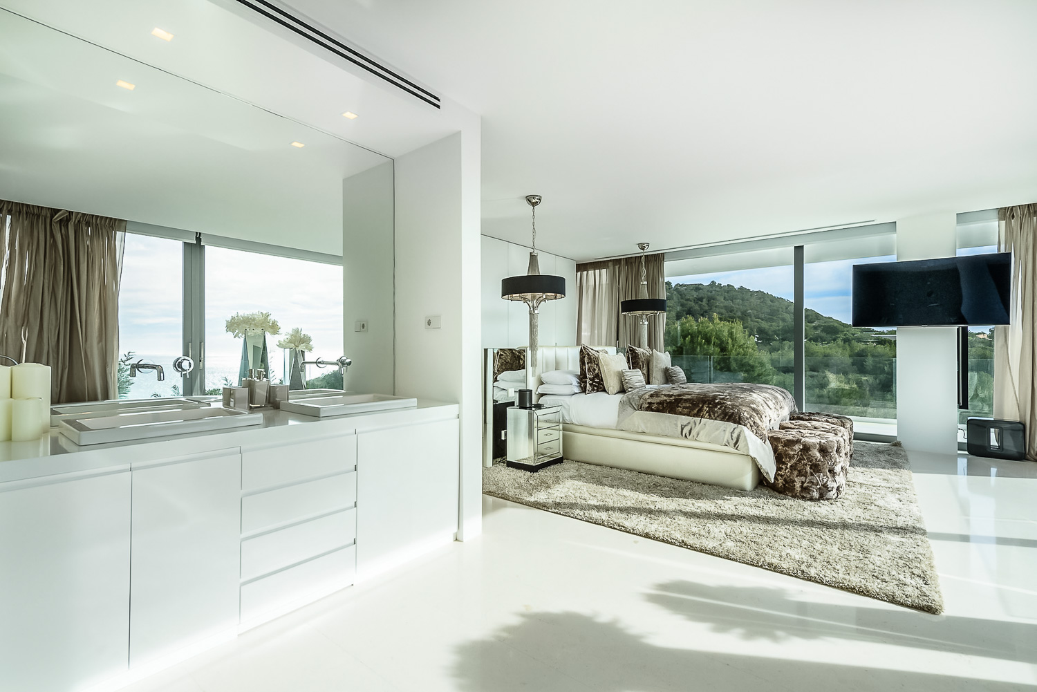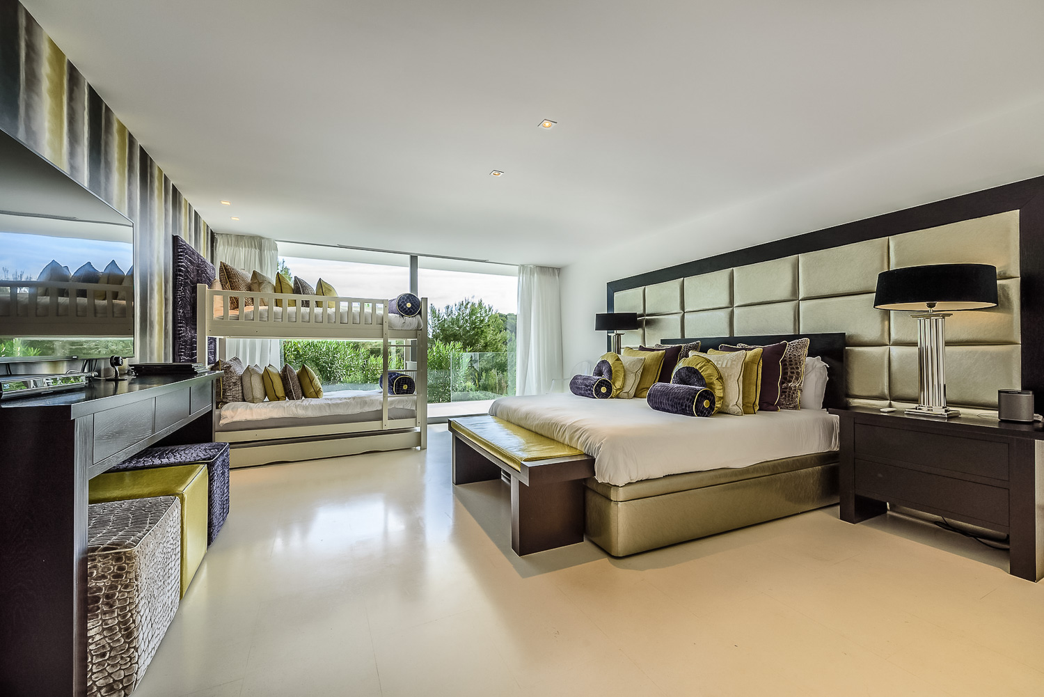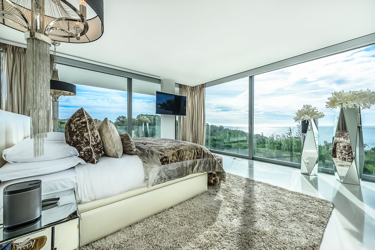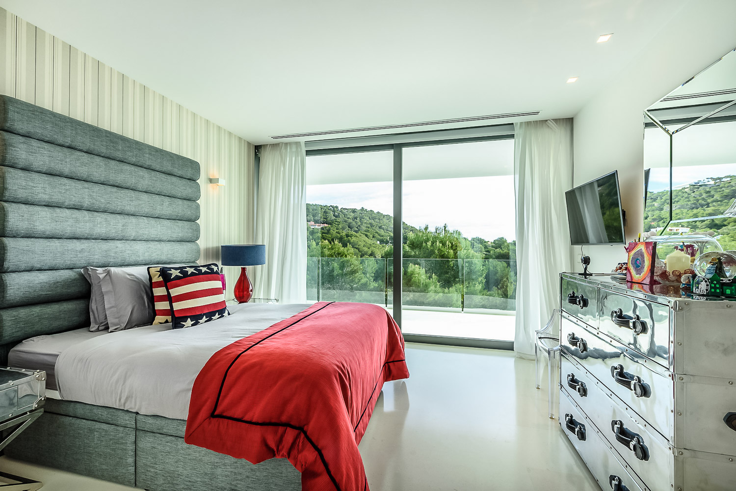 Finally, the beach is just 150 meters away, while Ibiza Town is just five minutes away as well. The marina is also nearby. Lastly, for your peace of mind, the villa has a state-of-the-art security system. It ensures the safety of you and your belongings. There is also undercover parking for guests traveling with their own vehicles.