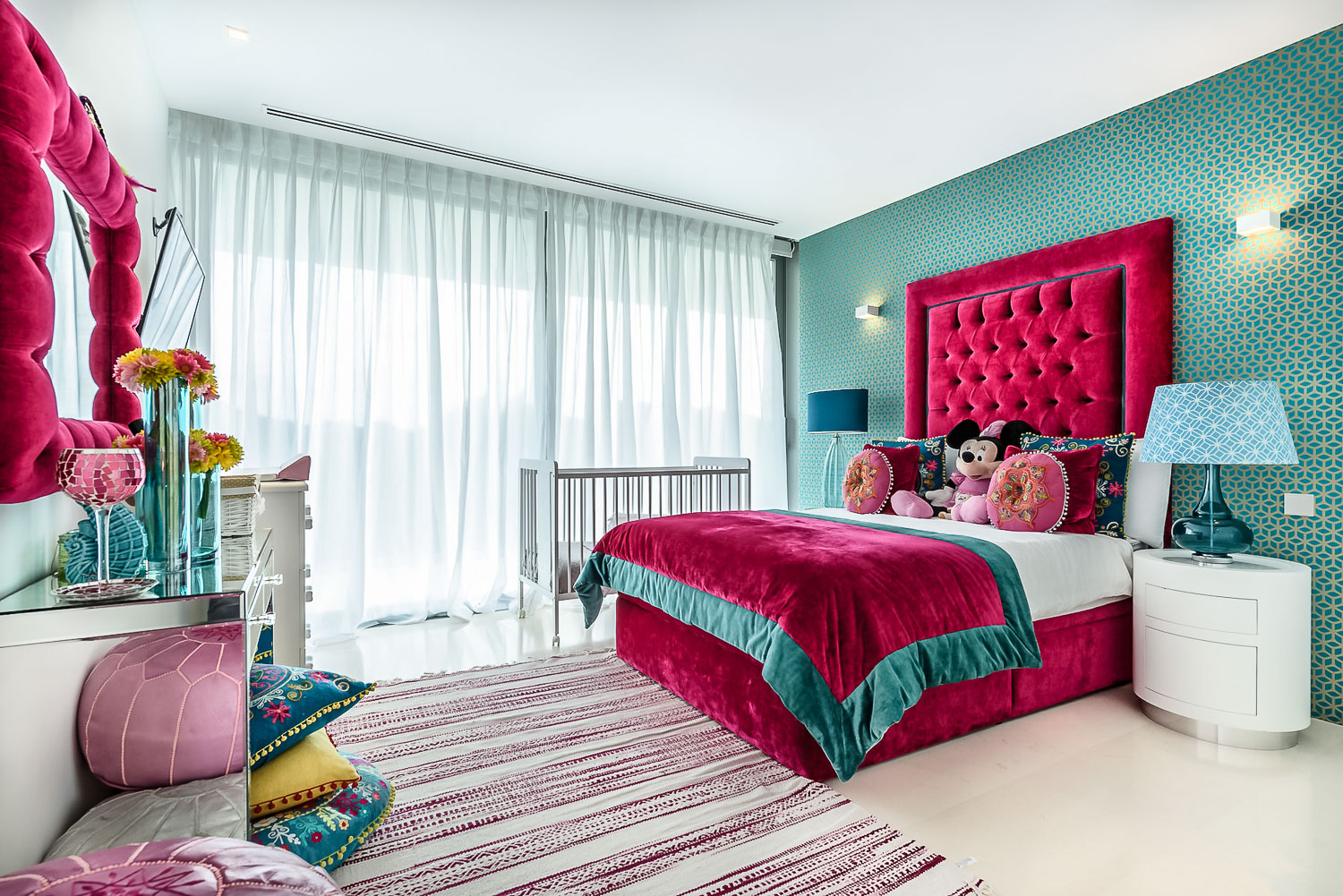 Villa Flora boasts 9 beautiful bedrooms. Each one enjoys a deluxe king-size bed with luxurious linens, as well as its own private ensuite. The master bedroom’s ensuite also features a relaxing soaking tub. One bedroom is ideal for children. Villa Flora can comfortably sleep up to fourteen guests.