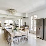 Inside, the villa effortlessly blends modern style with classic charm, creating a warm and welcoming atmosphere. A light palette and natural textures help add to the tranquil atmosphere and calming ambiance of the home.