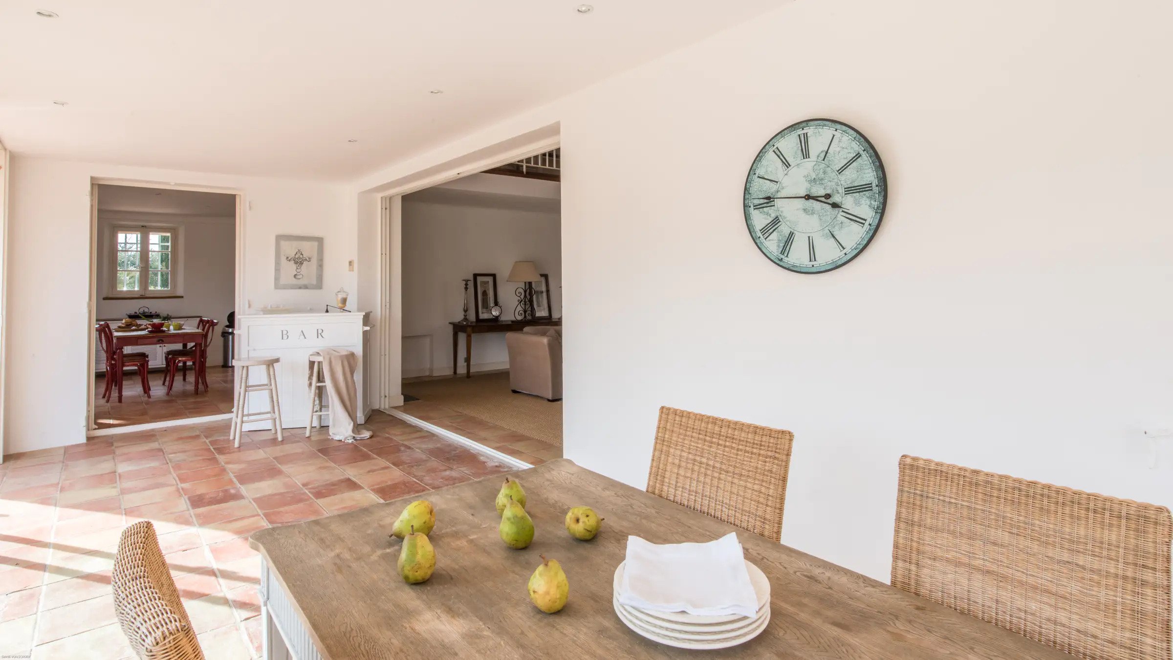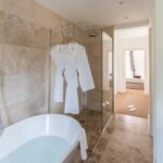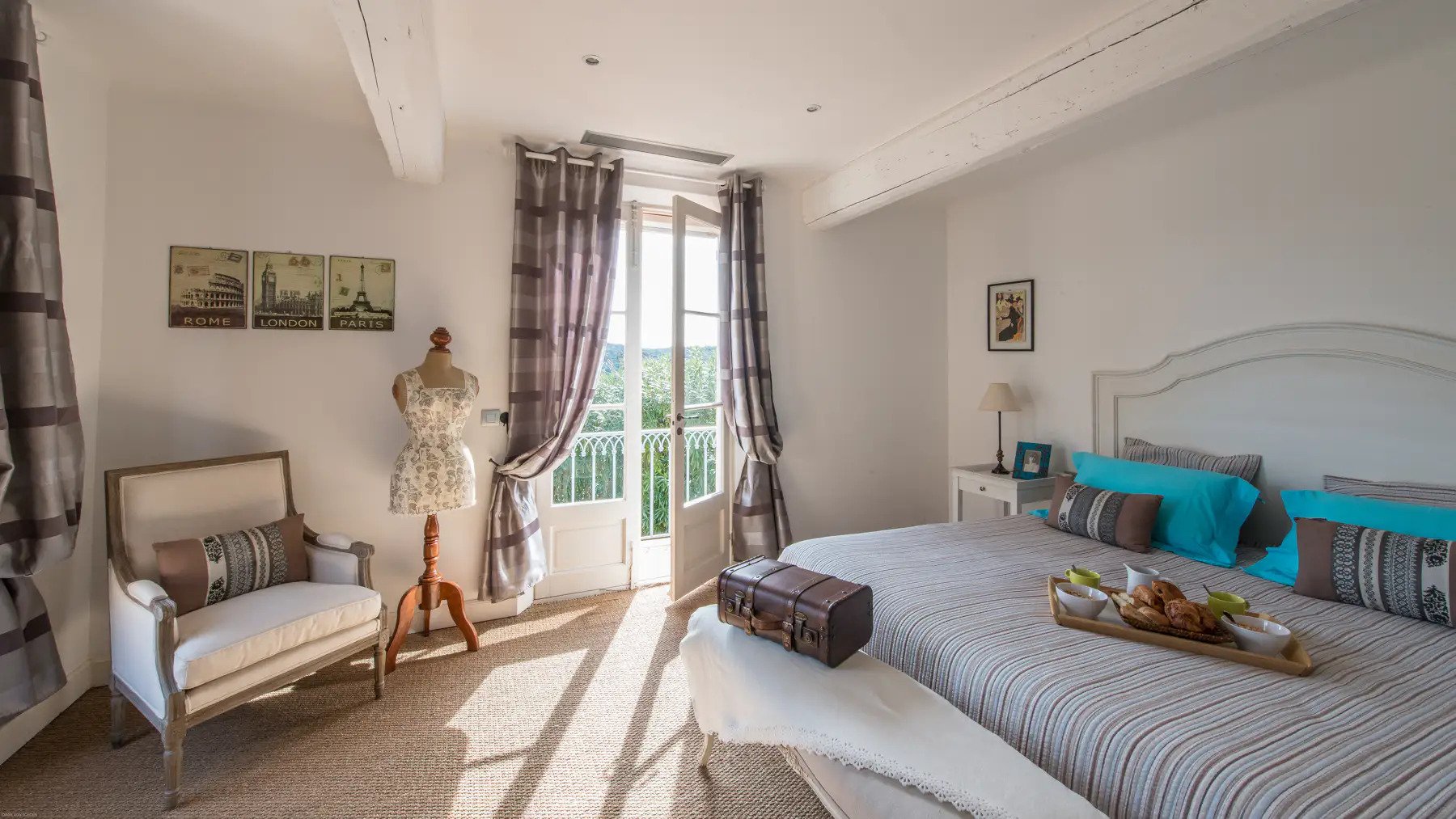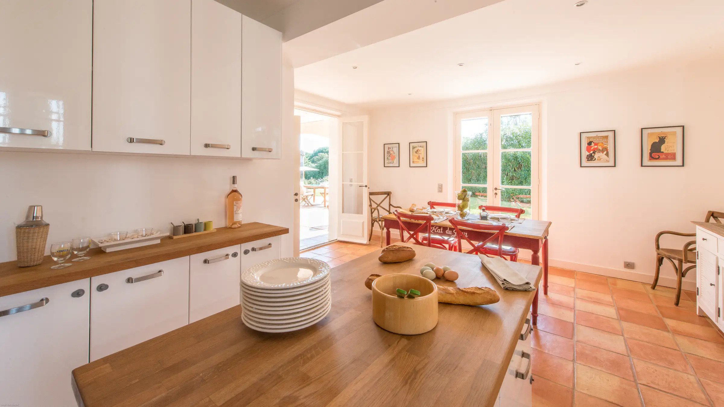 Villa Jordyn’s left-wing offers an autonomous apartment including a kitchen, seating room, and two bedrooms with a shared bathroom.  Also, there is a staff apartment with one bedroom and a shower room. The rooms are light, airy, and welcoming, with nods to the south of France’s traditional style.