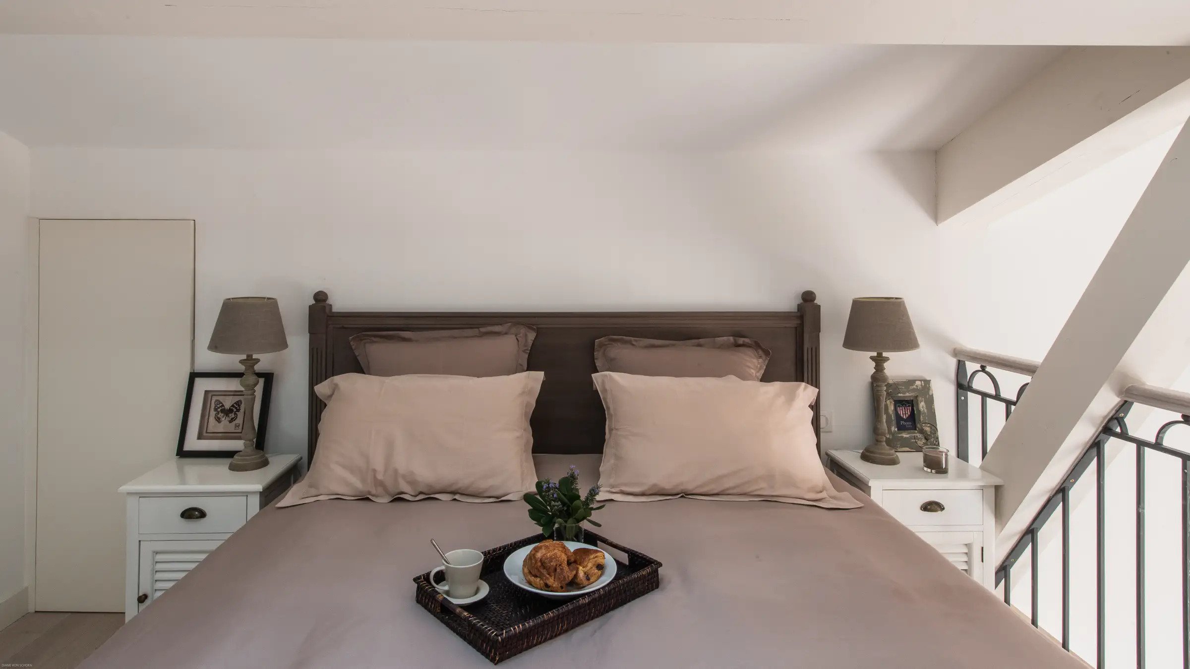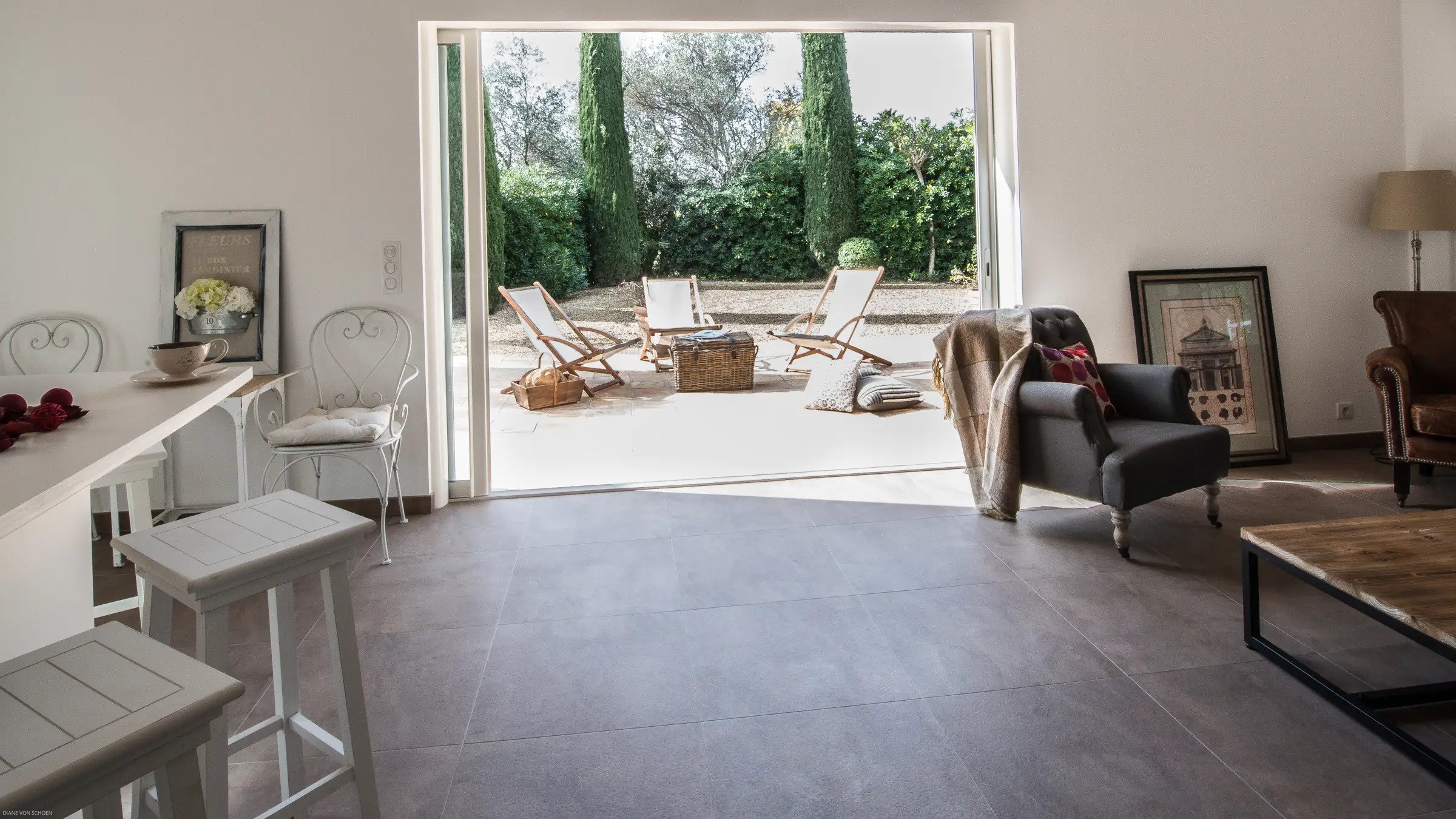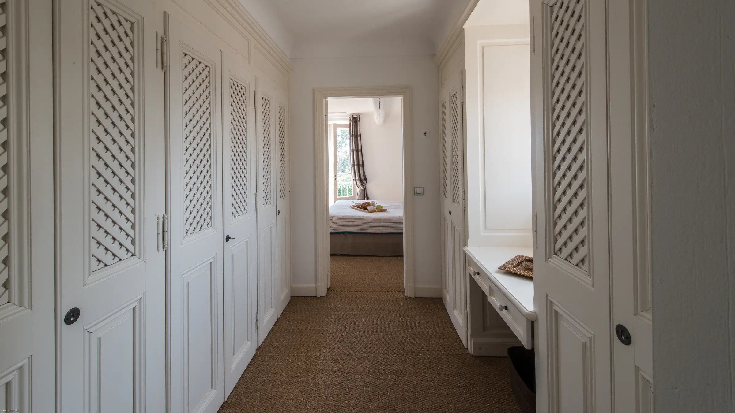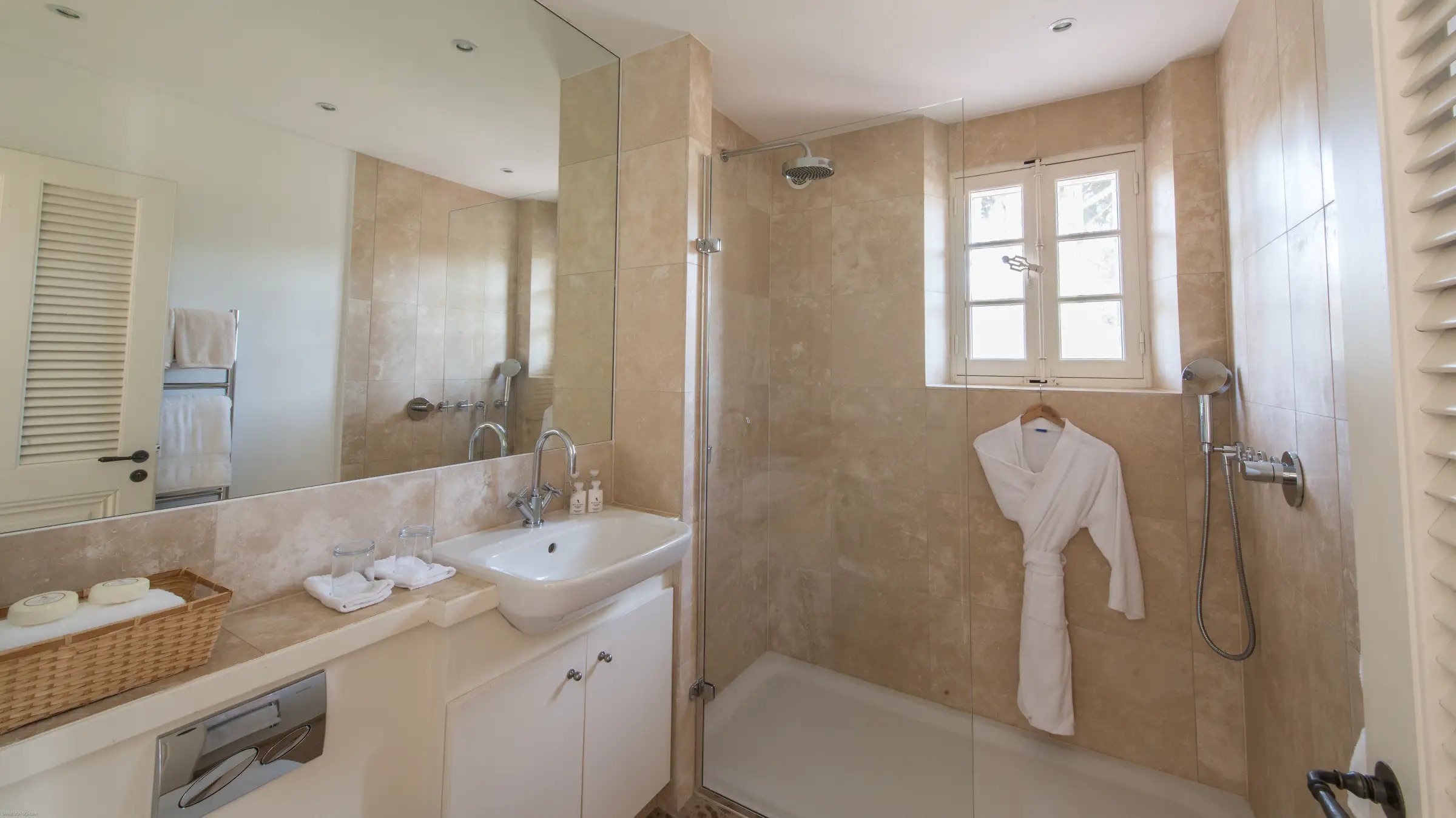 Villa Jordyn’s left-wing offers an autonomous apartment including a kitchen, seating room, and two bedrooms with a shared bathroom.  Also, there is a staff apartment with one bedroom and a shower room. The rooms are light, airy, and welcoming, with nods to the south of France’s traditional style.