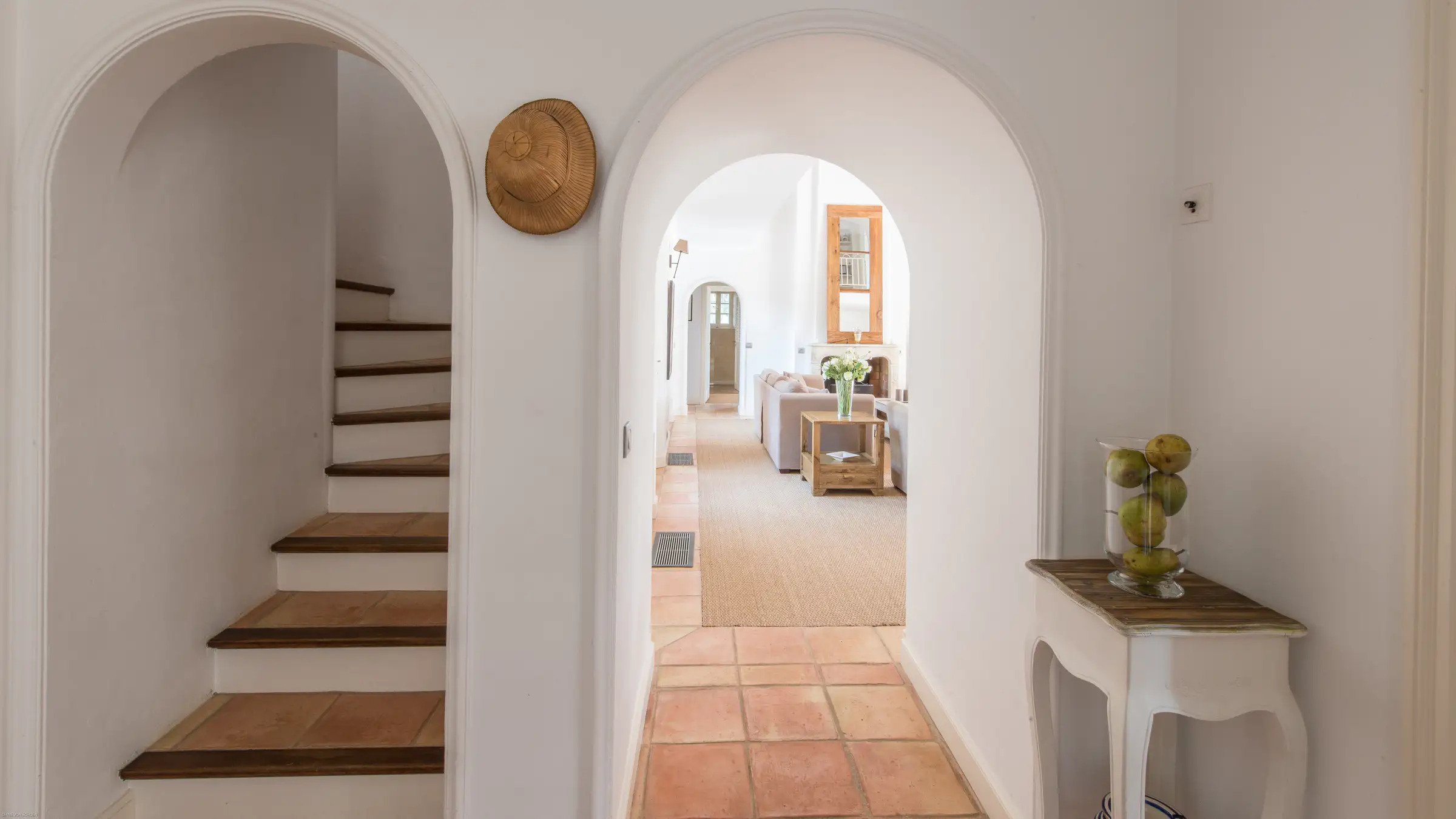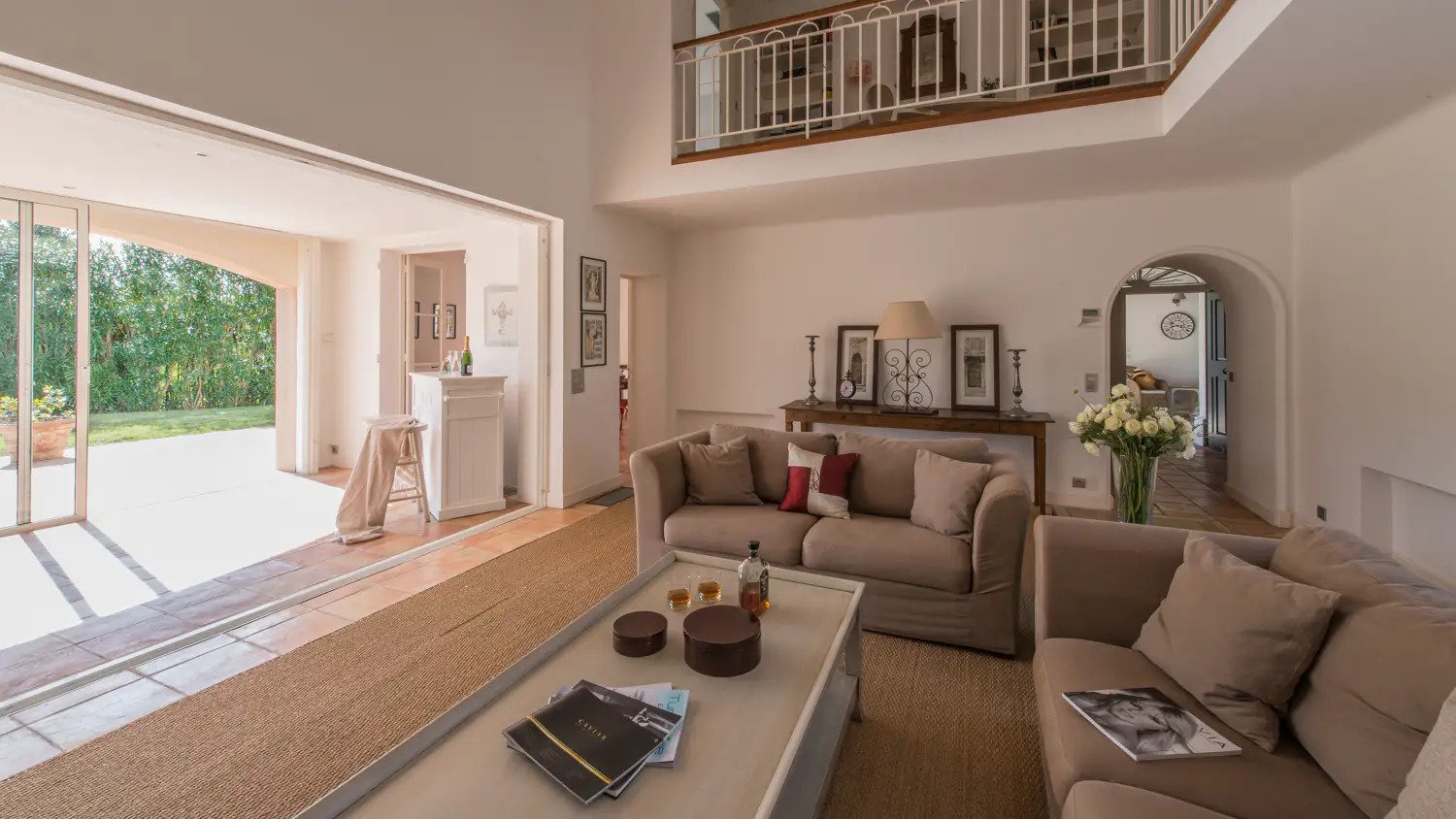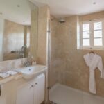 The property is divided into right and left quarters. The right-wing groups a spacious living with direct access to the terrace, a fully equipped kitchen, five large bedrooms, all ensuite, and two independent suites. The rooms are perfectly designed and furnished for your guests or traveling staff members.
