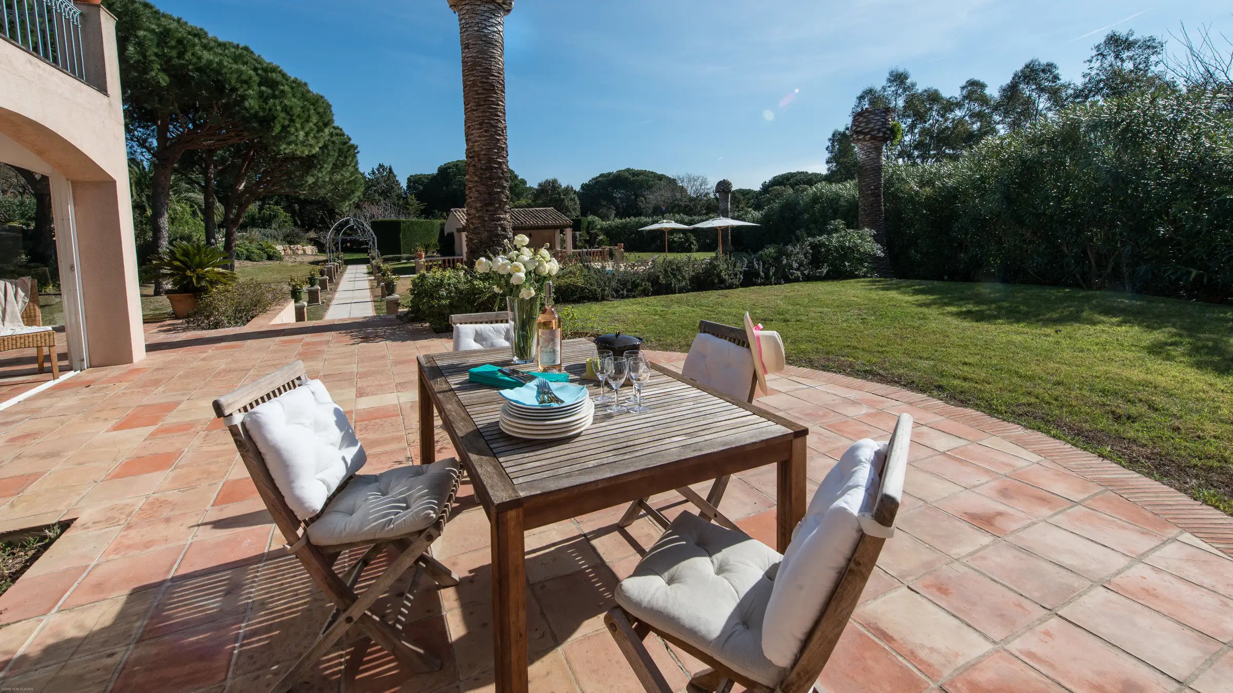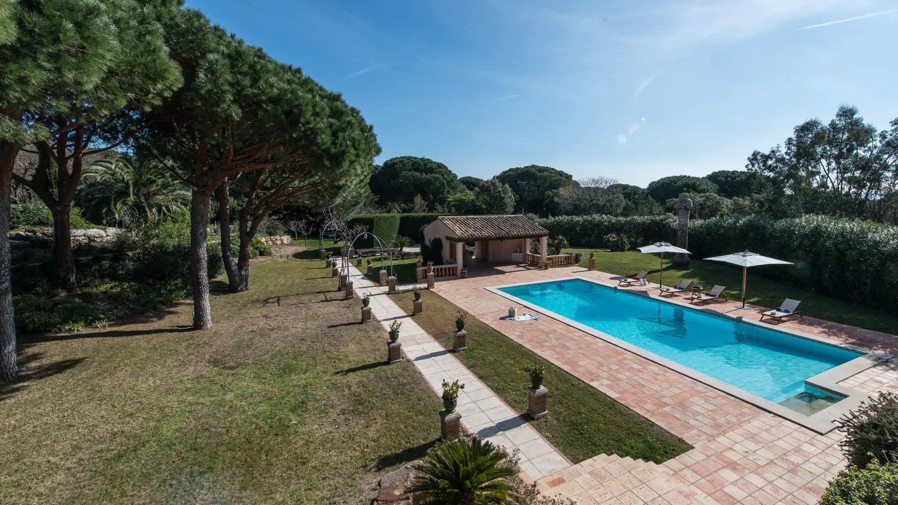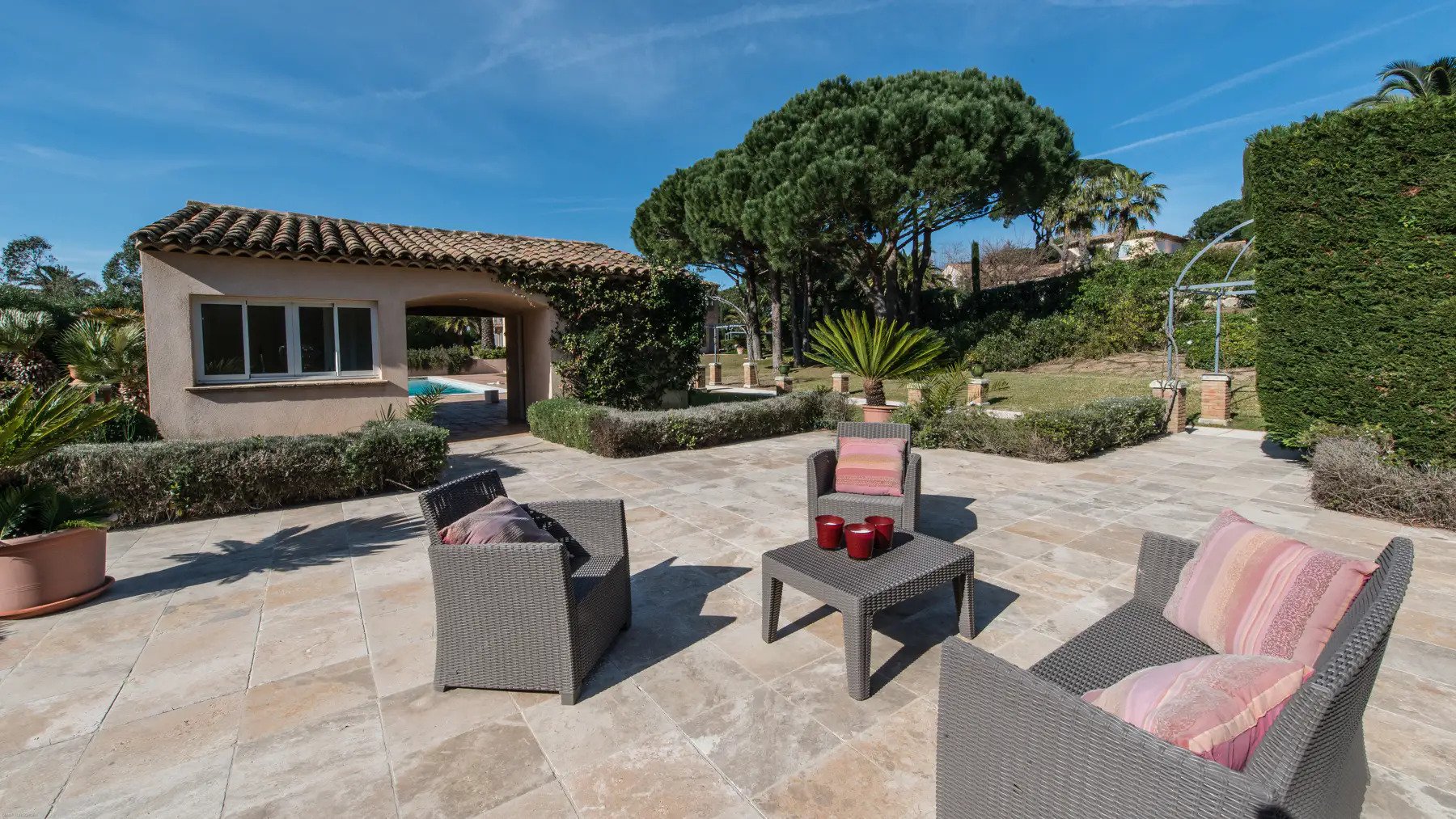 Of course, you’ll wish to spend plenty of time outside, and Villa Jordyn offers truly exquisite grounds. Lush with plants and trees, walking in the garden, or swimming in the dazzling swimming pool is truly the added value to St-Tropez restorative holiday experience.