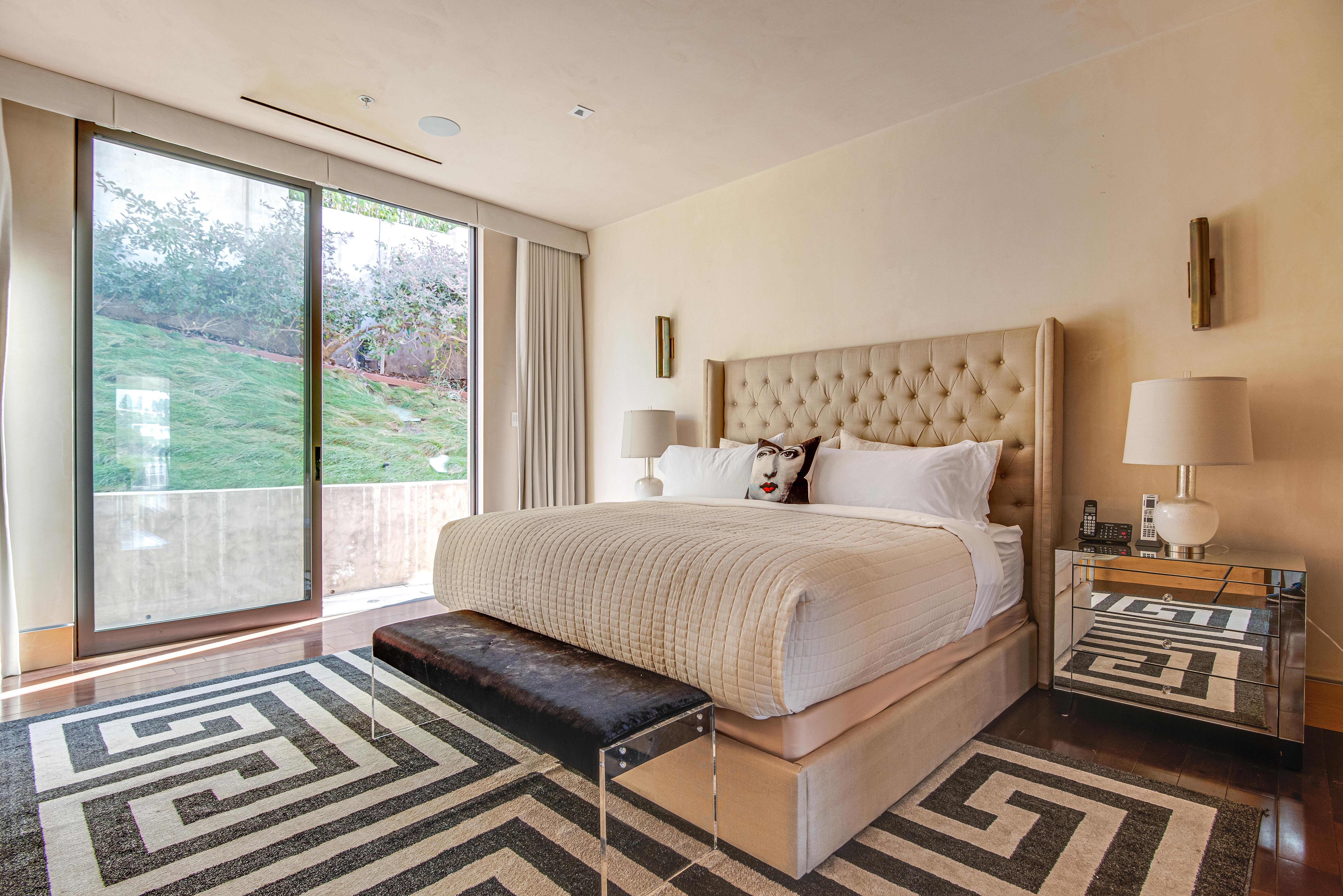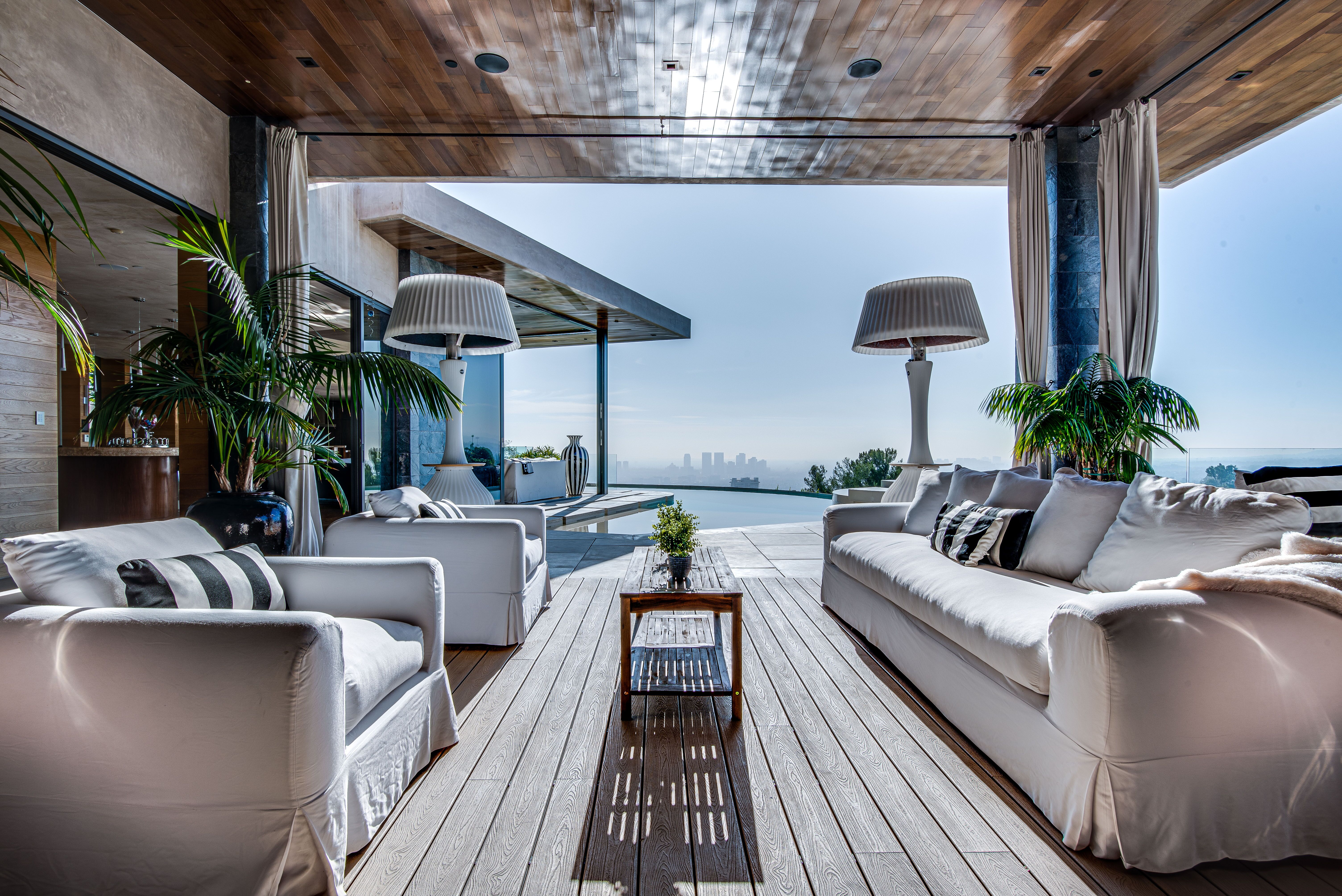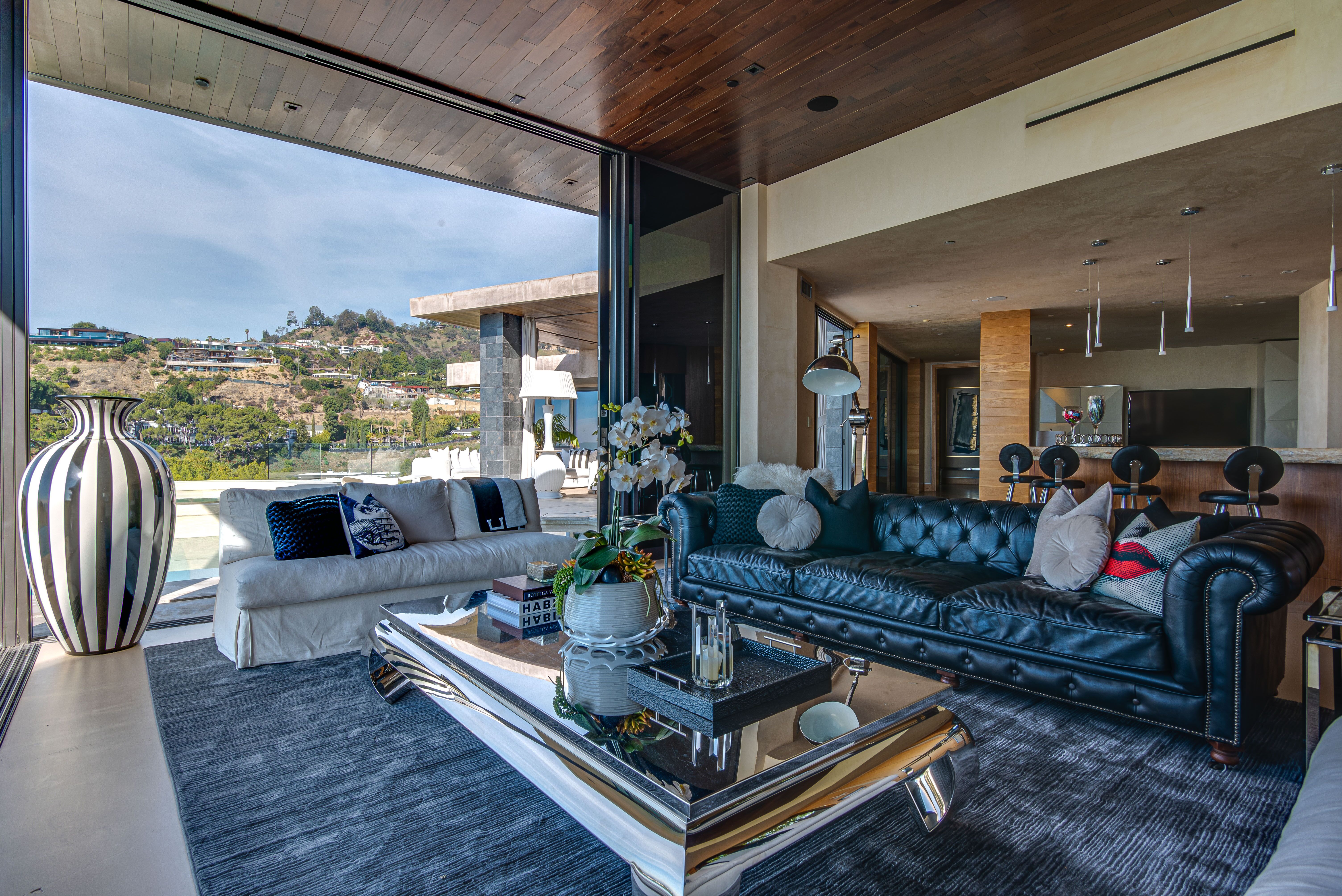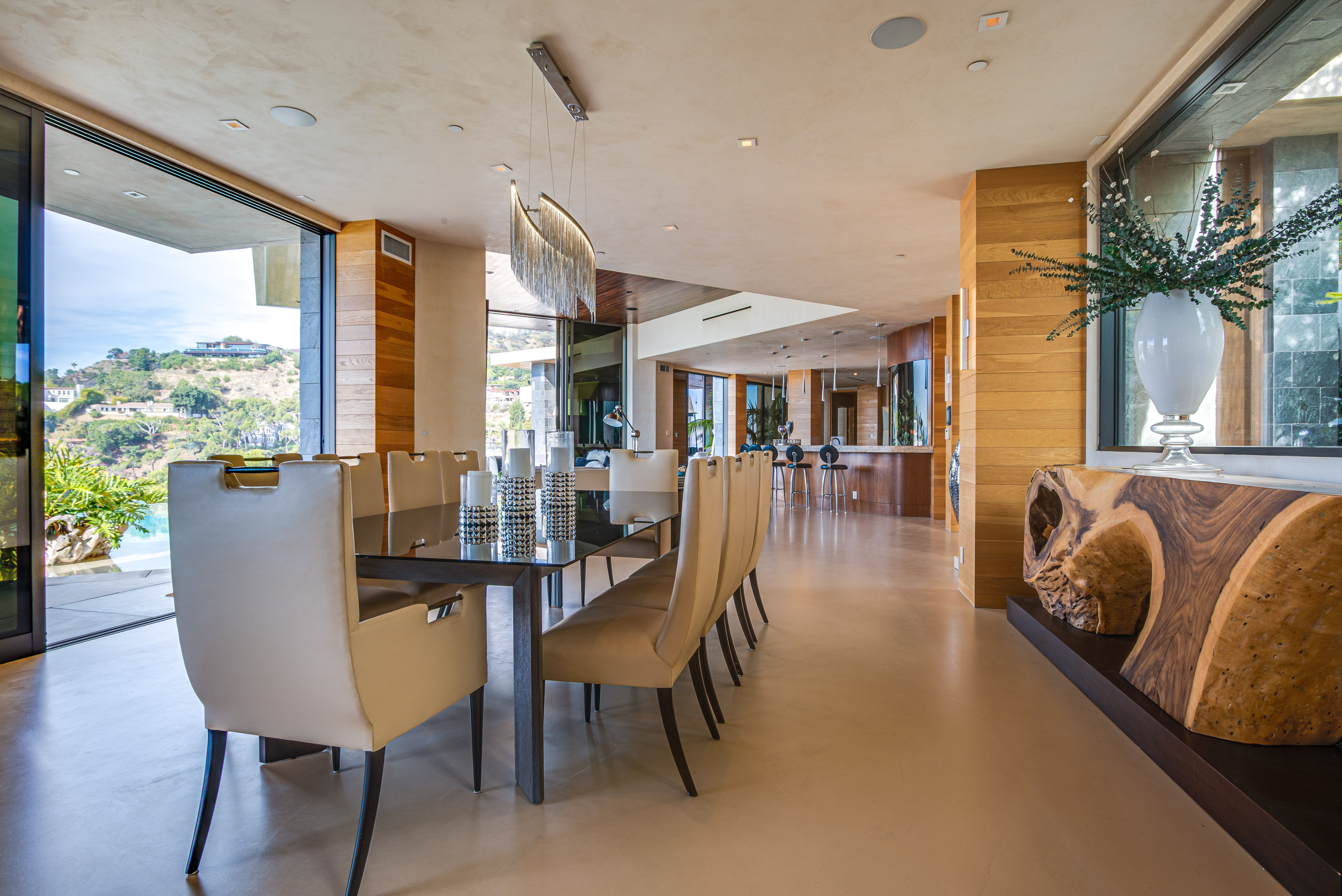 The property oozes modern contemporary style, with huge glass windows that make the most of LA’s legendary sunshine. They also allow you to enjoy stunning views over Los Angeles. These views are also on full display in the manicured grounds, which also feature a sparkling swimming pool, hot tub, and firepit. It really is an entertainer’s delight.