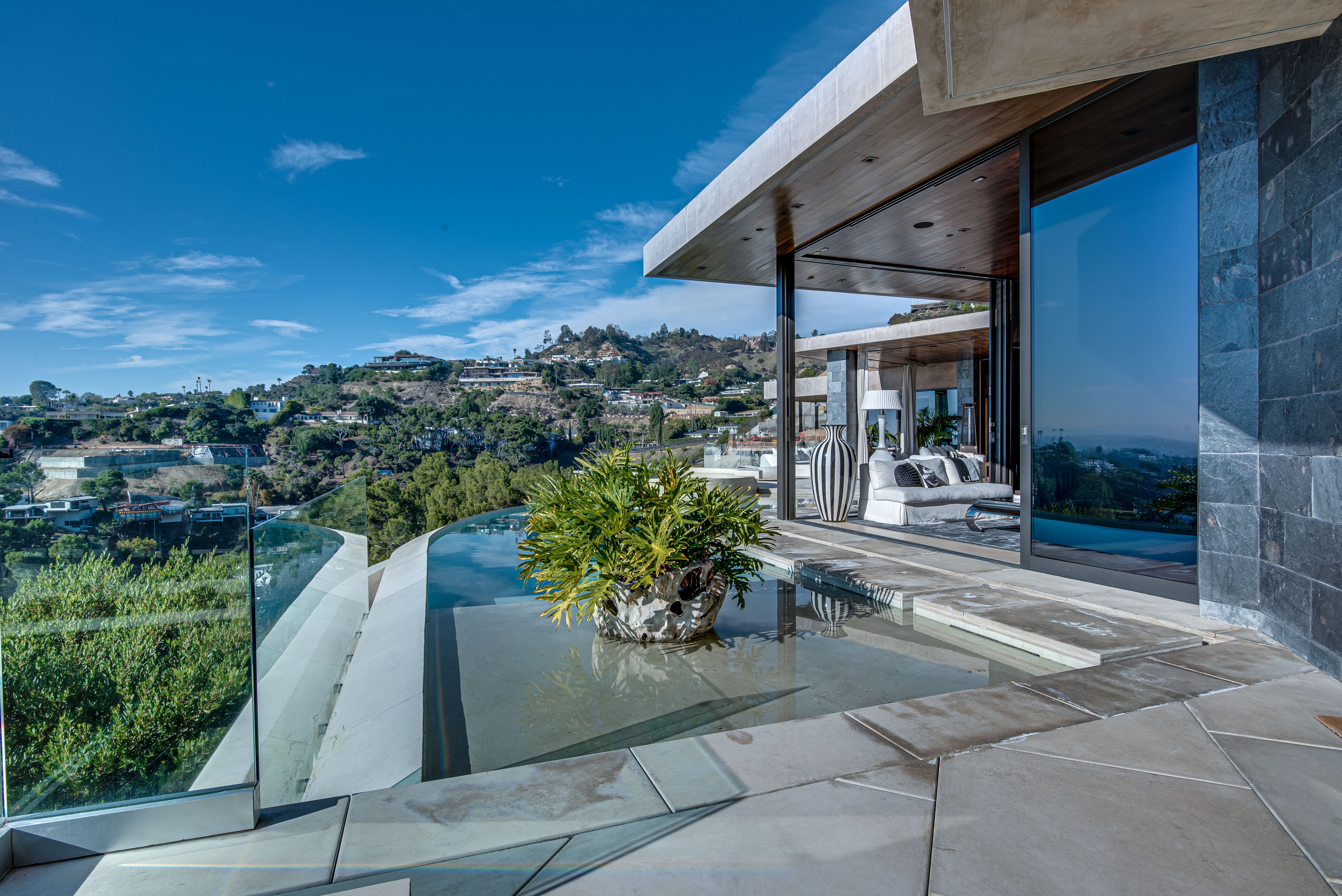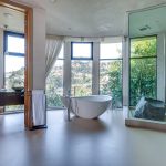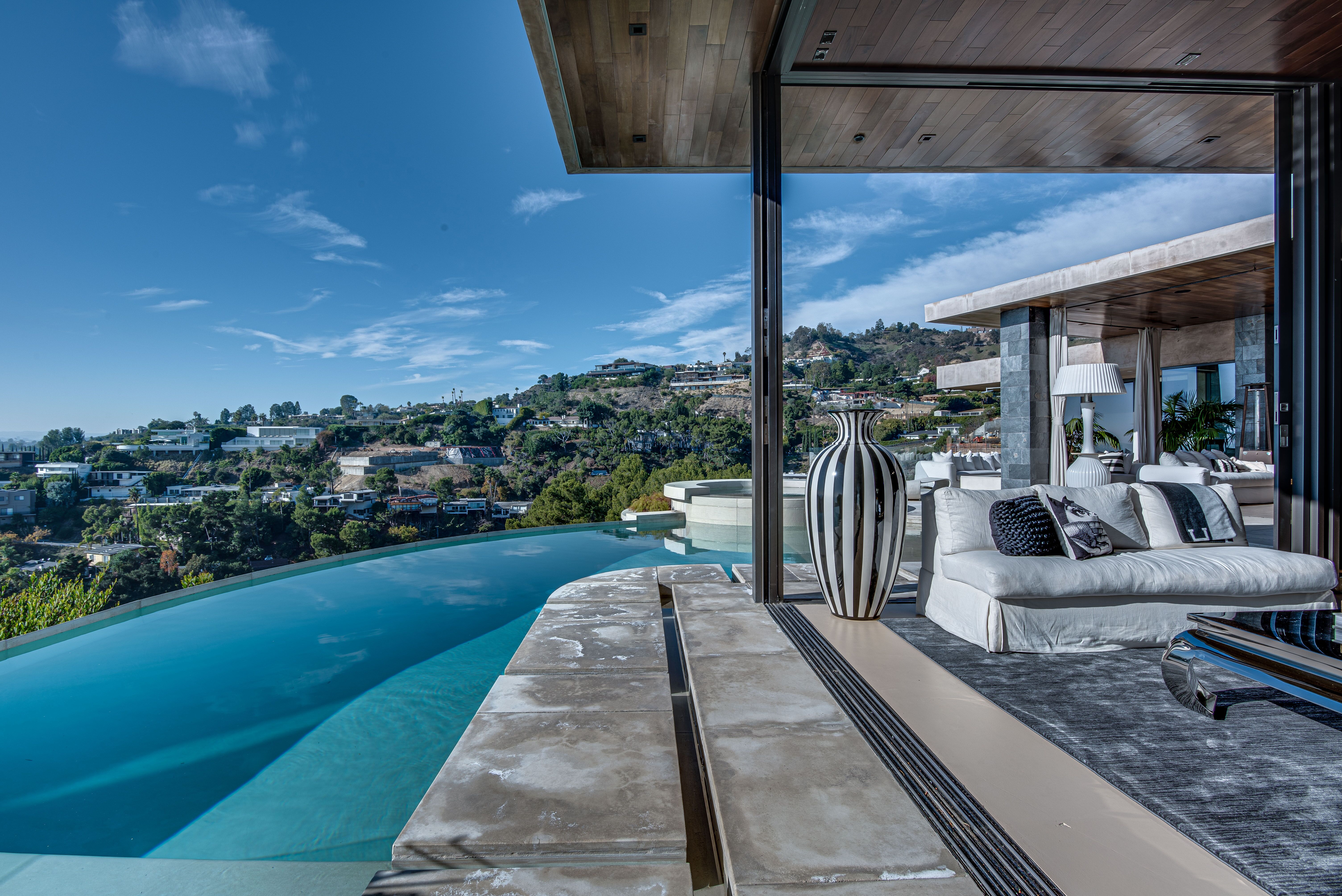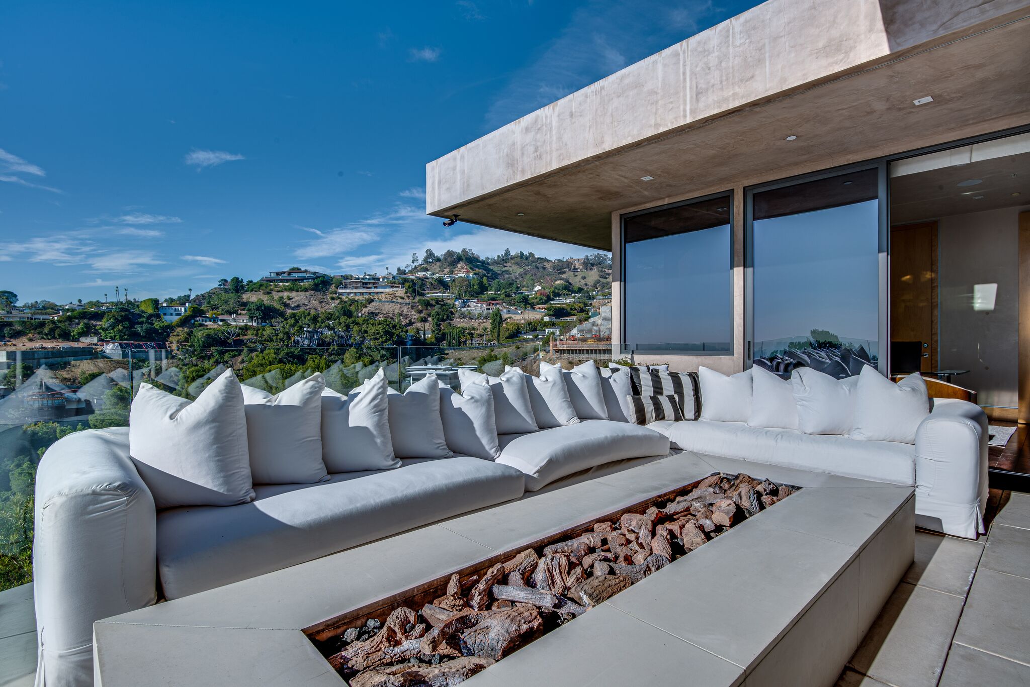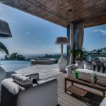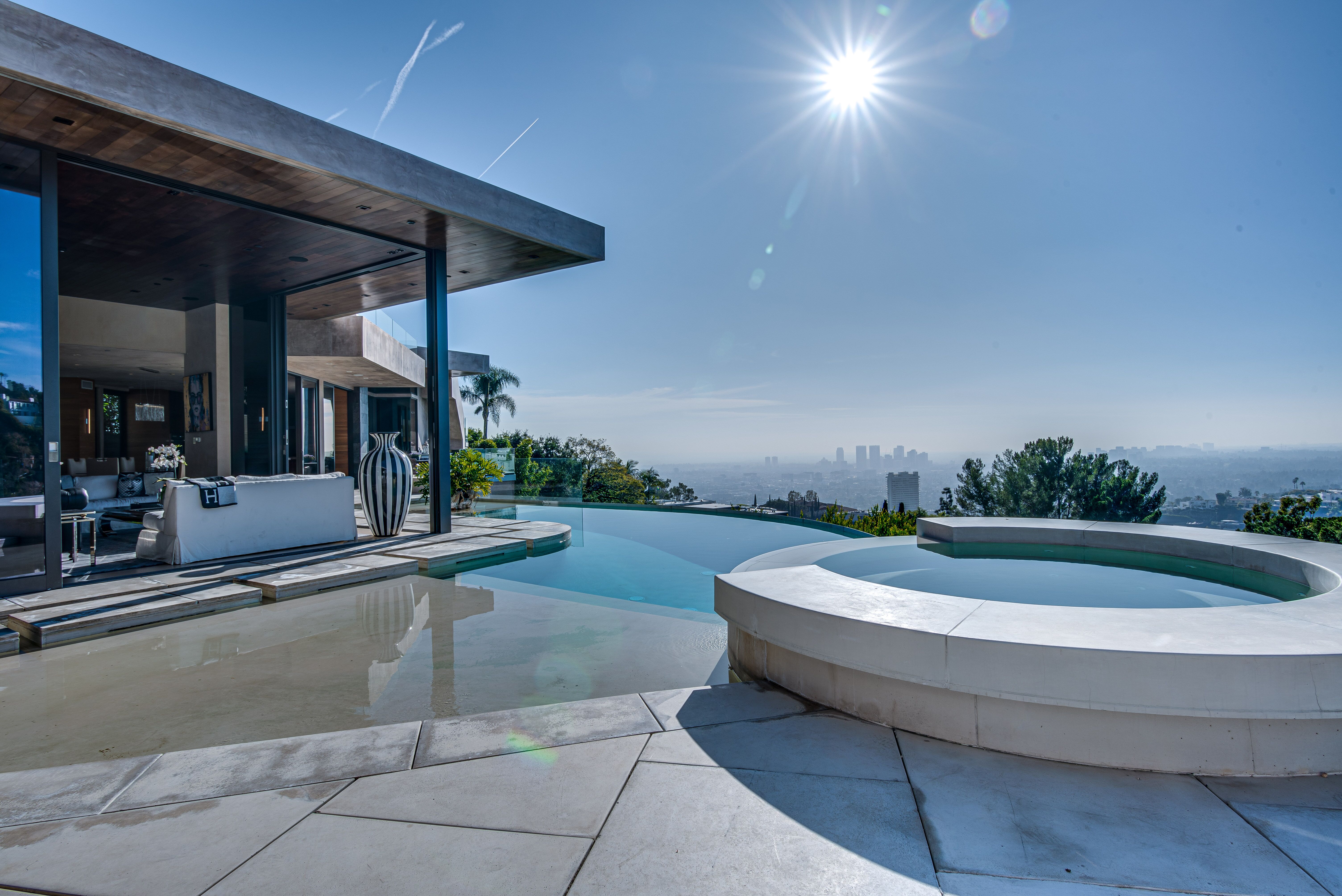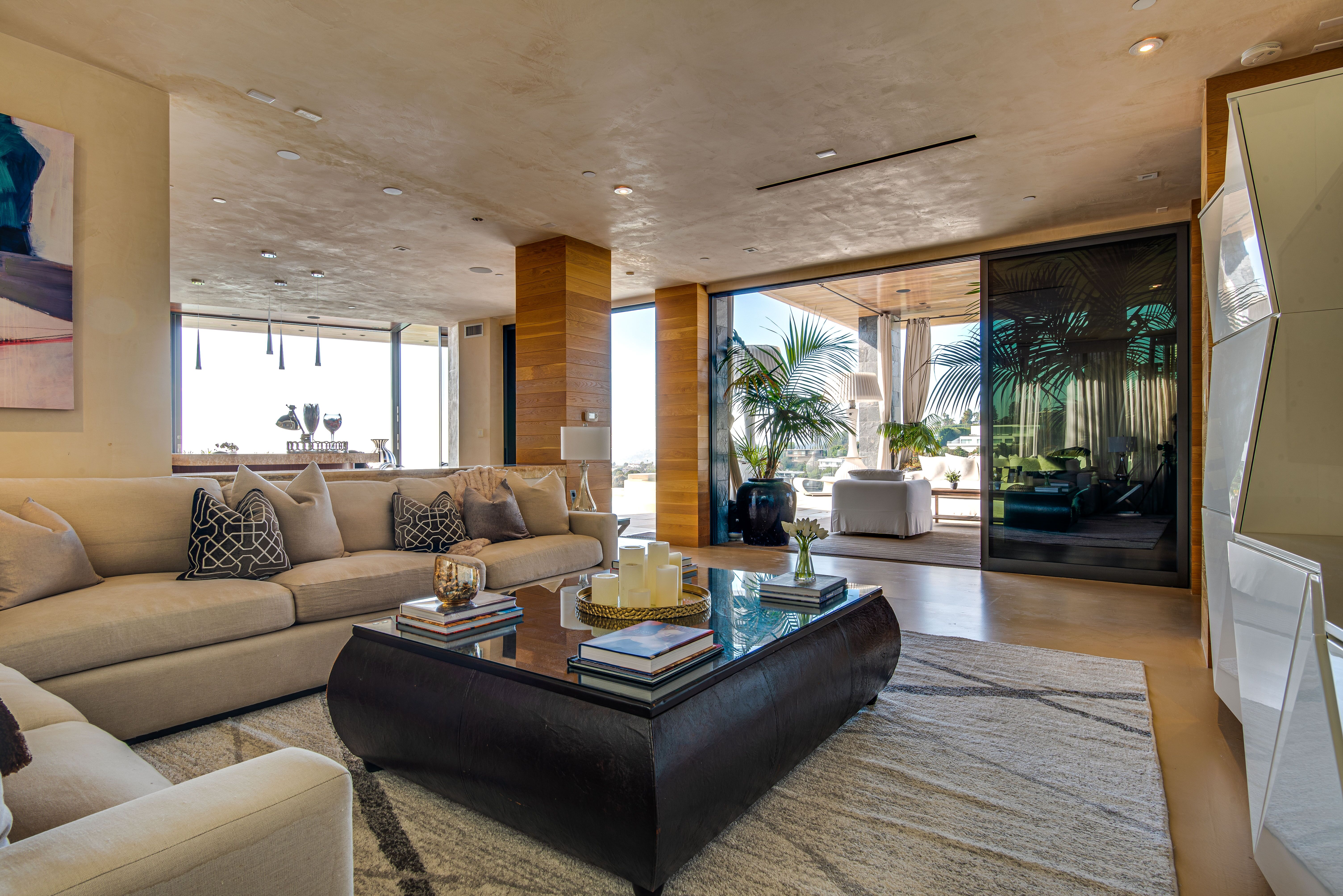 The property oozes modern contemporary style, with huge glass windows that make the most of LA’s legendary sunshine. They also allow you to enjoy stunning views over Los Angeles. These views are also on full display in the manicured grounds, which also feature a sparkling swimming pool, hot tub, and firepit. It really is an entertainer’s delight.
