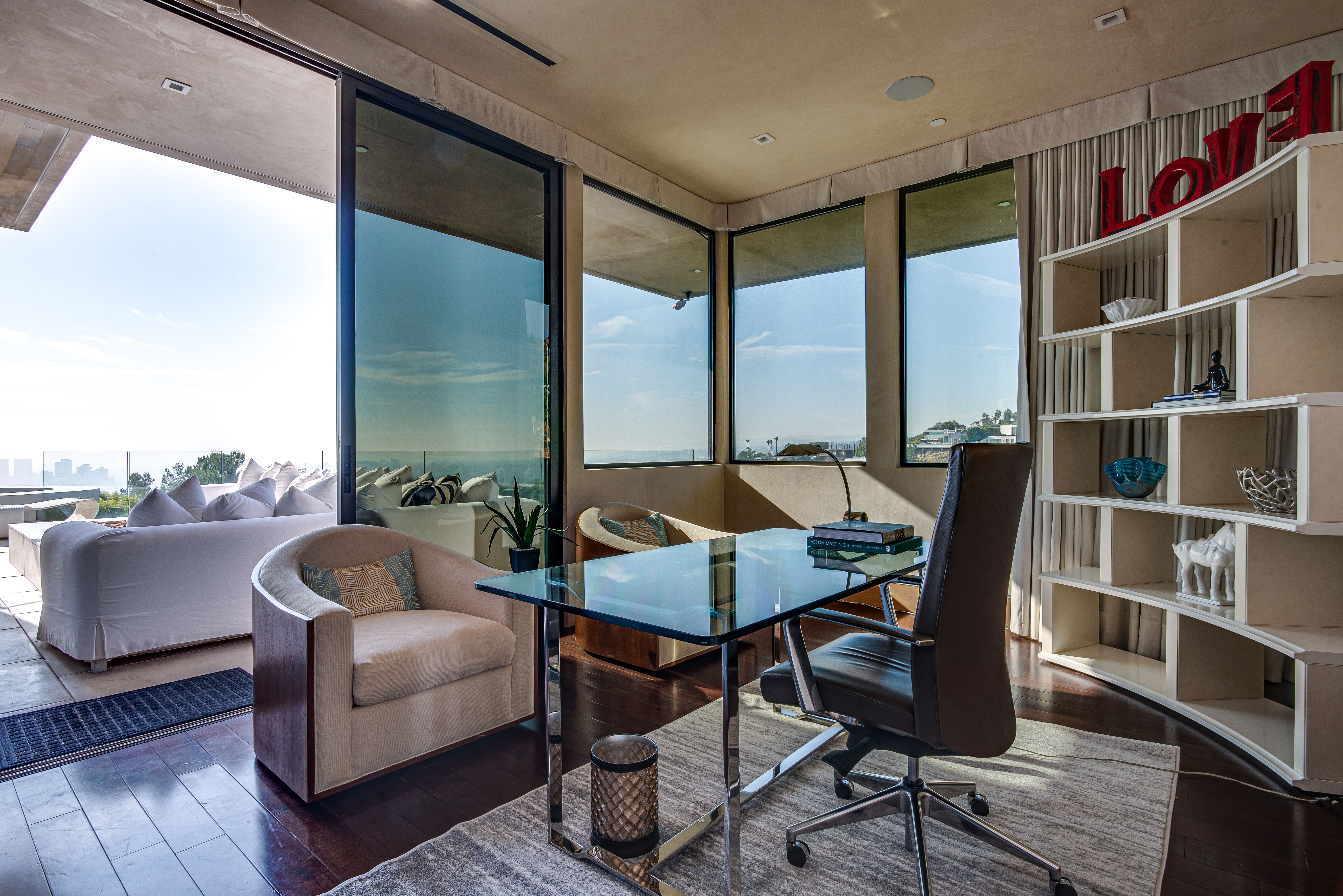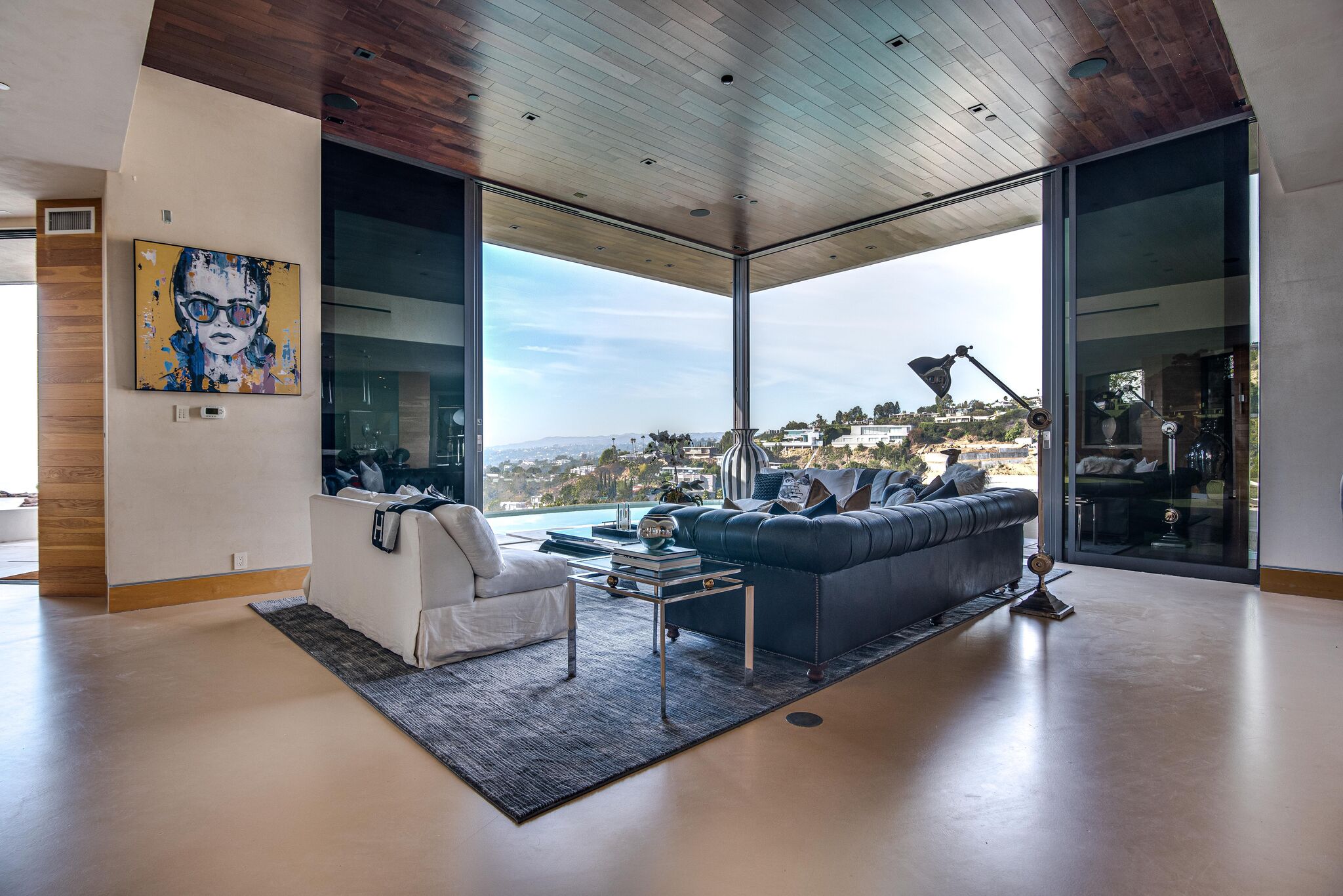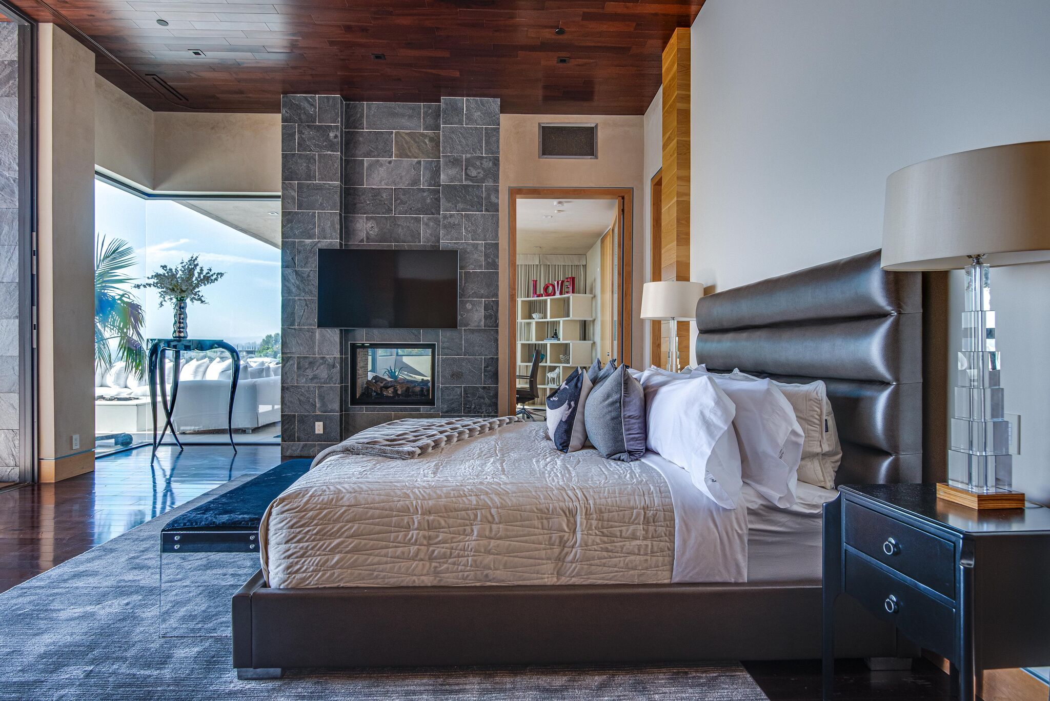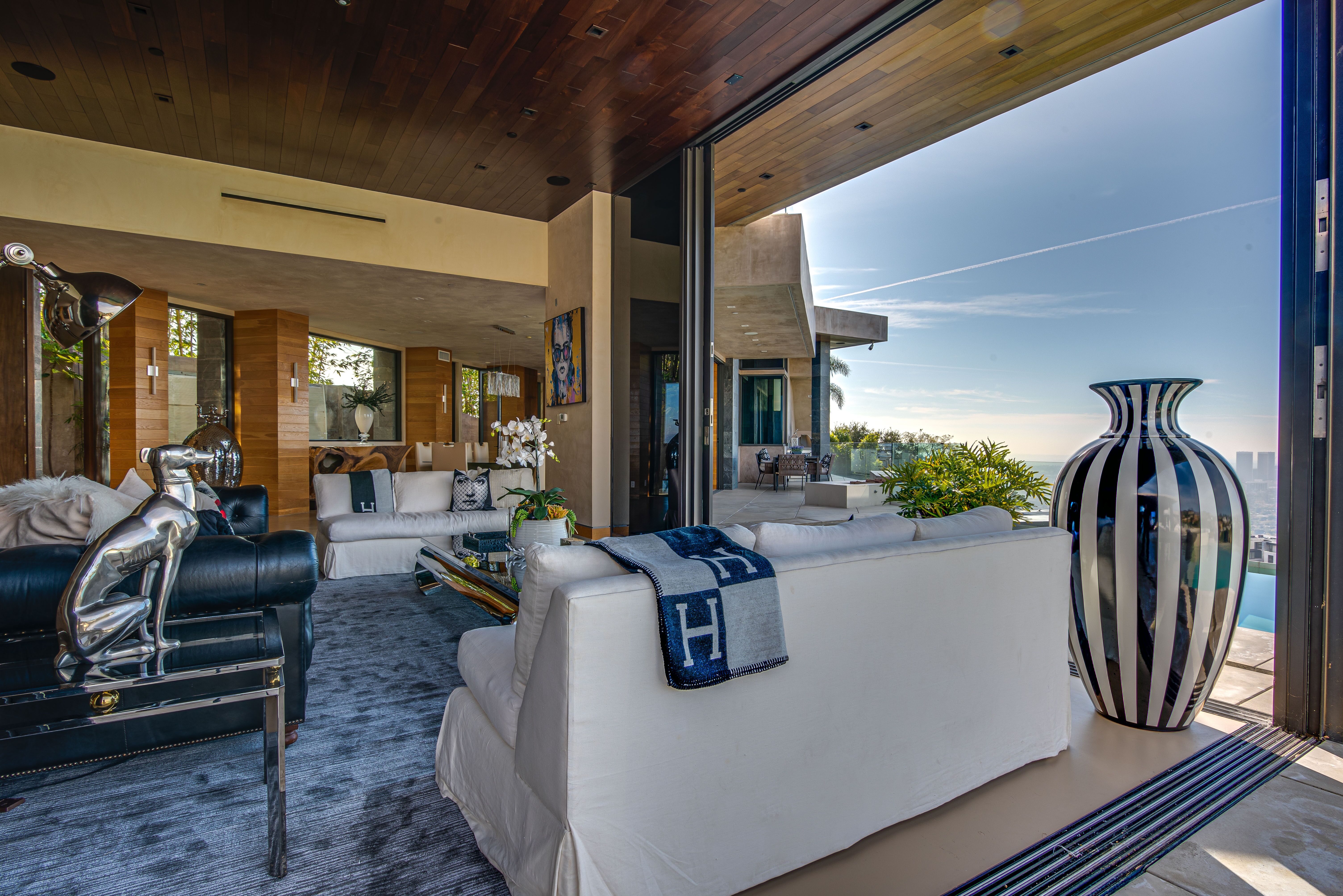 The property oozes modern contemporary style, with huge glass windows that make the most of LA’s legendary sunshine. They also allow you to enjoy stunning views over Los Angeles. These views are also on full display in the manicured grounds, which also feature a sparkling swimming pool, hot tub, and firepit. It really is an entertainer’s delight.