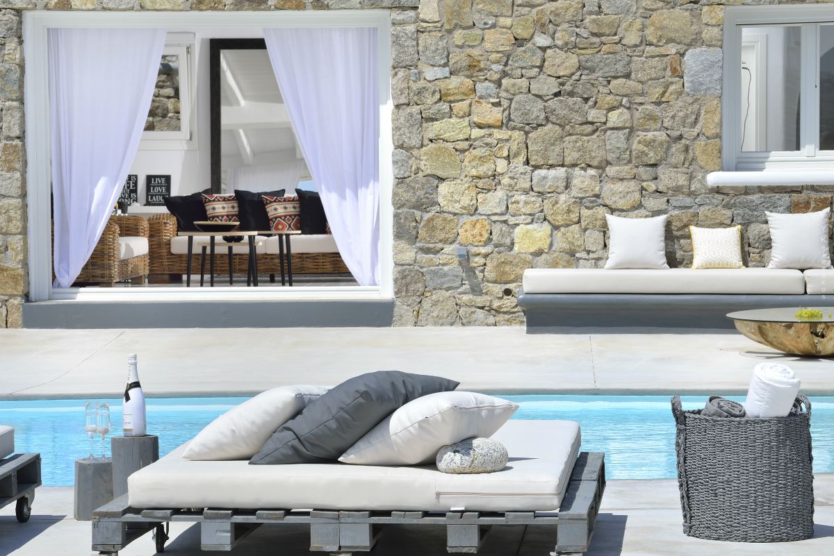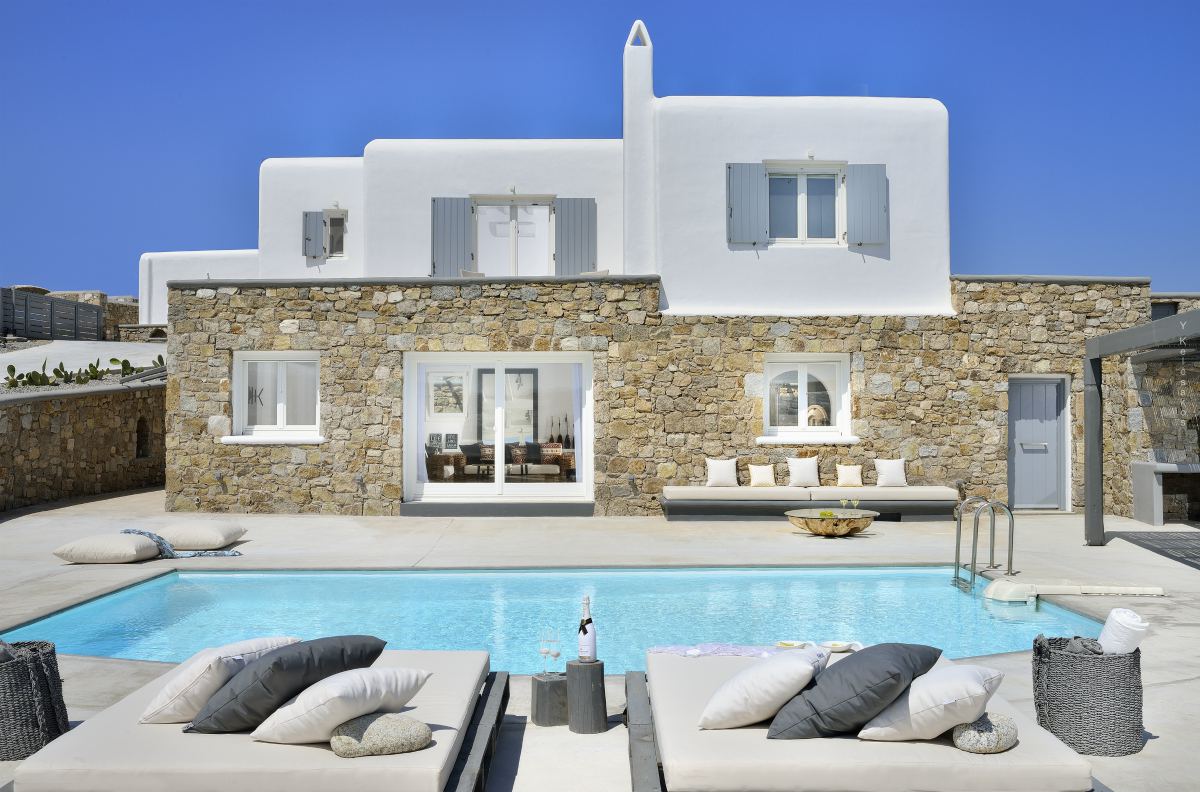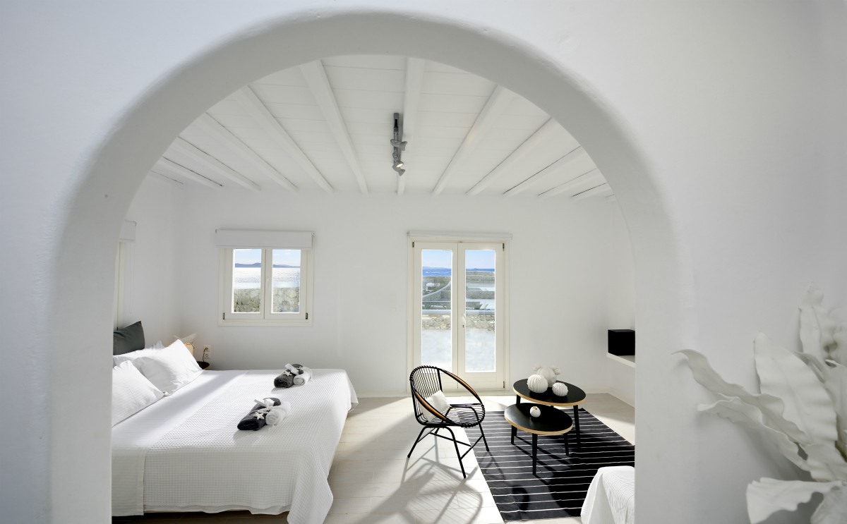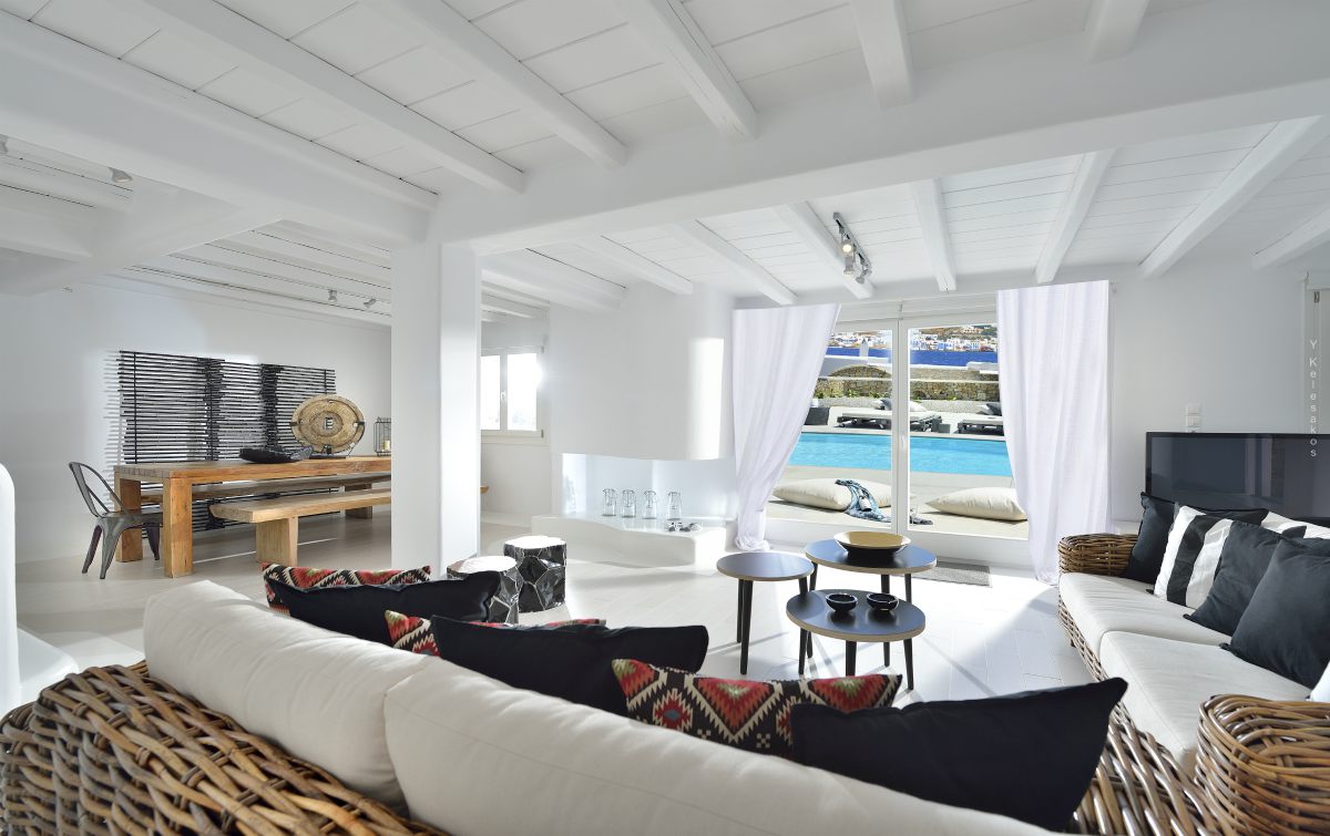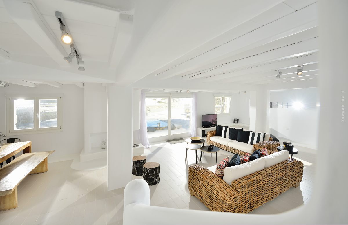 Villa Katerina is a strikingly beautiful Mykonos villa, which blends beautifully with its surroundings. Inspired by the traditional architecture and style of the island, Villa Katerina’s white stone exterior is attention-grabbing yet elegant.