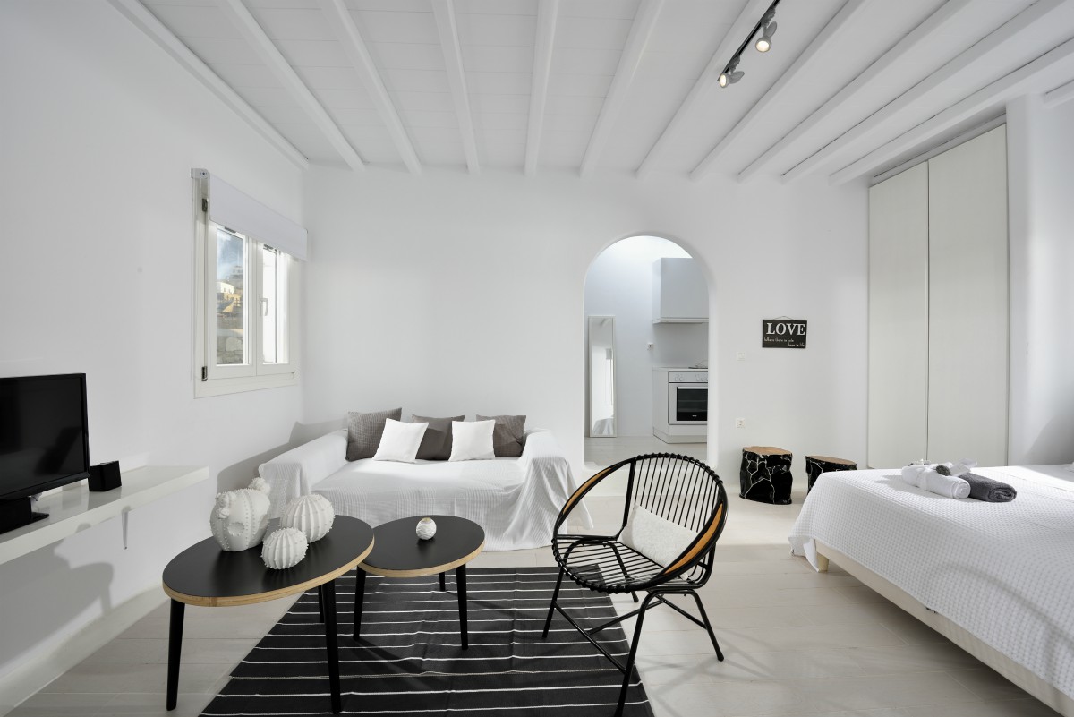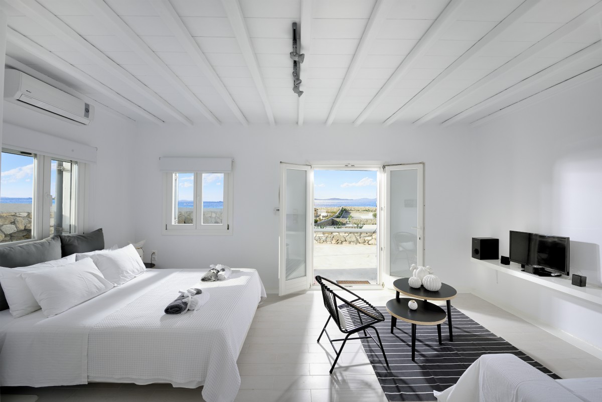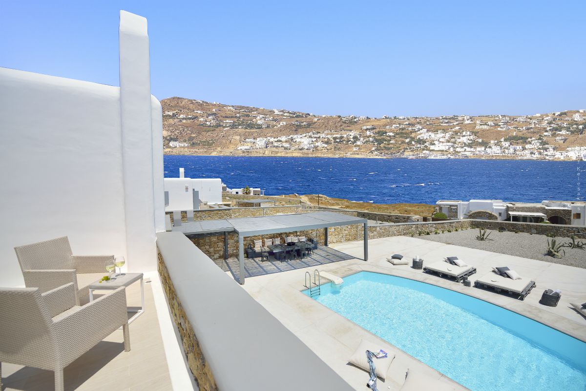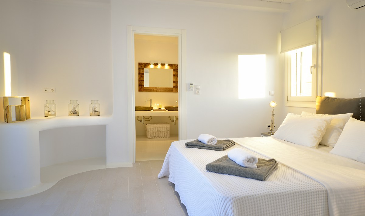 Villa Katerina is a strikingly beautiful Mykonos villa, which blends beautifully with its surroundings. Inspired by the traditional architecture and style of the island, Villa Katerina’s white stone exterior is attention-grabbing yet elegant.