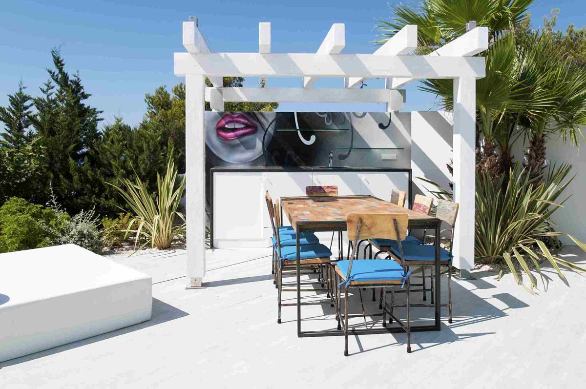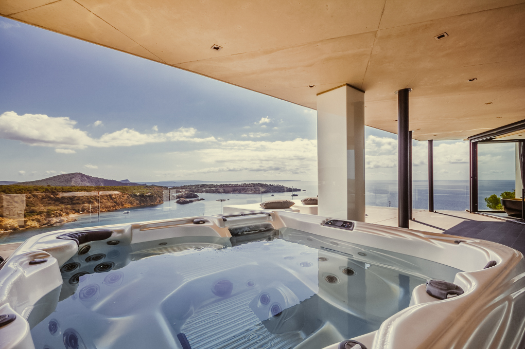 A glistening infinity pool is yet another highlight of the exterior grounds. It is also the perfect way to cool off from the Ibiza sun. A large deck flank the pool and an indulgent Jacuzzi is another special feature.