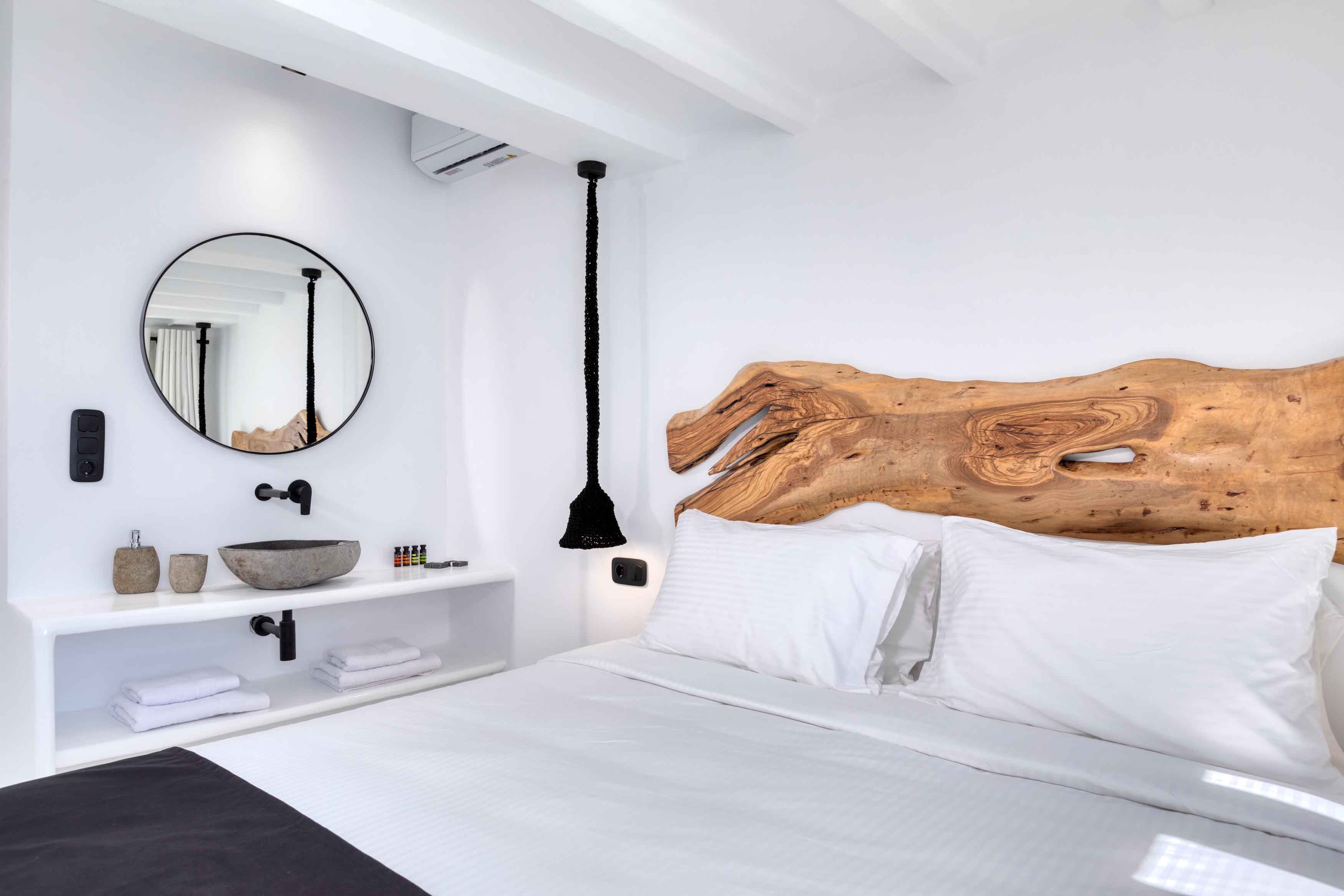 The striking white stone exterior is a nod to the traditional style of the island. Inside, admire the calm and neutral palette. Strikingly beautiful artwork and subtle, elegant features add to the charm of the villa.