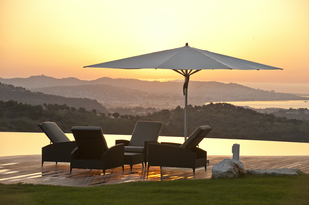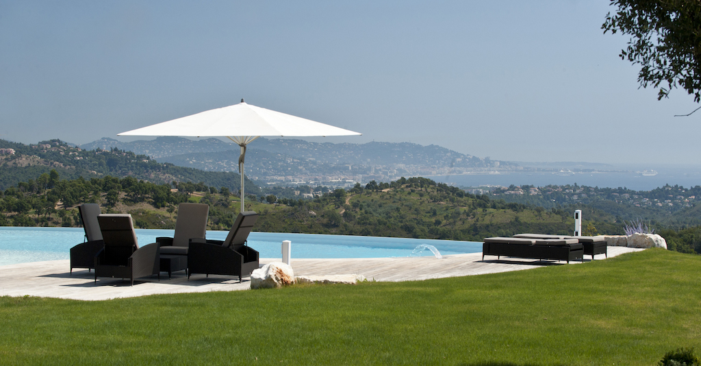Outside, you’ll find a dazzling swimming pool and, of course, those sumptuous views. Overlooking the rolling hills and the Bay of Cannes, it’s one of the most unique views in the Cote d’Azur and truly spectacular.