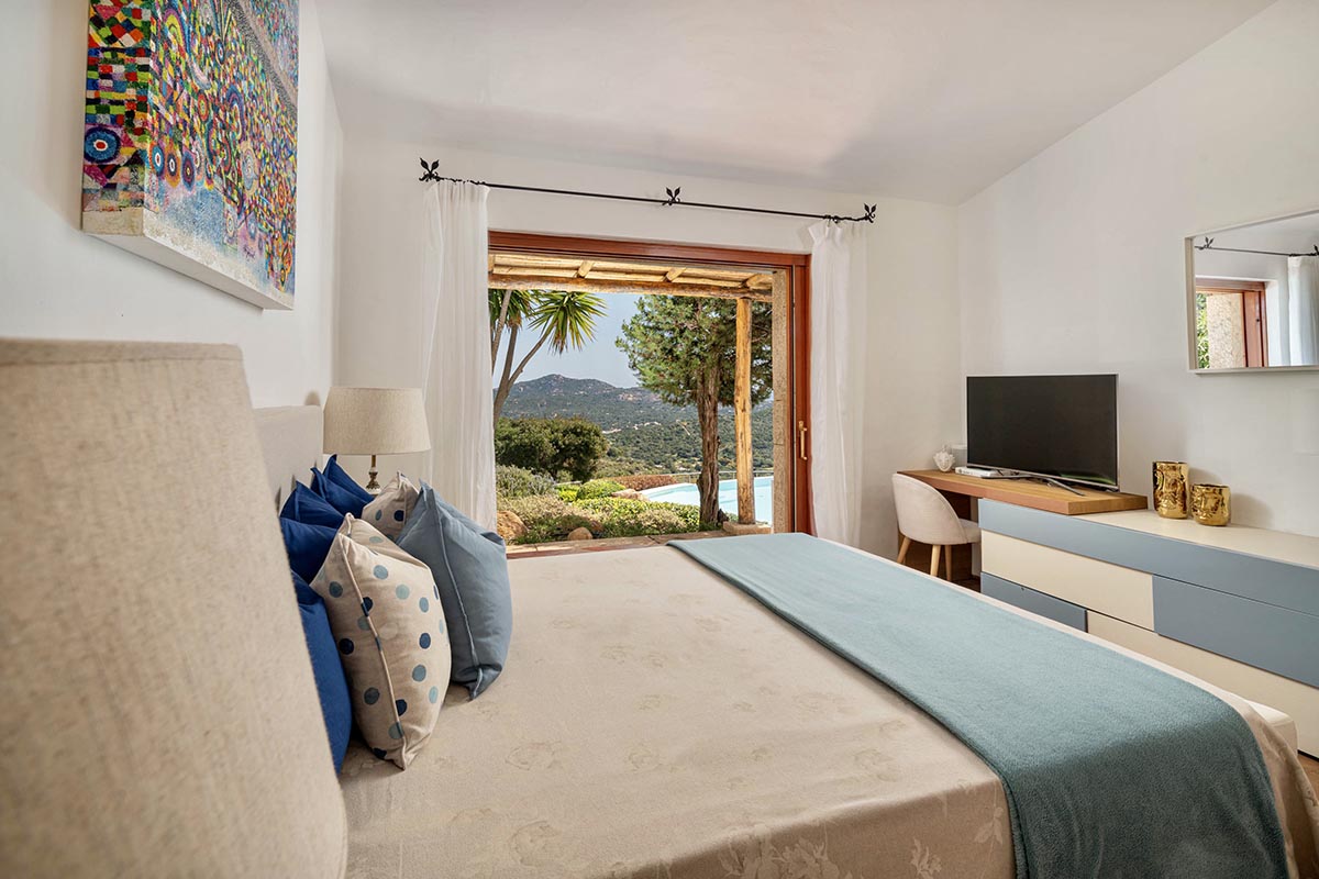 Villa Peri’s location is peaceful and serene. While perched in the hills of Pantogia, the conveniences and fabulous dining, nightlife, and shopping of the city are in Porto Cervo, just a short drive away.