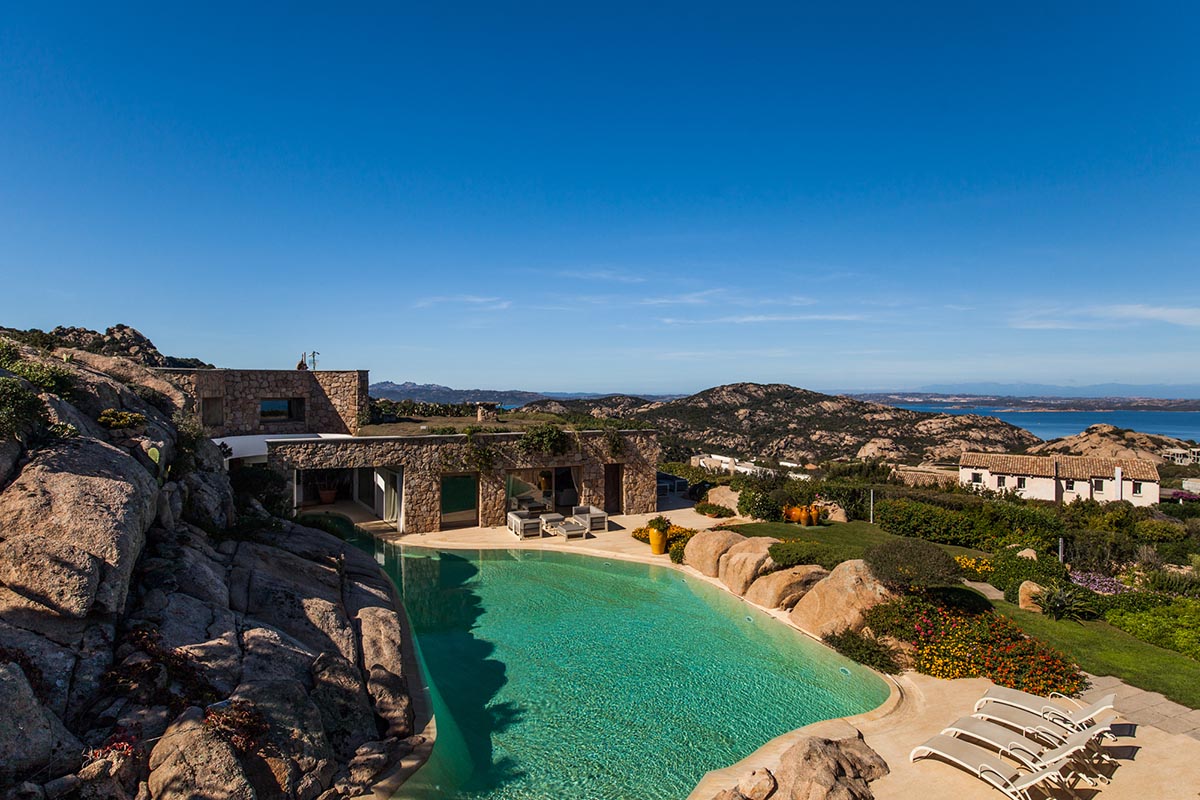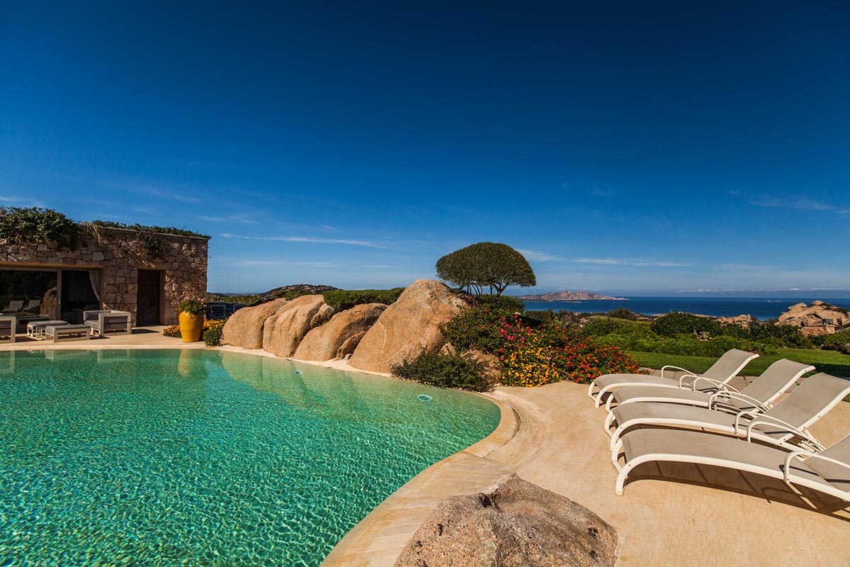 Enjoying an elevated location, Villa Rosa is undoubtedly one of the most desirable luxury villas in Sardinia. Architecturally designed, Villa Rosa blends beautifully with its natural environment. In addition, the house offers jaw-dropping sea views and seems to hover over the azure ocean. The garden and home both take advantage of this stunning locale.