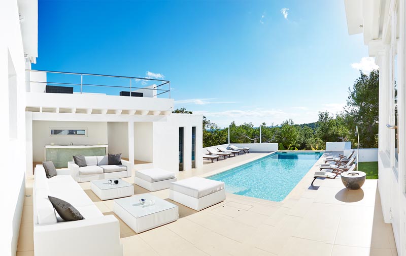 The villa is located just five minutes away from Ibiza Town, while the beaches are also close.