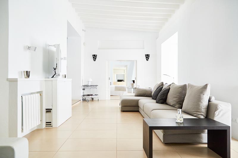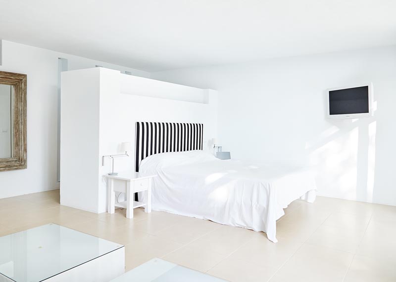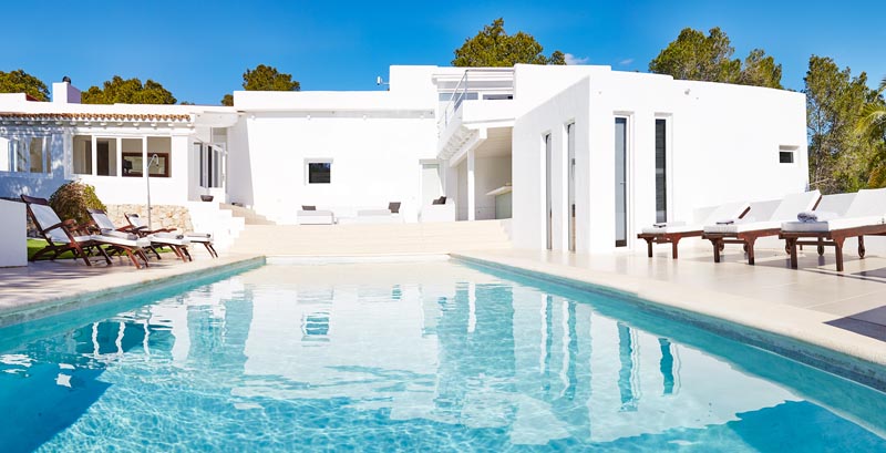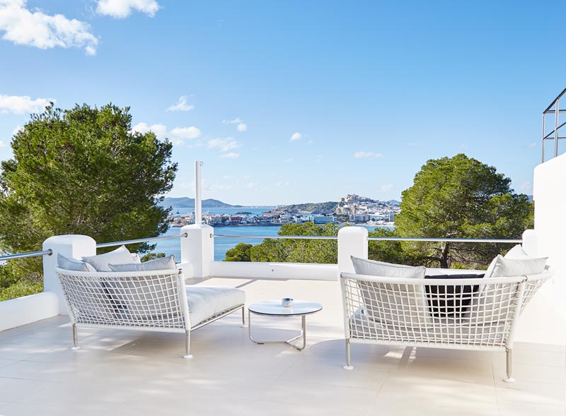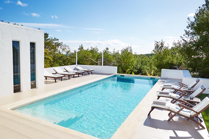 This villa is perfect for indoor/outdoor living, with a string of terraces that offer alfresco dining in full view of the sea. There’s also a dazzling swimming pool, the perfect place to spend a lazy day or cool off from the Ibiza sun.