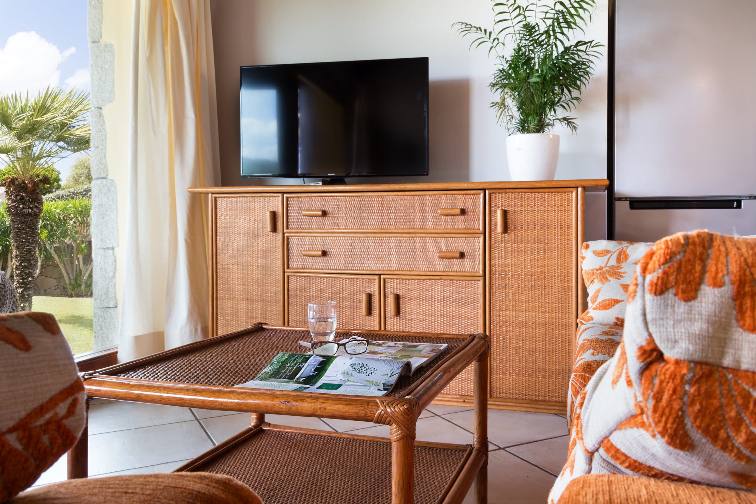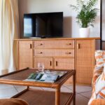 The open-plan living area leads to panoramic verandas, overlooking the sandy beach In total, Villa Sandy sleeps six guests in three bedrooms, two bedrooms in total comfort.